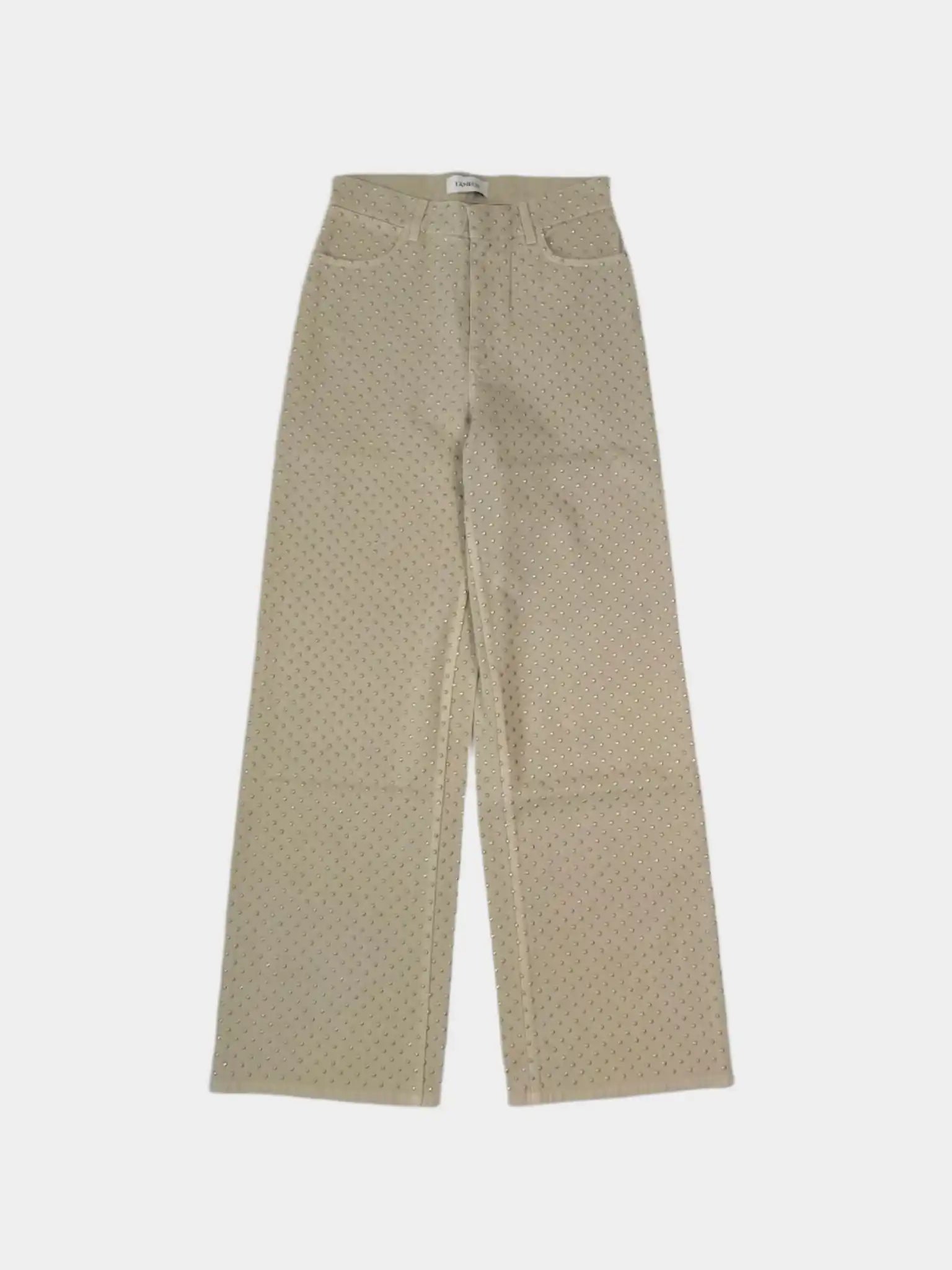 Crafted from cream jeans with a straight and contemporary fit, these trousers by Laneus stand out for the application of silver micro studs along the entire surface. The minimal design and the luminous effect of the studs make them the perfect garment to add a bold and sophisticated touch to your wardrobe. Equipped with belt loops and functional pockets, they can be easily combined with both day and evening looks.