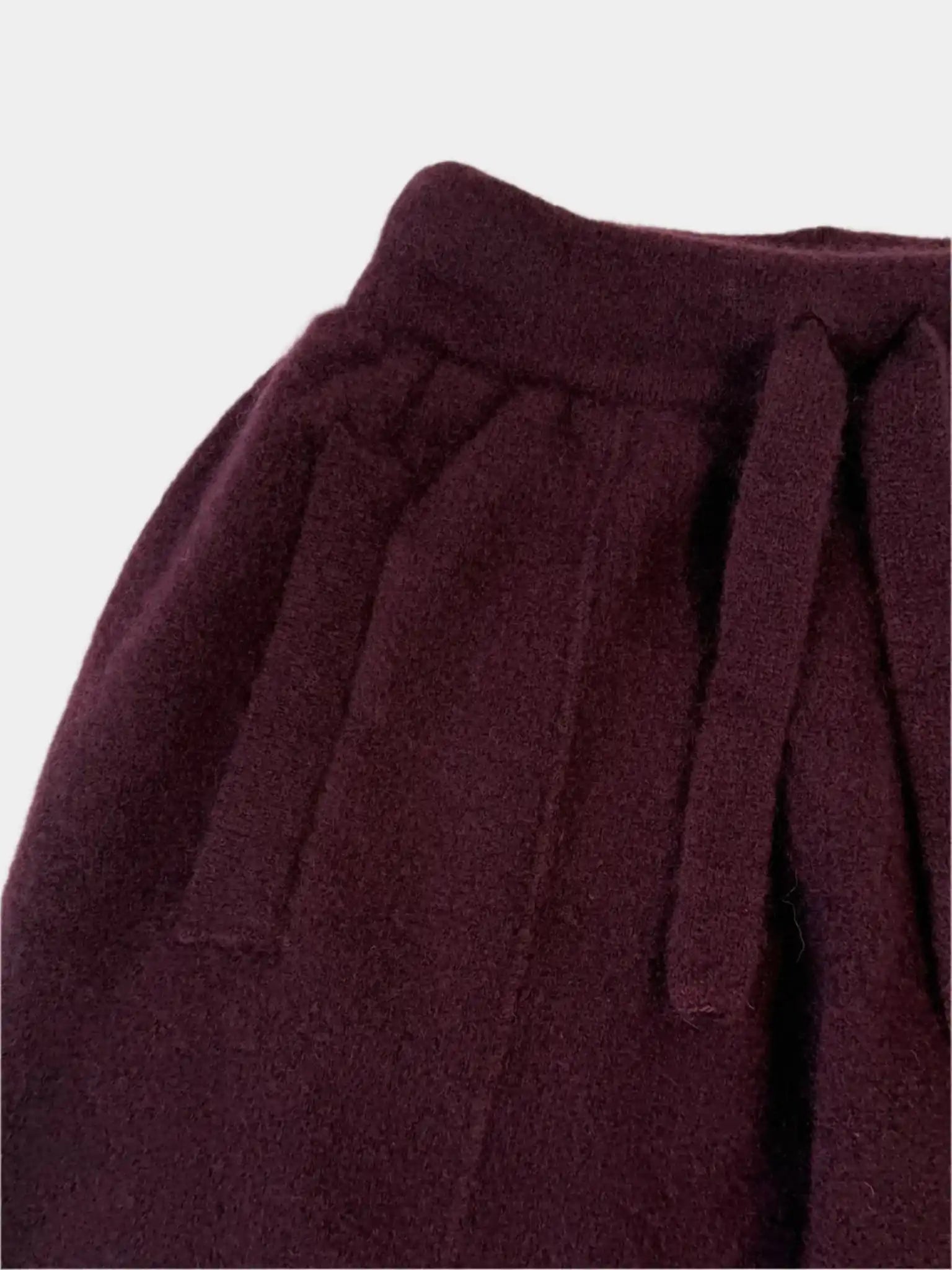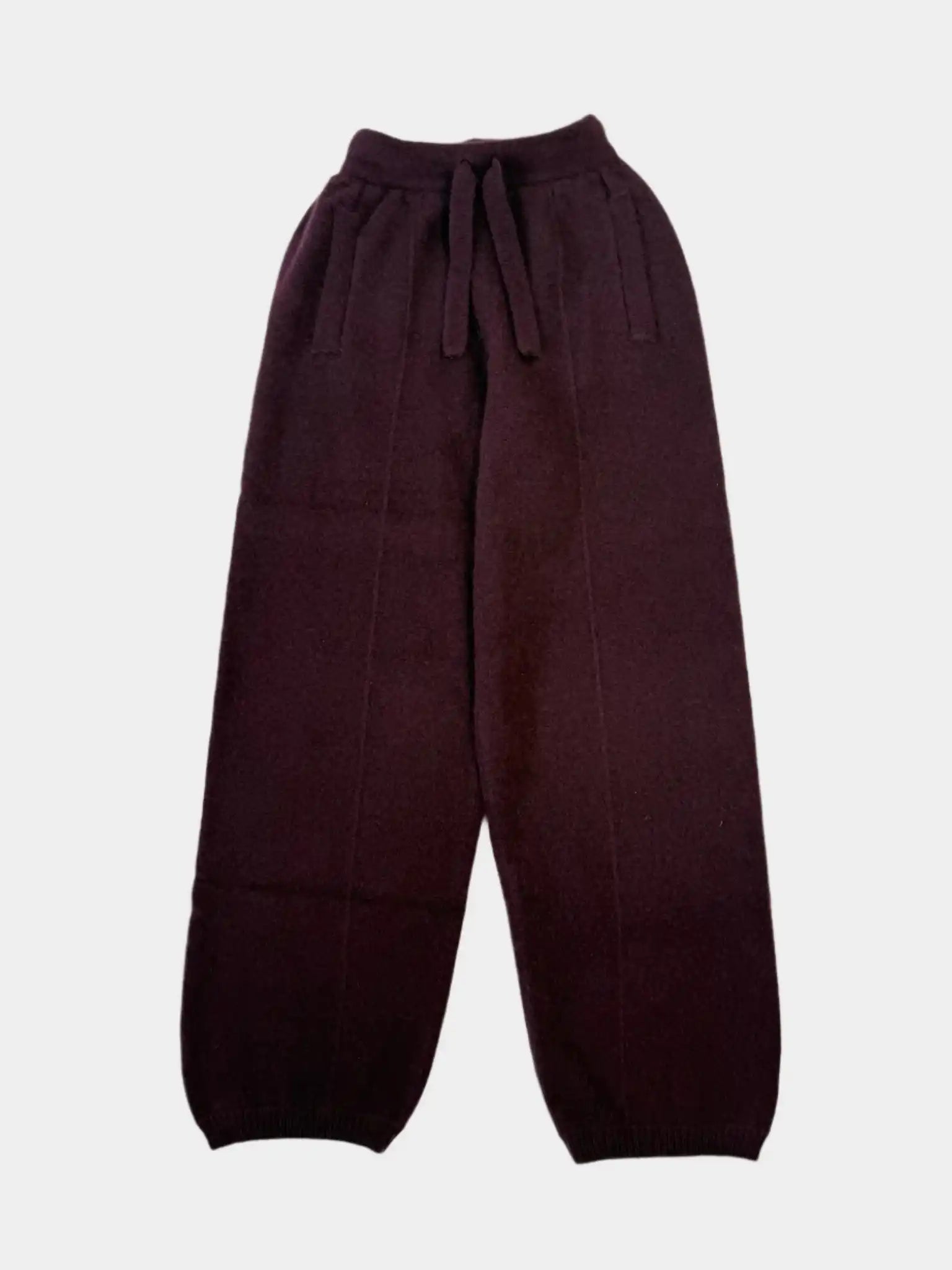 Knitted joggers made from a premium cashmere blend, with an extremely soft and enveloping touch. The burgundy shade and essential design make them perfect for a luxurious yet relaxed look. Ideal for pairing with coordinated sweaters or refined loungewear-style pieces.
