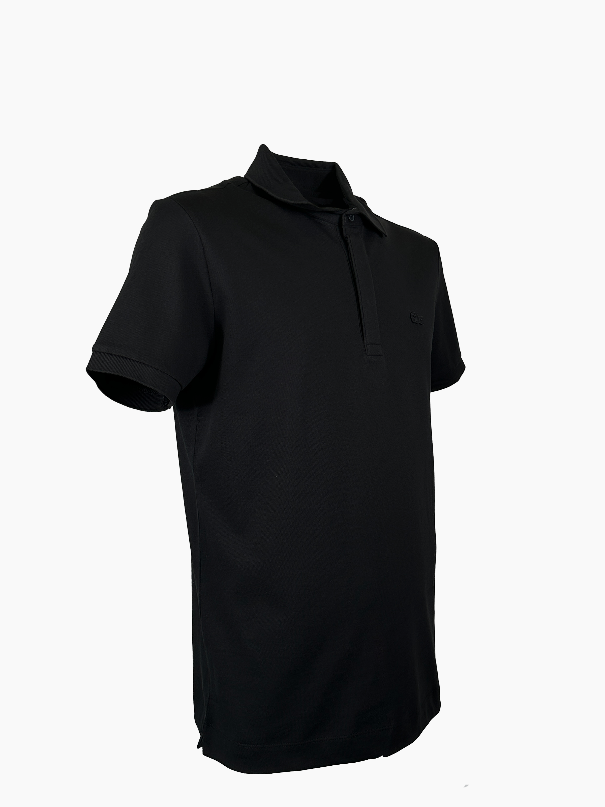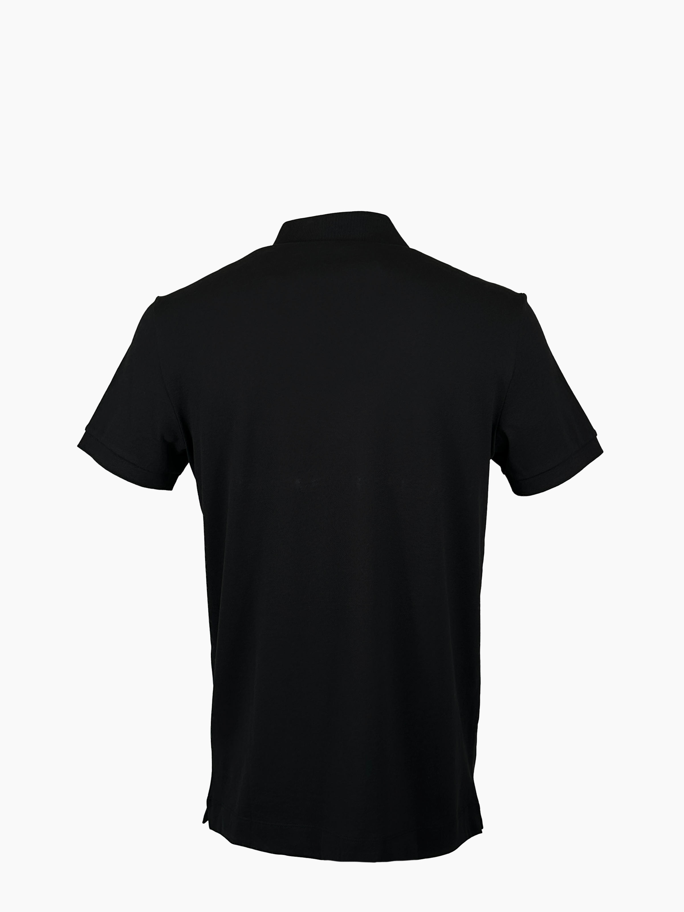 Polo nera a maniche corte realizzata in piqué di cotone, caratterizzata da un design pulito ed elegante che la rende adatta sia a look casual che a outfit più curati. Il colletto classico con abbottonatura a due bottoni aggiunge un tocco raffinato, mentre il logo tono su tono ricamato sul petto dona un dettaglio discreto e distintivo. La vestibilità regolare assicura comfort durante tutta la giornata, rendendo questo modello un capo essenziale e versatile per il guardaroba quotidiano.