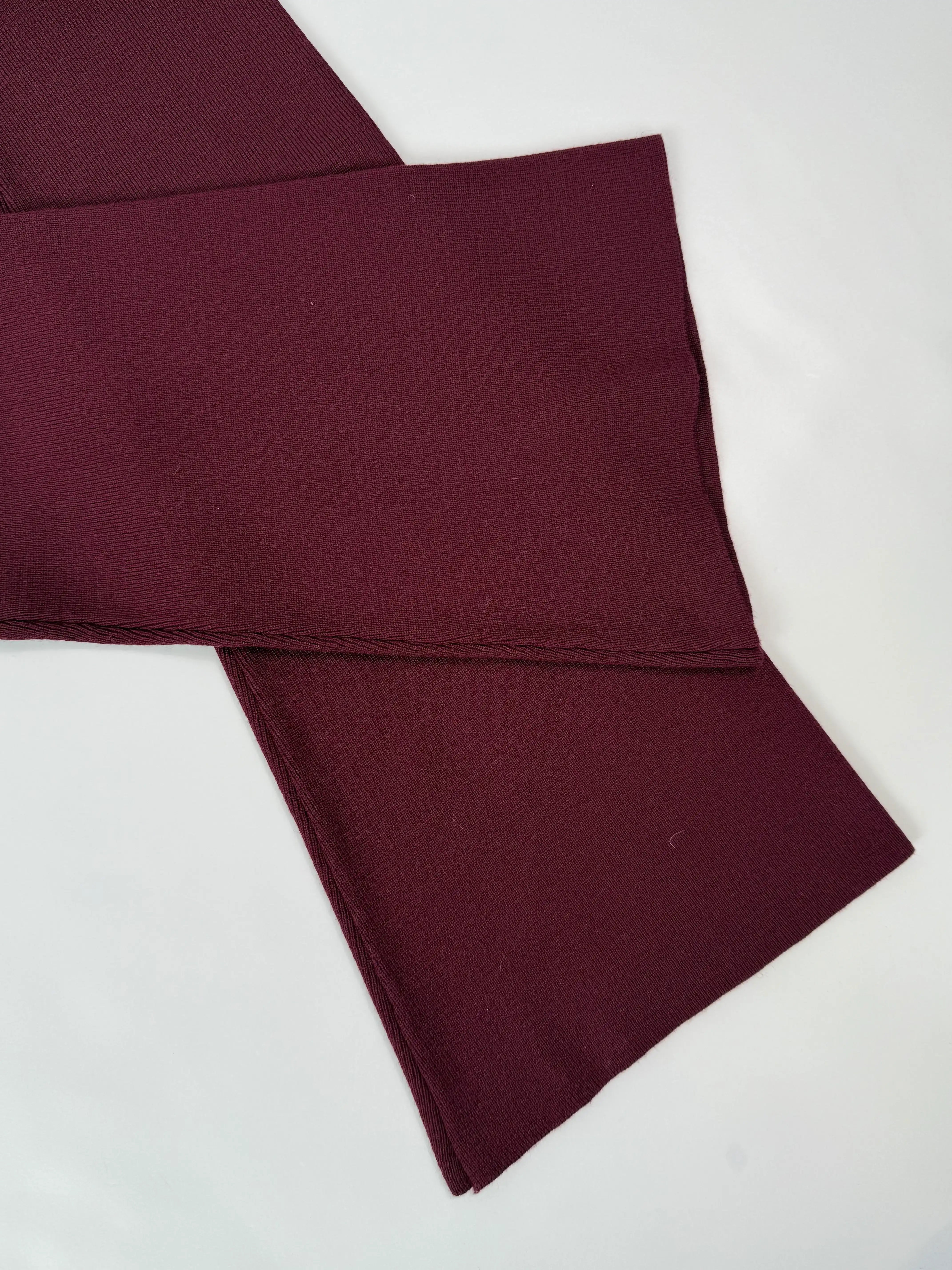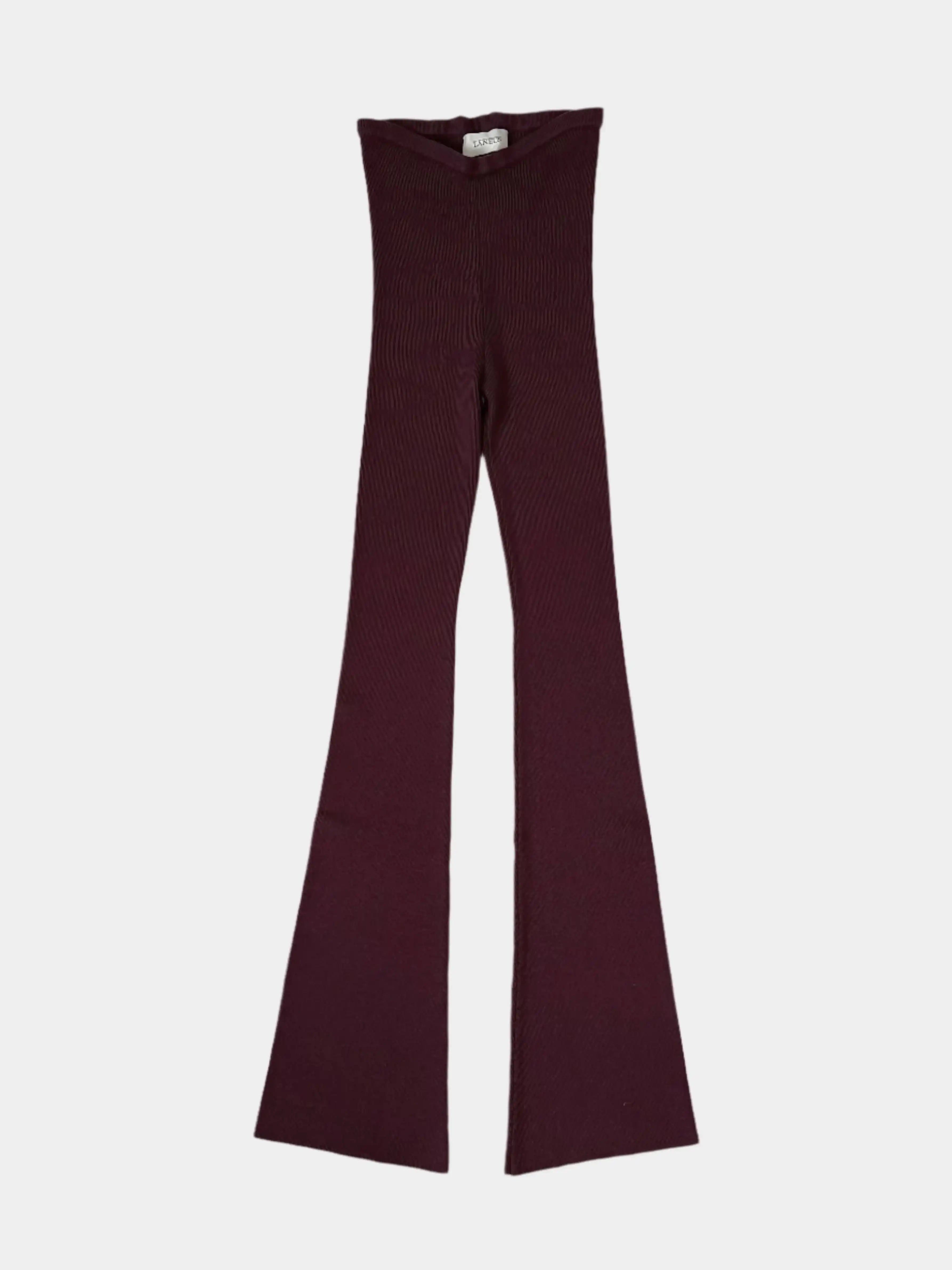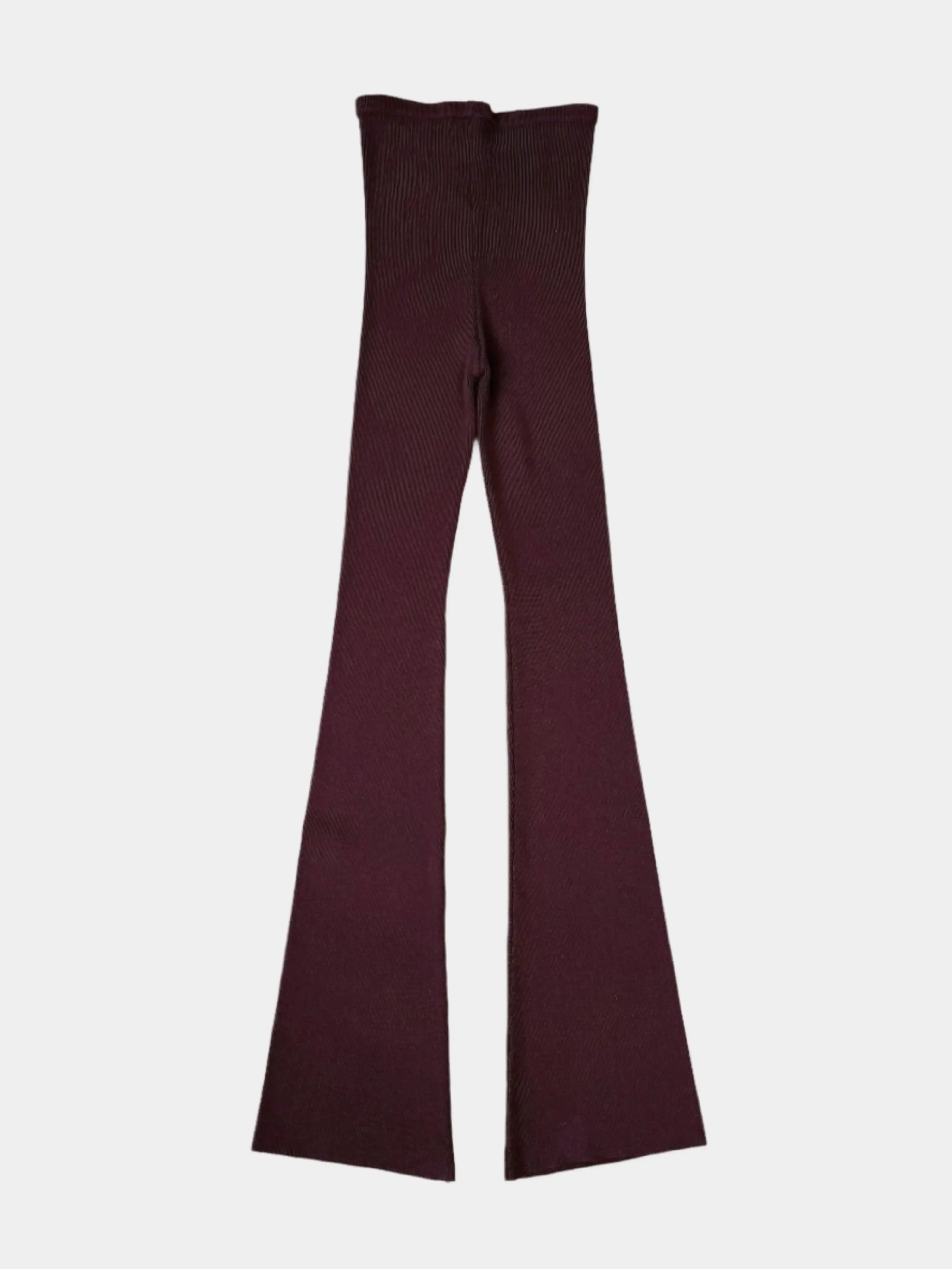 These leggings by Laneus stand out for their fitted silhouette with flared bottom and deep burgundy color. Made of soft wool knit, they offer comfort and style in one gesture. Ideal to wear with boots or décolleté for a sophisticated and modern look.