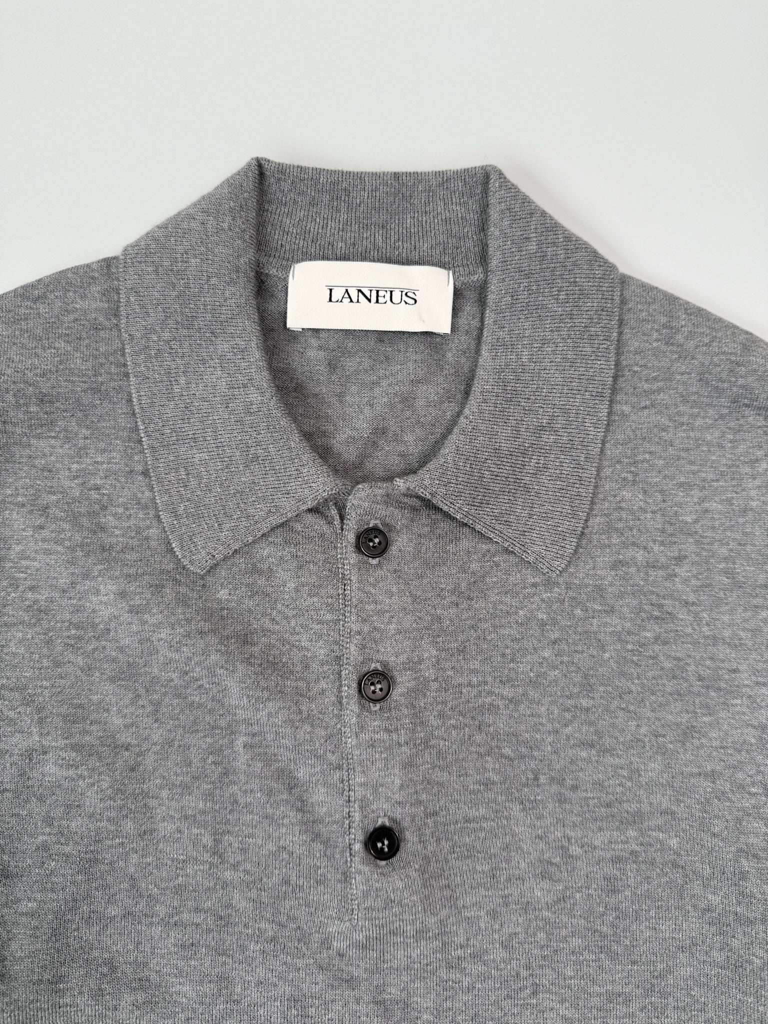 Essential, refined and incredibly versatile: the grey polo shirt by Laneus is a must-have for your wardrobe this season. Crafted from a lightweight and soft knit, it features a clean design with a classic collar and front buttoning. Ideal to wear alone or under a jacket for an impeccable casual-chic look.
