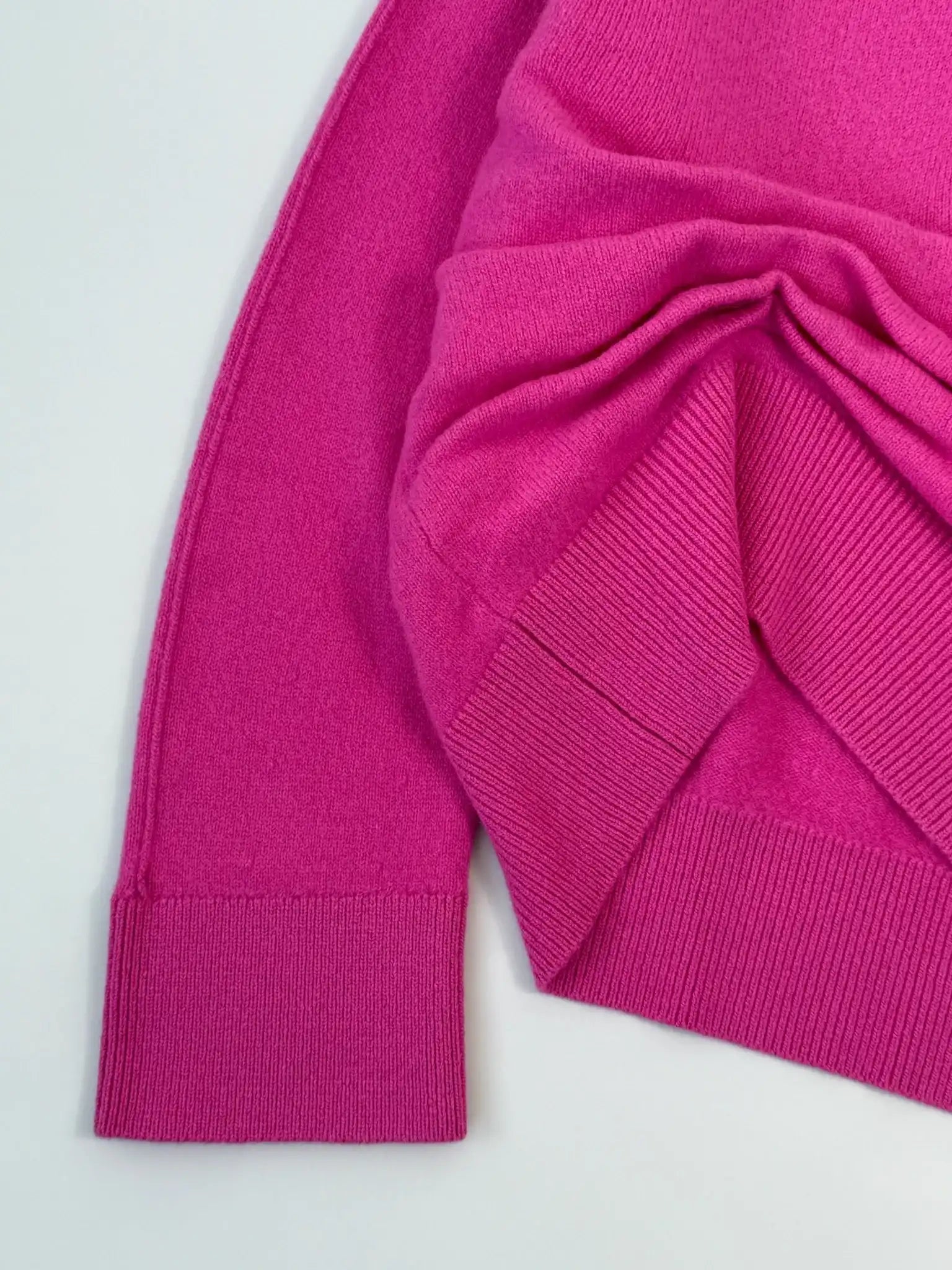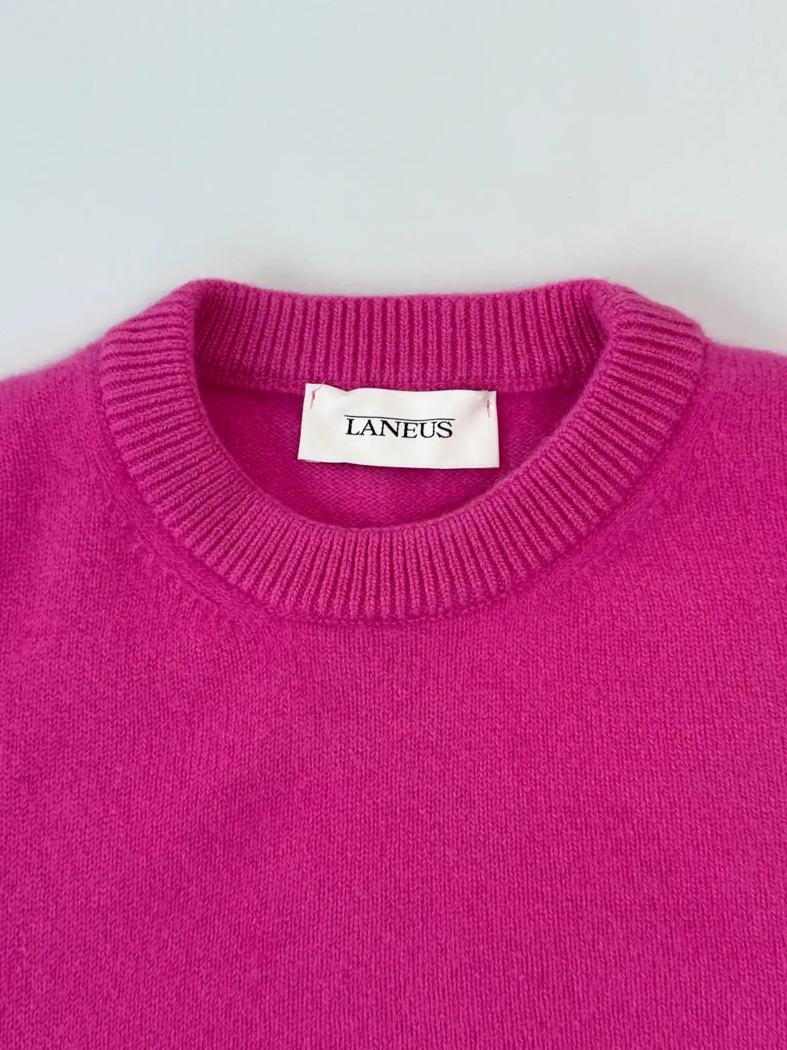 This crewneck sweater in virgin wool by Laneus stands out for its intense fuchsia shade and the quality of the yarn. The minimal design is enhanced by the ribbed edge and the relaxed line, ideal for giving character to every everyday look. A versatile, warm and sophisticated garment, perfect for facing the season in style.