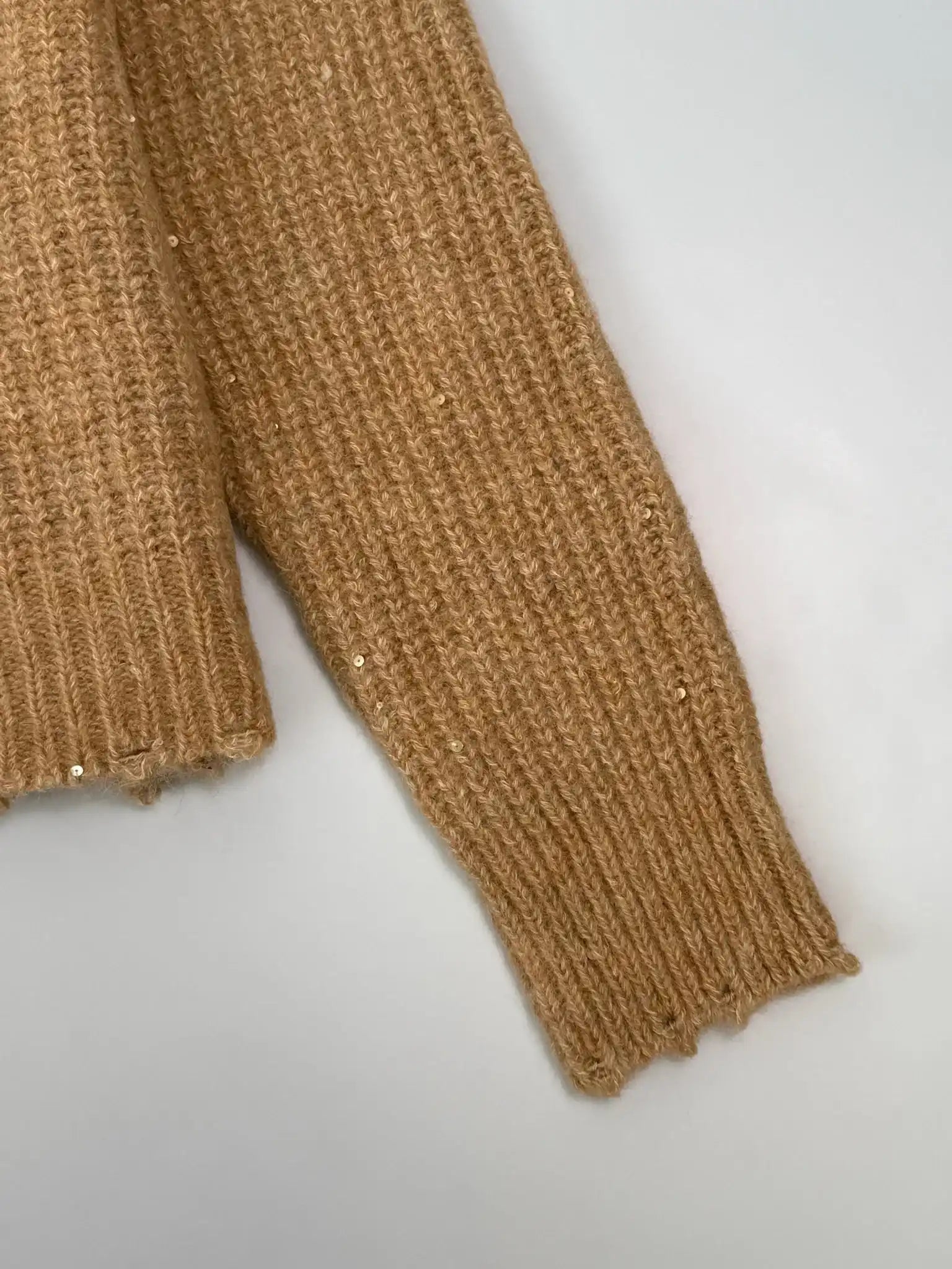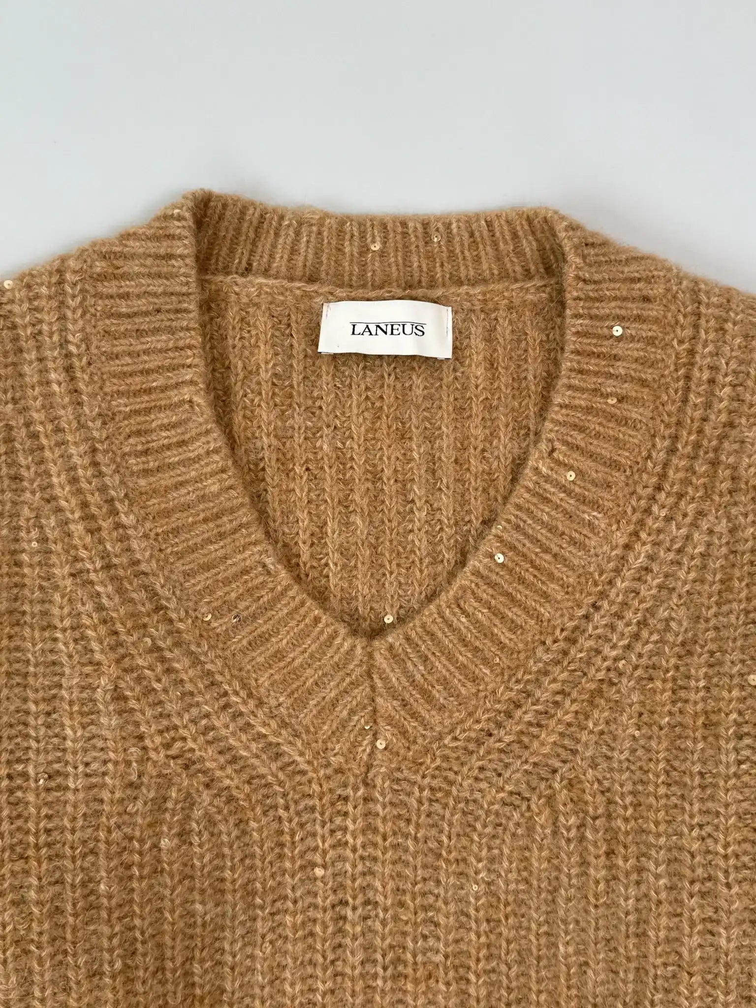 This Laneus sweater combines simplicity and vivacity in a contemporary style. Crafted from a soft wool and alpaca blend, it features a camel shade with sequin appliqué and a cropped design with ribbed finishes on the cuffs, hem and neckline. The boxy cut and V-neck make it perfect to pair with high-waisted trousers for a fresh and sophisticated look.