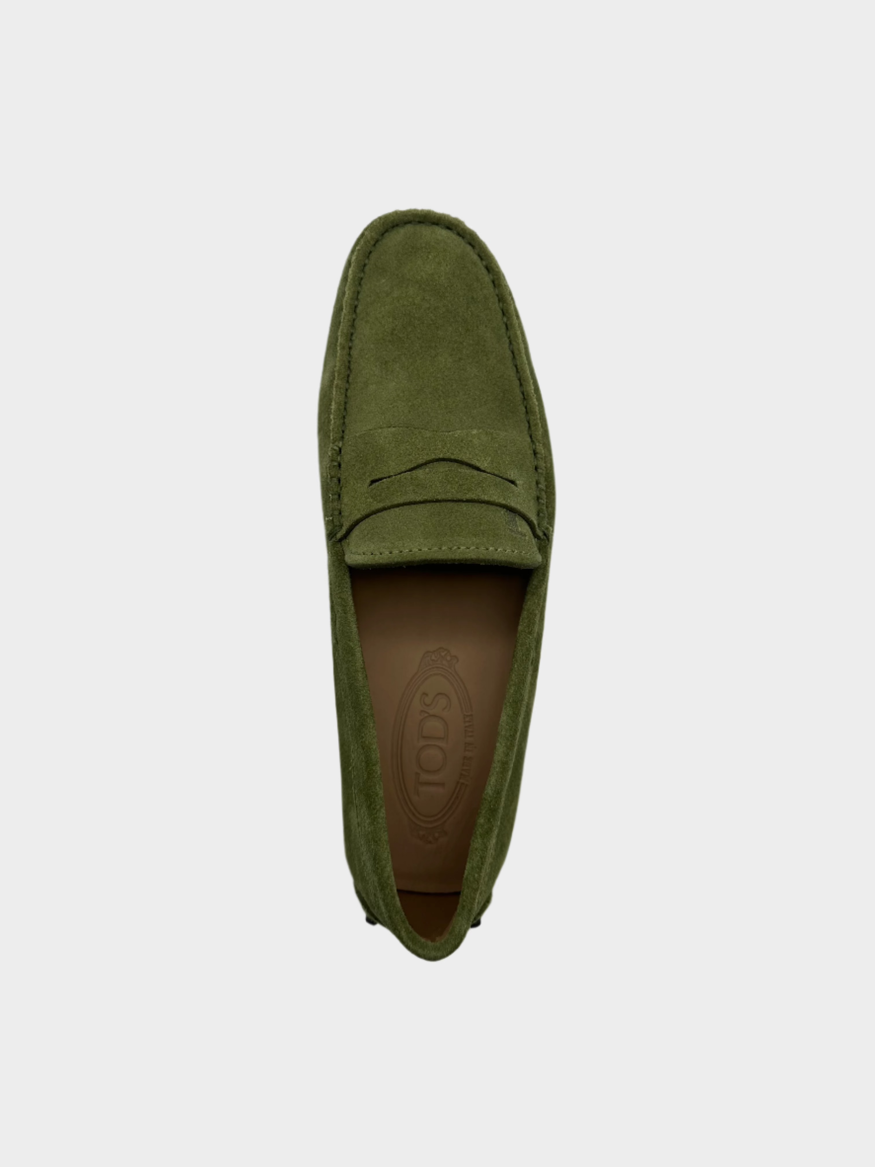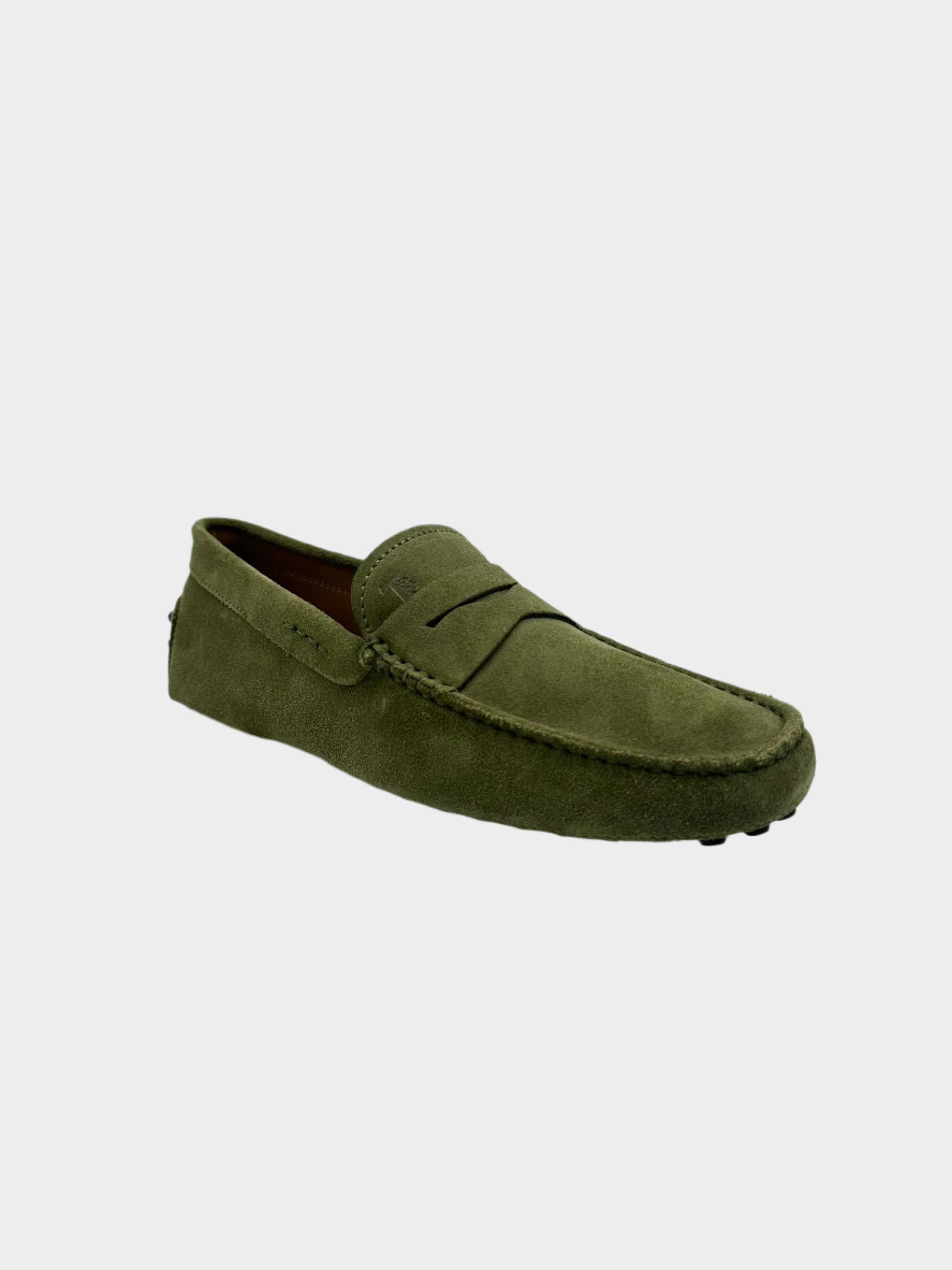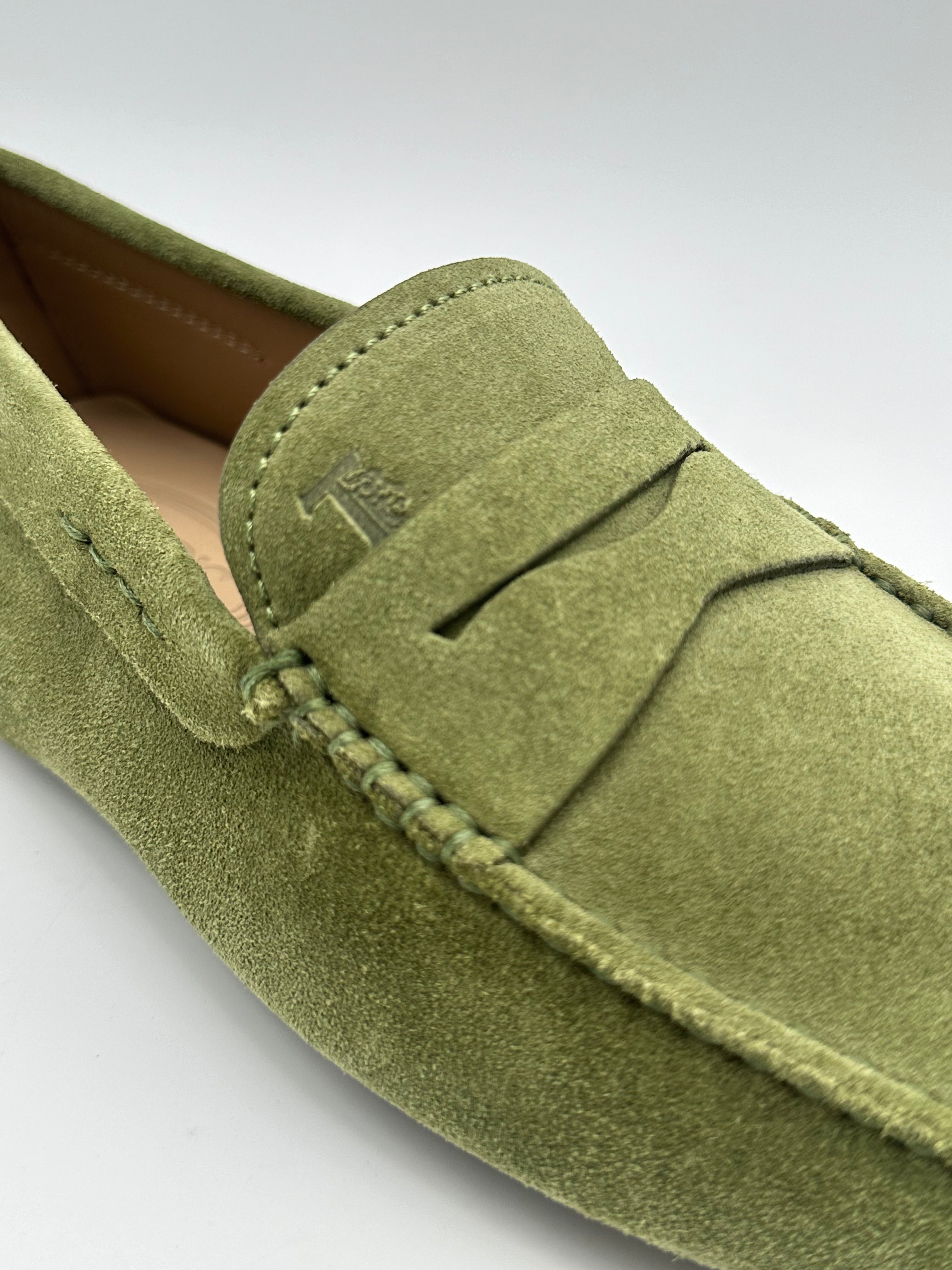 Refined and iconic, the Tod's loafer in sage suede is perfect for those seeking style and comfort in a single shoe. The soft and velvety suede elegantly envelops the foot, while the classic rubber outsole guarantees a stable and flexible fit. The unmistakable front mask completes the look with a timeless touch.