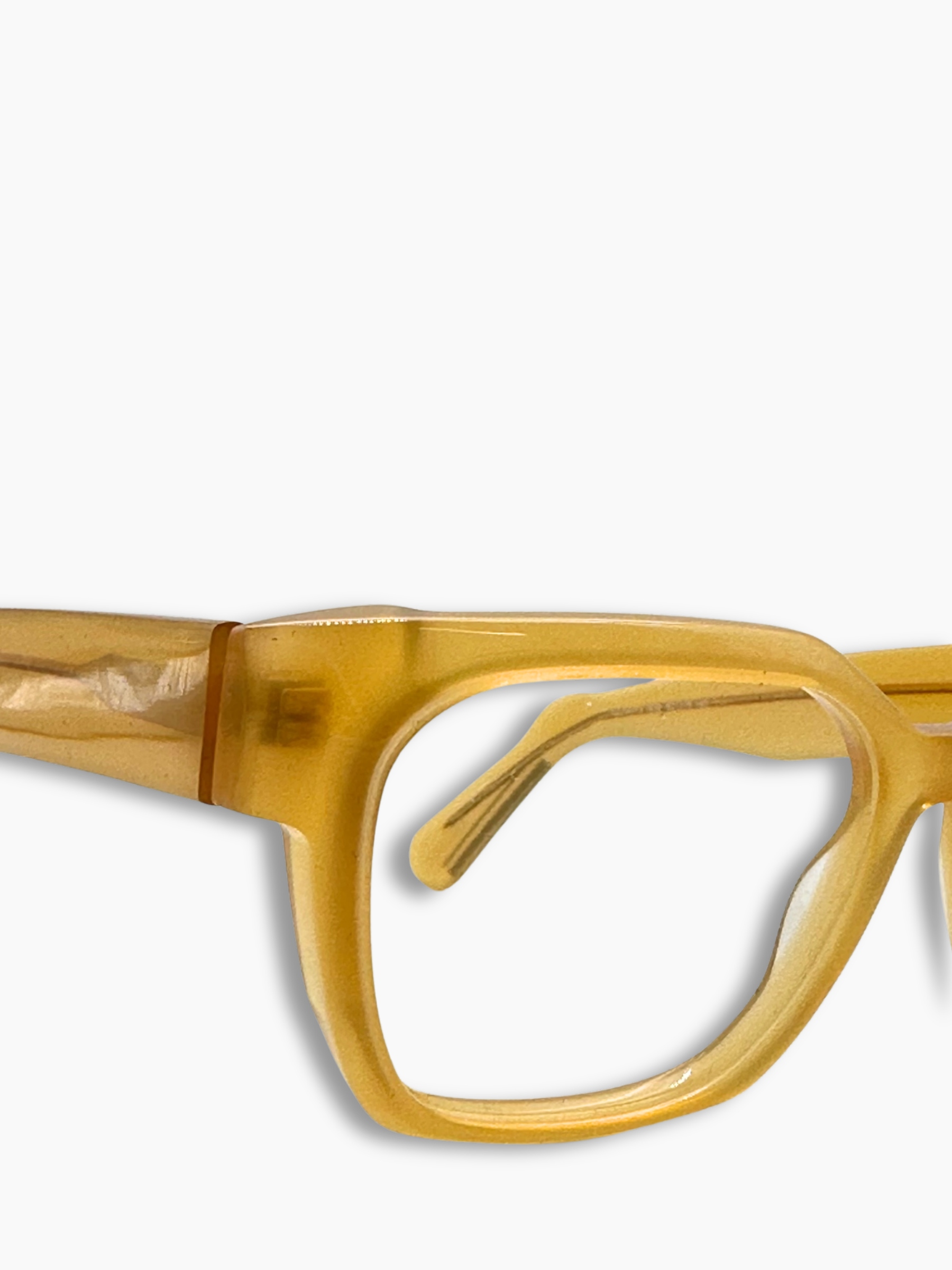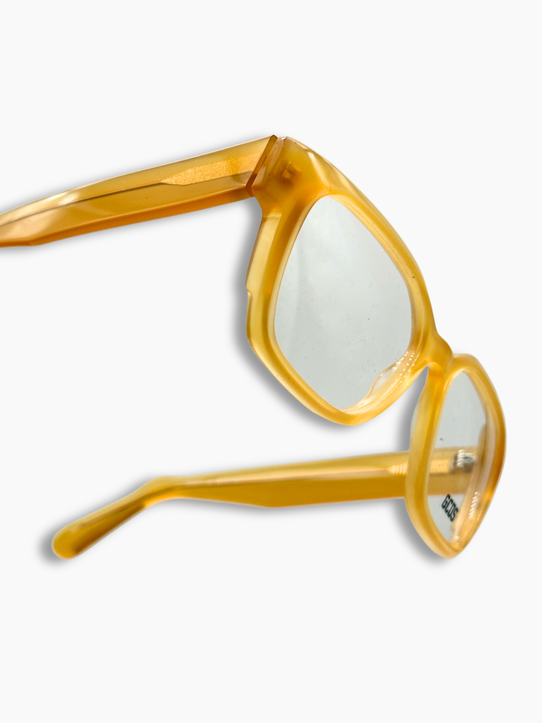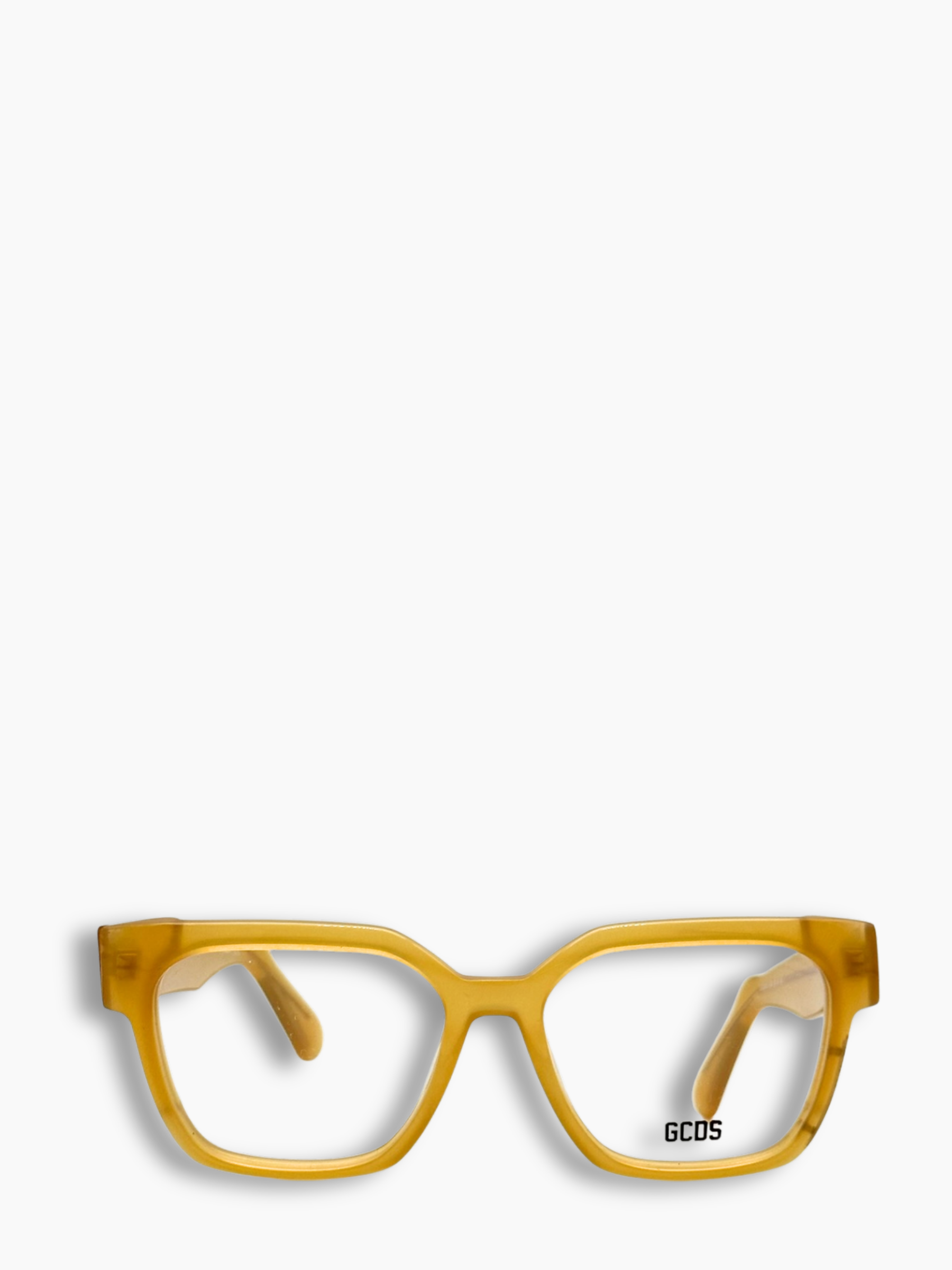 Occhiali da vista dal design contemporaneo con montatura rettangolare in acetato giallo opaco. Un modello leggero, fresco e distintivo, ideale per aggiungere un tocco di colore ai look quotidiani senza rinunciare alla pulizia delle linee.