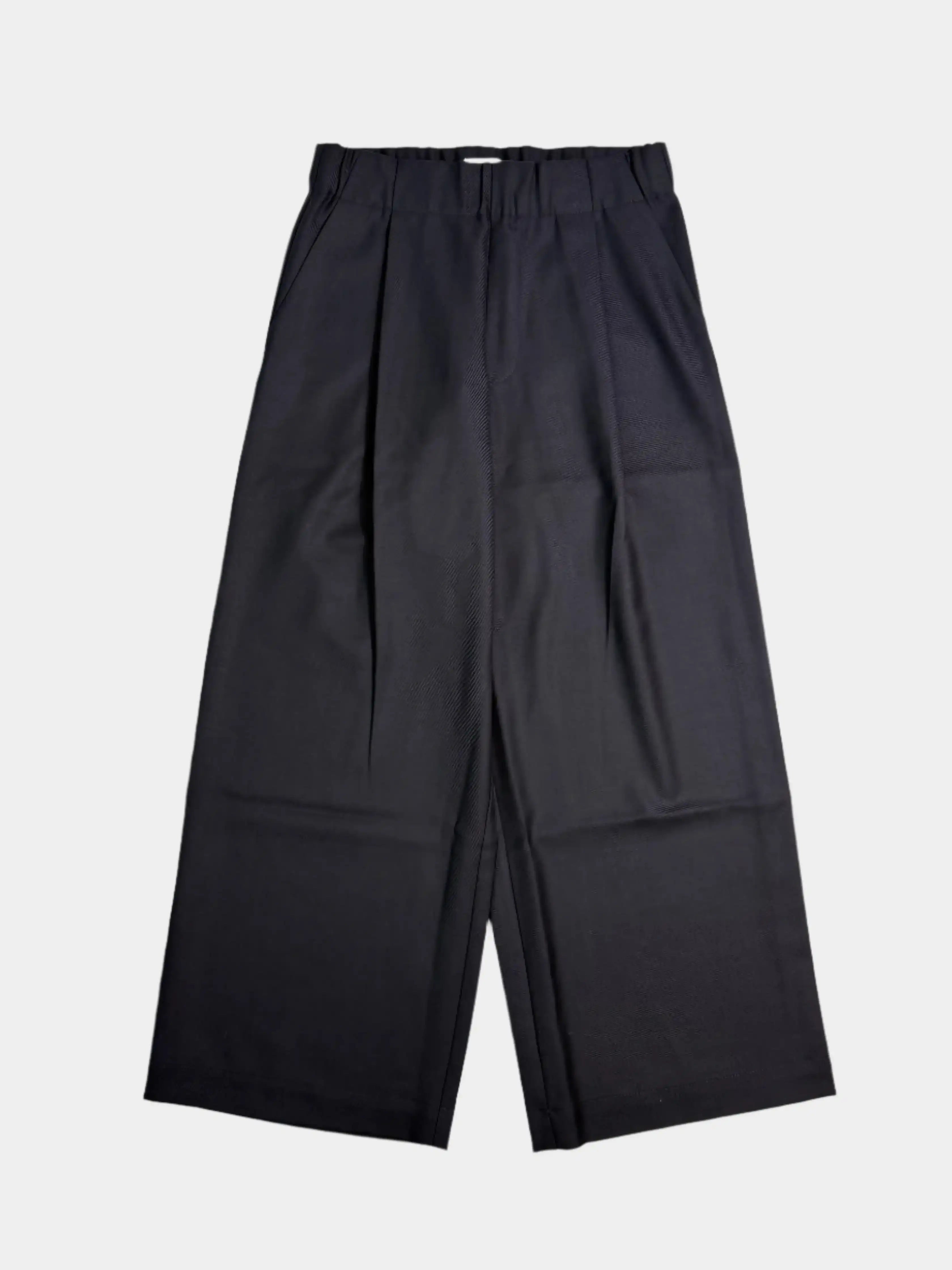 These black wide-leg trousers are crafted from pure virgin wool for timeless elegance. The flowing silhouette and elasticated waist provide comfort and movement, making them ideal for refined looks from day to evening. A contemporary essential that combines style and versatility.