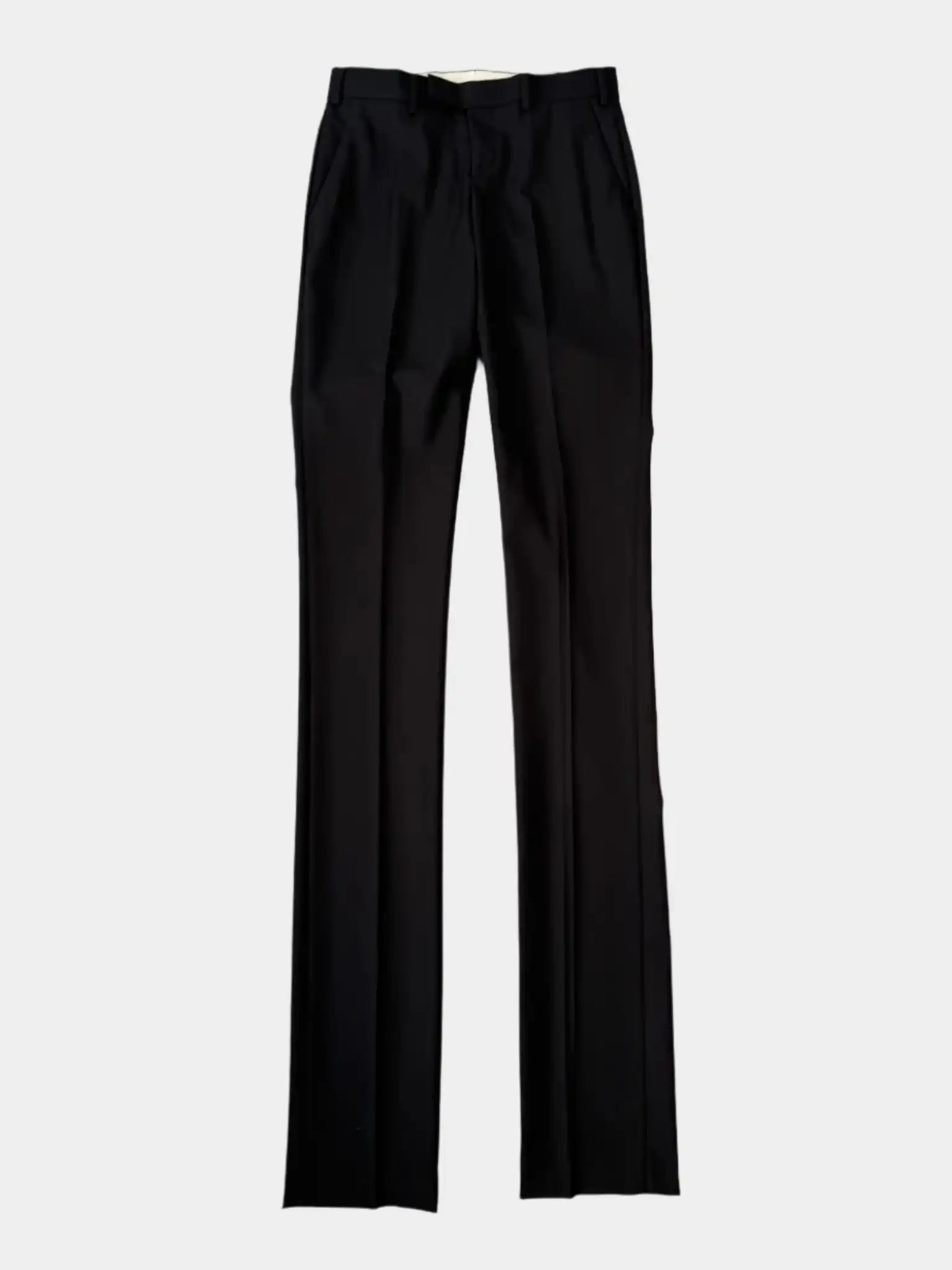 Elegance and tailoring meet in these classic black trousers by Laneus. Crafted from pure virgin wool, they feature a straight, tapered silhouette that flatters the figure with impeccable style. The clean lines and formal finish make them a must-have for a sophisticated wardrobe, ideal for both day and evening.
