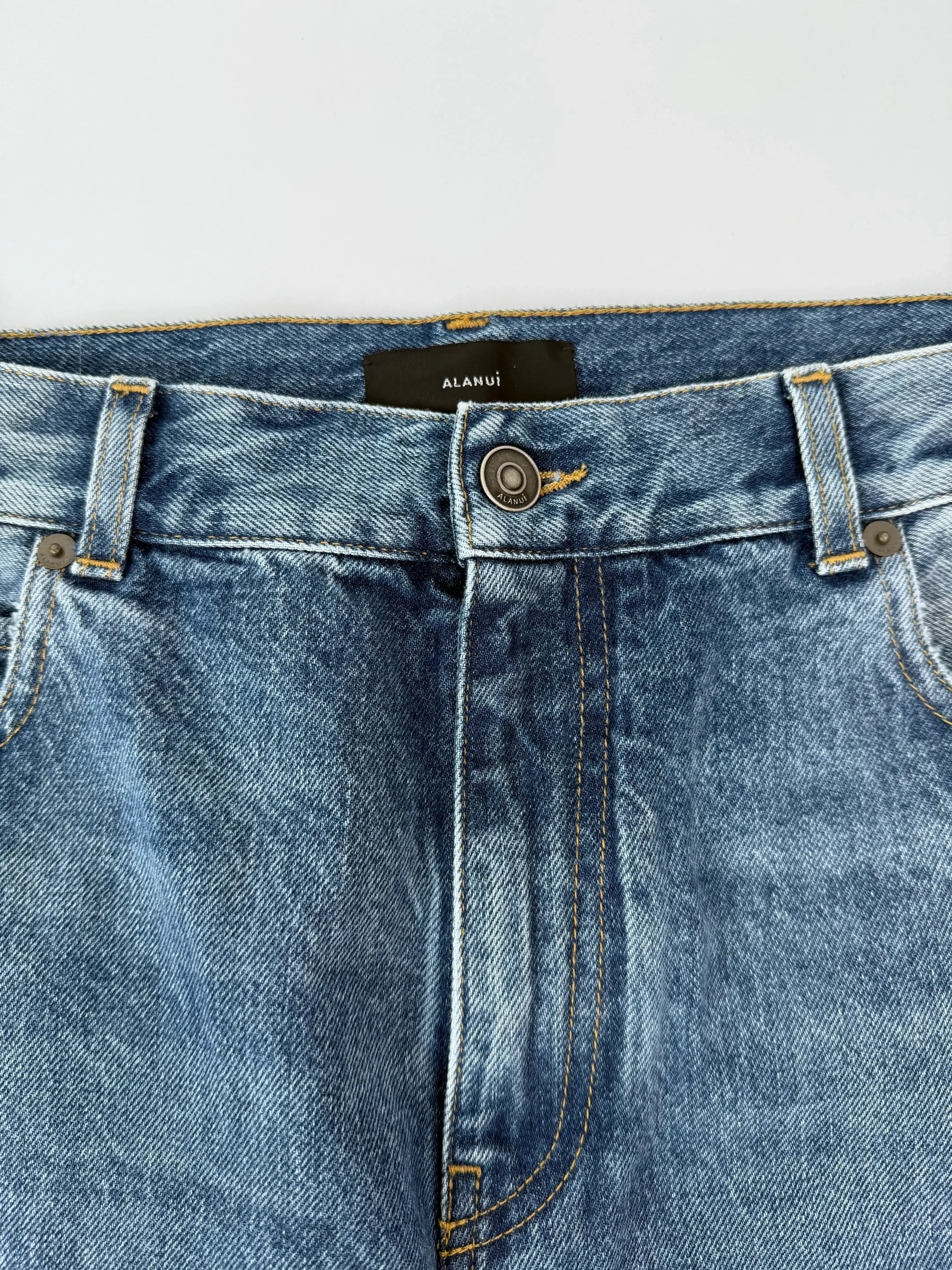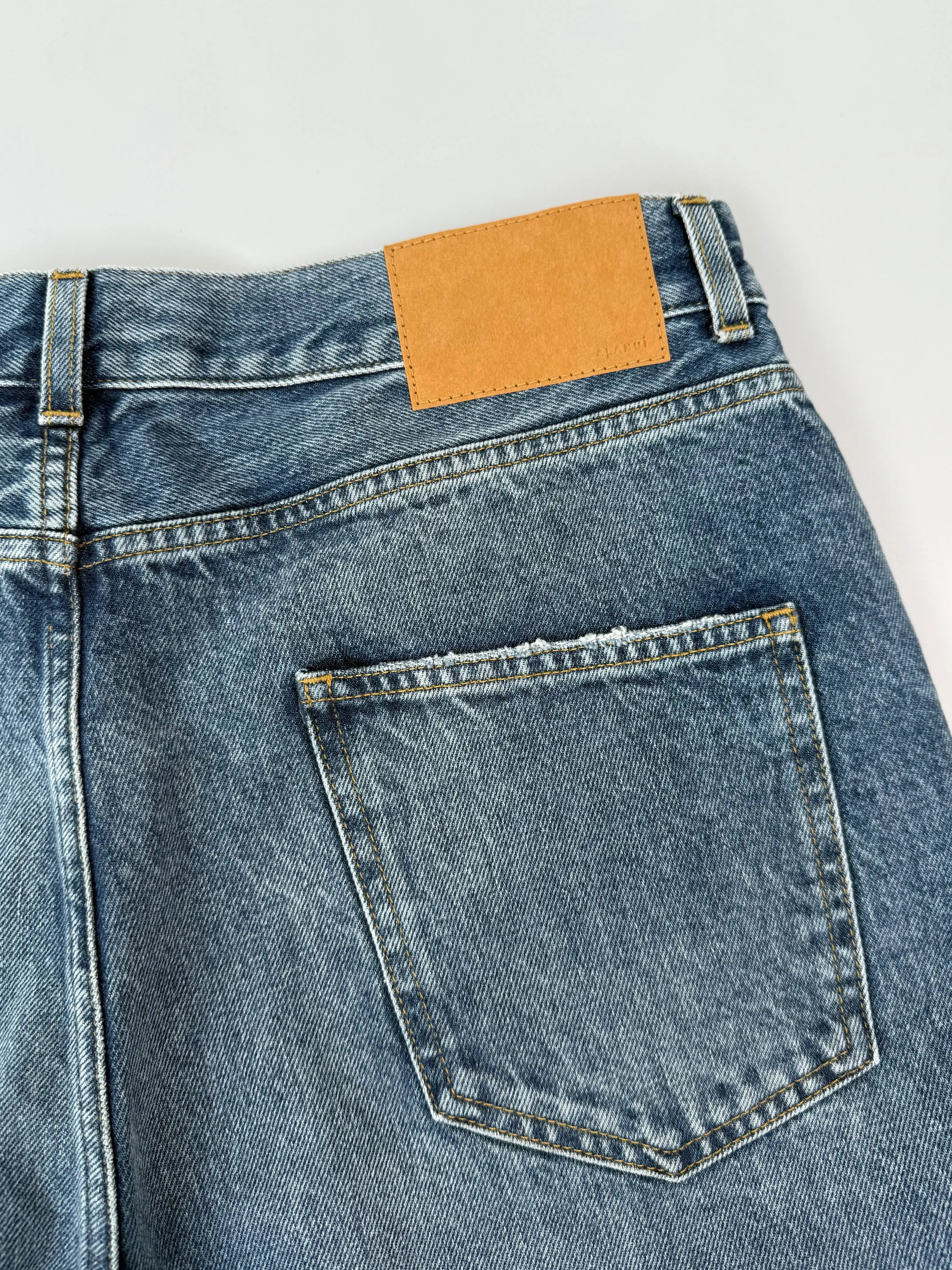 Classically cut but with a contemporary soul, these denim trousers feature a medium faded wash that adds character and versatility. The straight line and slightly faded finish make them ideal for everyday use, easily adapting to both casual and more refined looks.