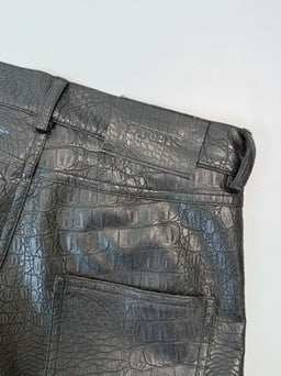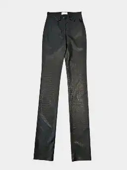 These black faux leather long trousers by Laneus are a bold and sophisticated piece, ideal for those who love to stand out with style. Characterised by a python-effect texture, they have a straight and slender silhouette with a front button and zip fastening. The minimal design enhances the shiny and structured material, adding a touch of glamour to any evening look.