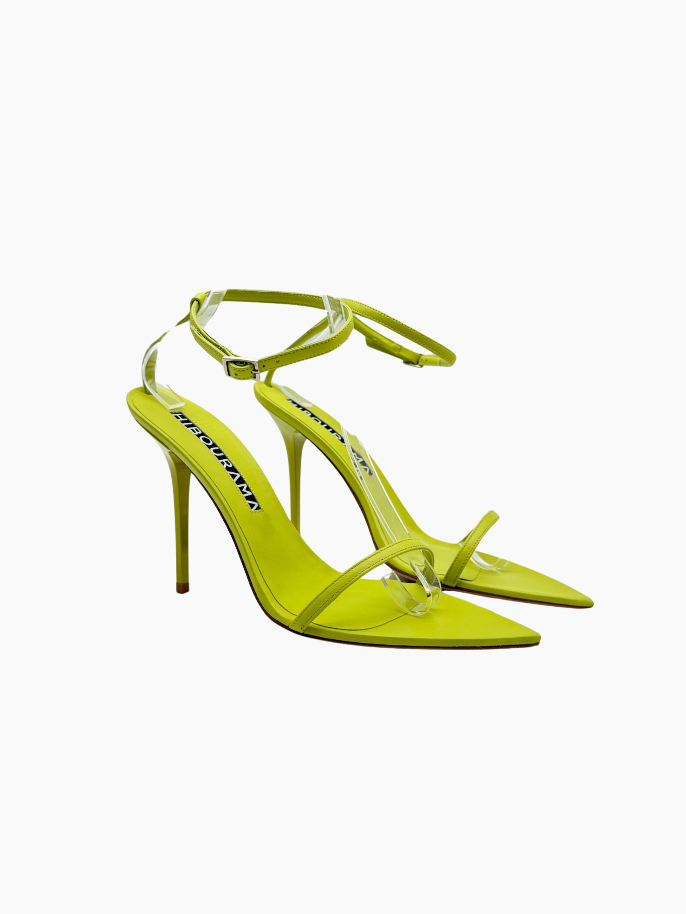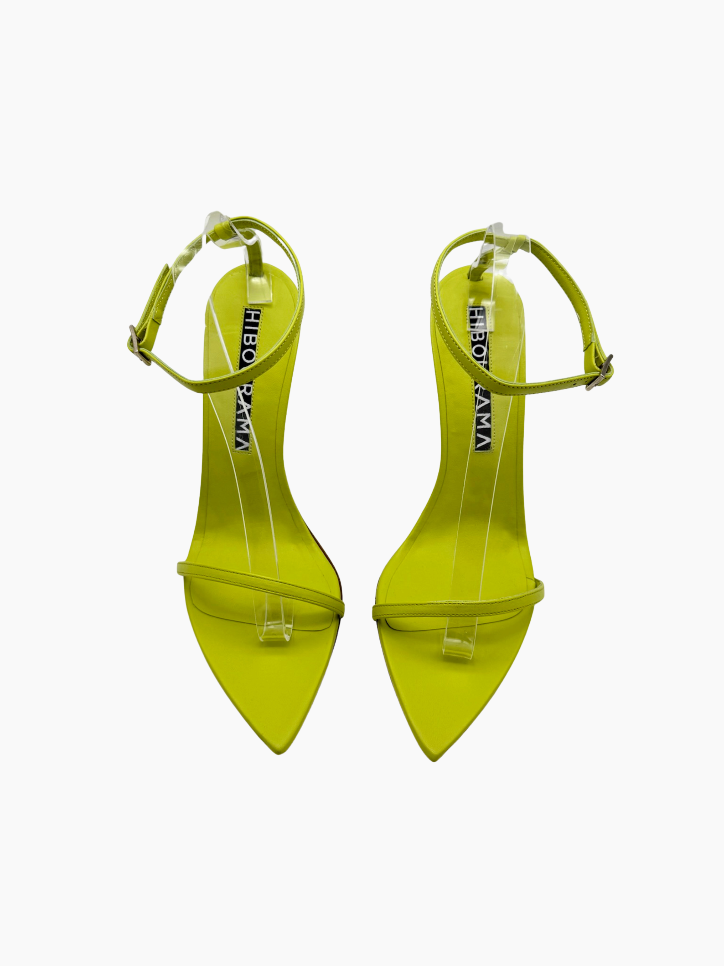 A burst of color and a minimalist design: the Sandra sandals by Hibourama in lime green leather are the statement piece for your summer wardrobe. The simple design with an ankle strap, pointed toe, and stiletto heel boldly slims the silhouette. The vibrant hue adds an energetic and sophisticated touch, perfect for day and evening outfits.