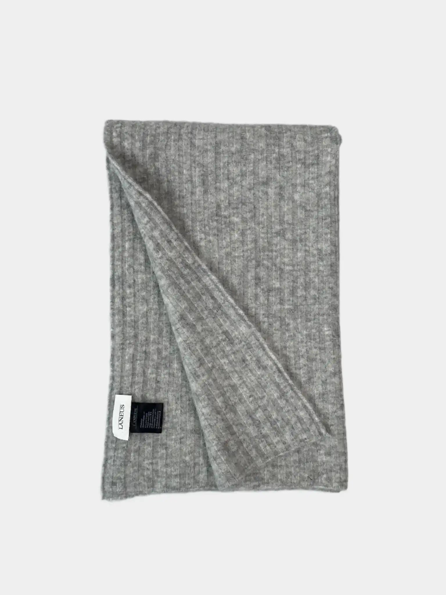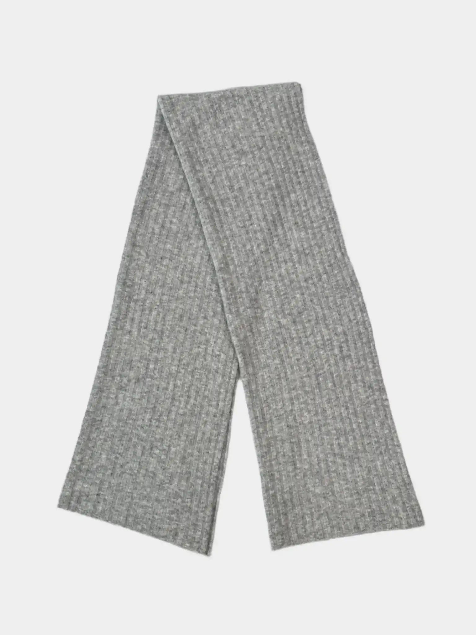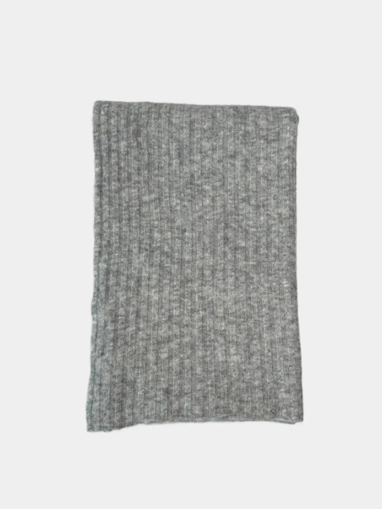 This grey ribbed knit scarf combines softness and warmth in a clean, contemporary design. A versatile accessory perfect for completing any outfit during the cold season, with a touch of understated elegance.