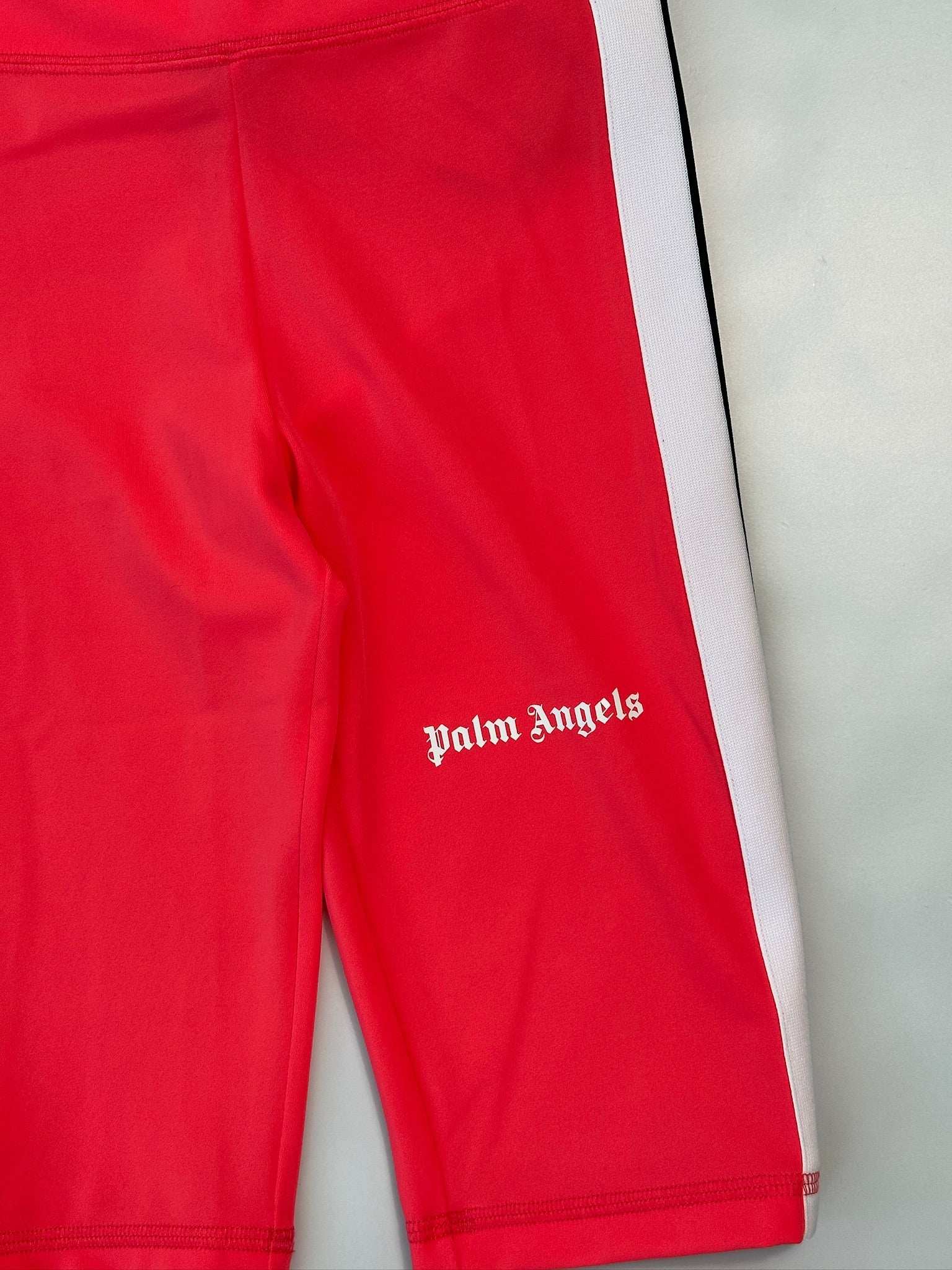 Palm Angels cycling shorts stand out for their sporty and bold style. Made from stretch technical fabric, they feature an eye-catching fuchsia colorway with contrasting white side stripes and a white Palm Angels logo printed on the leg. Designed for training and leisure, these shorts hug the body with a snug and comfortable fit, creating a dynamic, urban look. Ideal for pairing with cropped tops or oversized sweatshirts for a contemporary streetwear style.