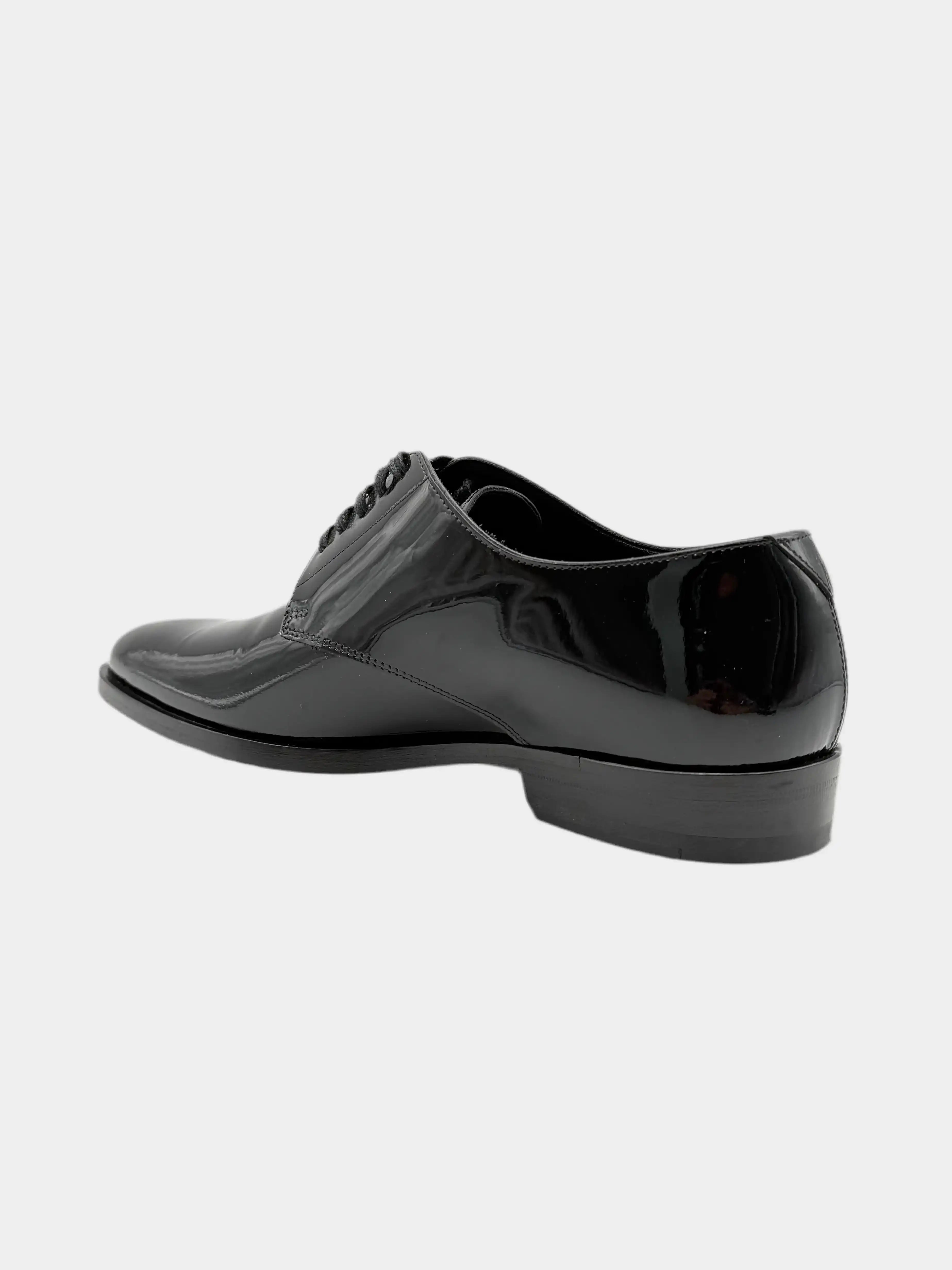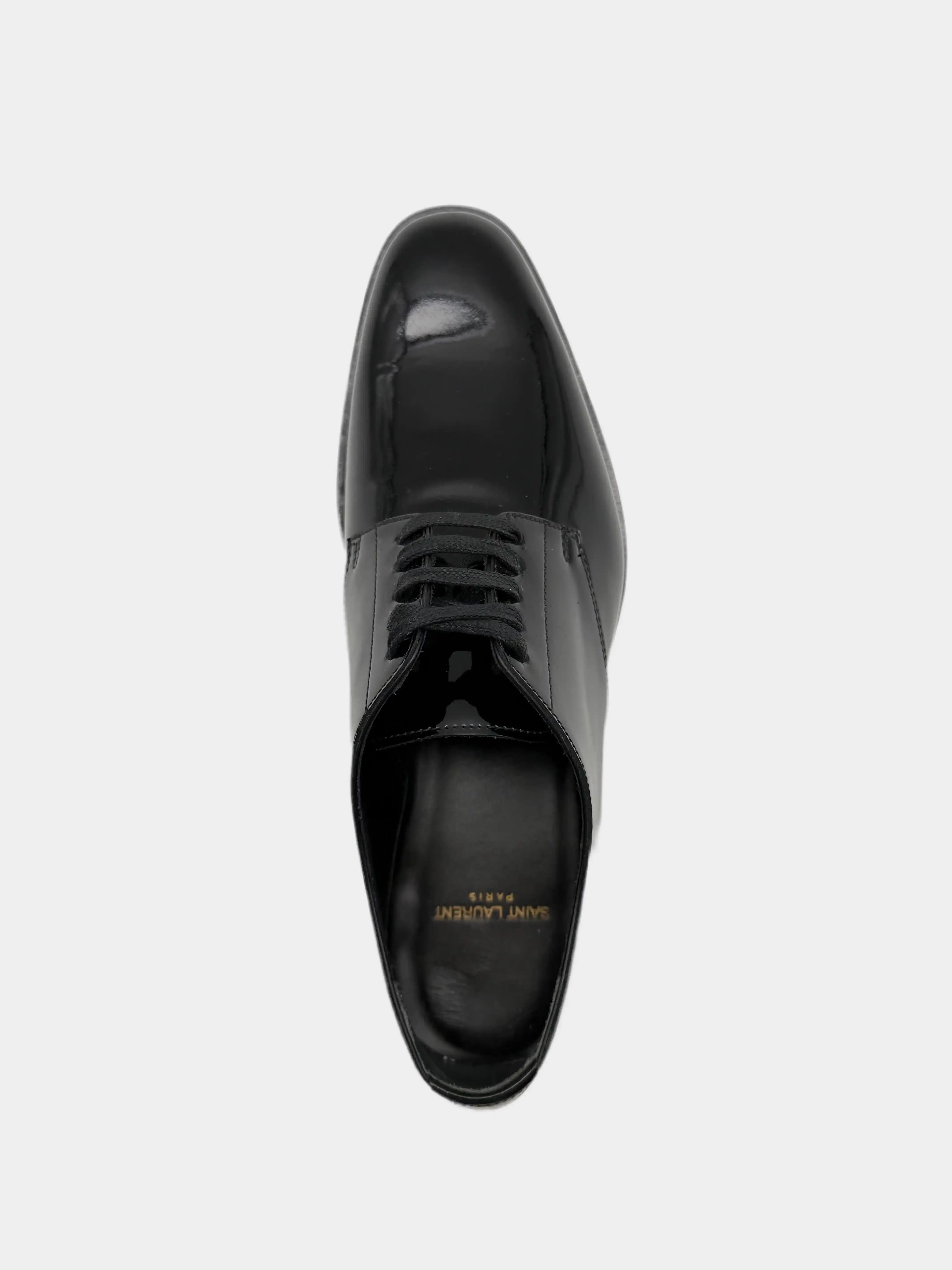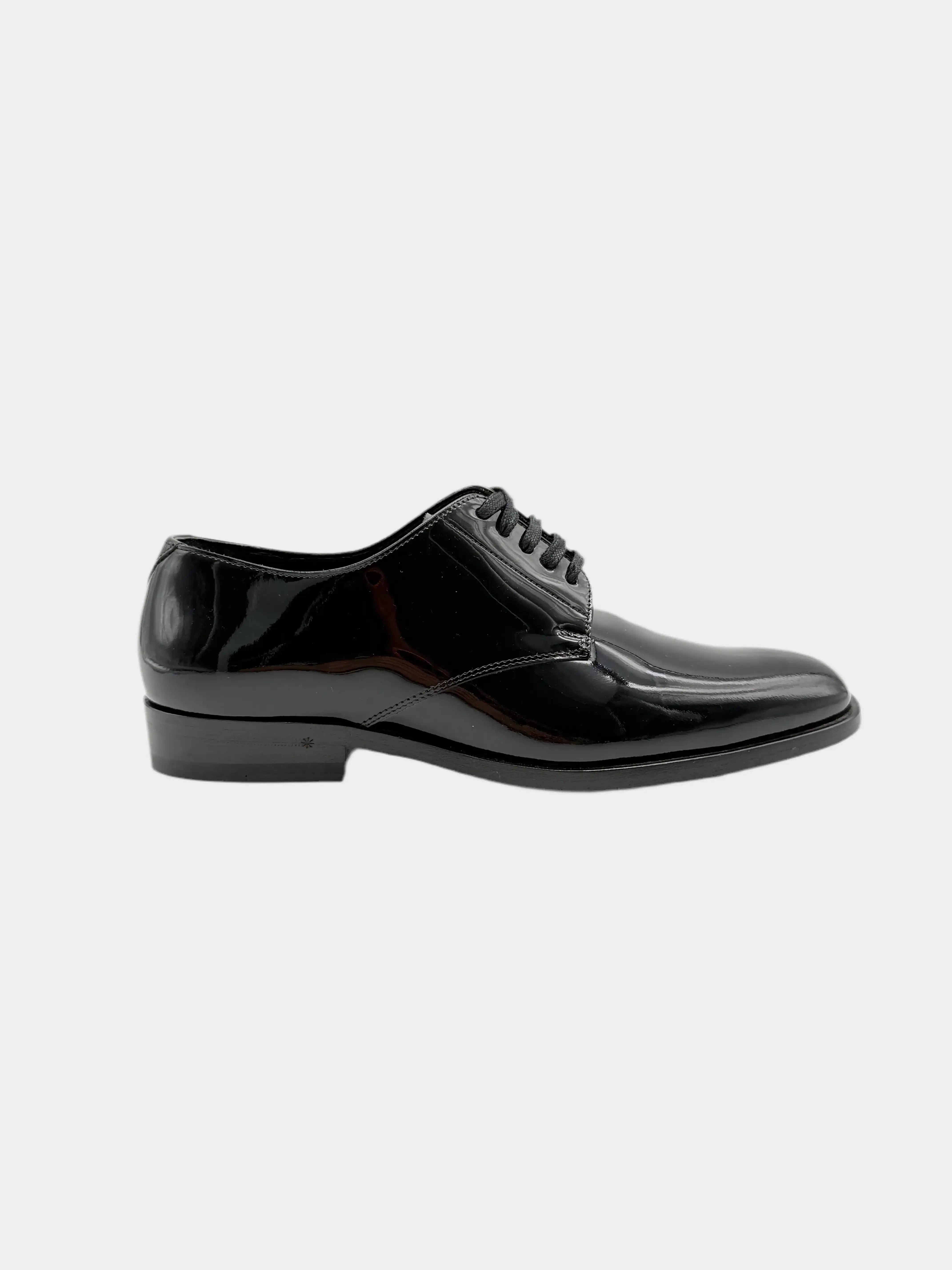 These black patent leather Saint Laurent lace-ups are the perfect balance between classic elegance and contemporary attitude. The tapered silhouette, glossy finish and craftsmanship make them a must-have for any sophisticated wardrobe. Ideal with tailored suits or minimal looks, they represent an exclusive detail that adds further value and uniqueness.
