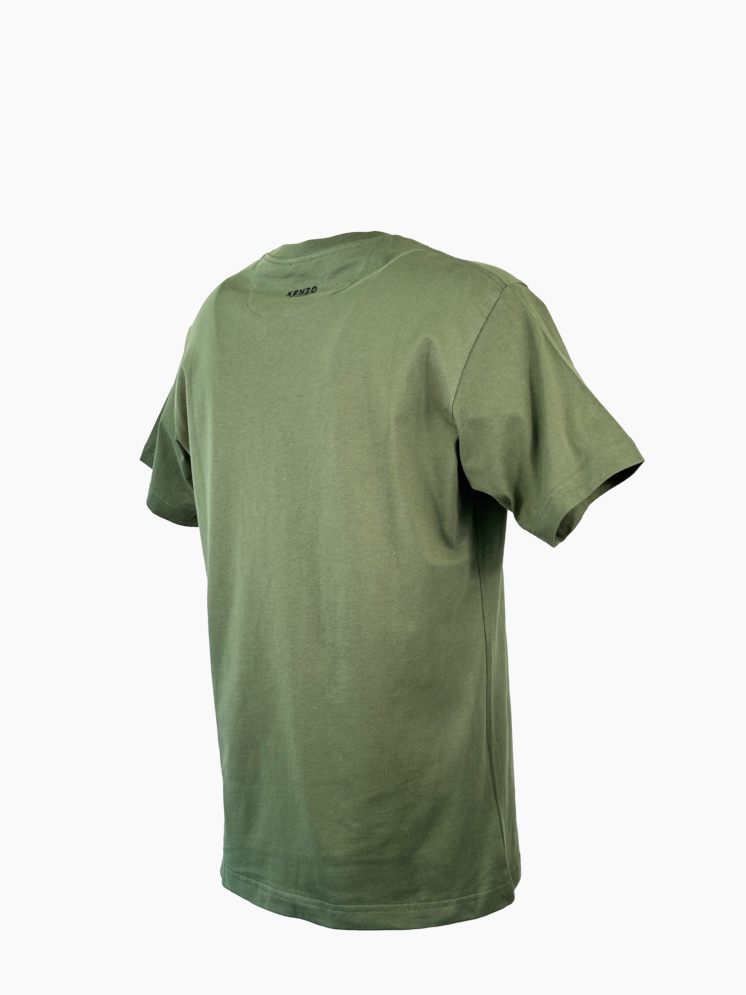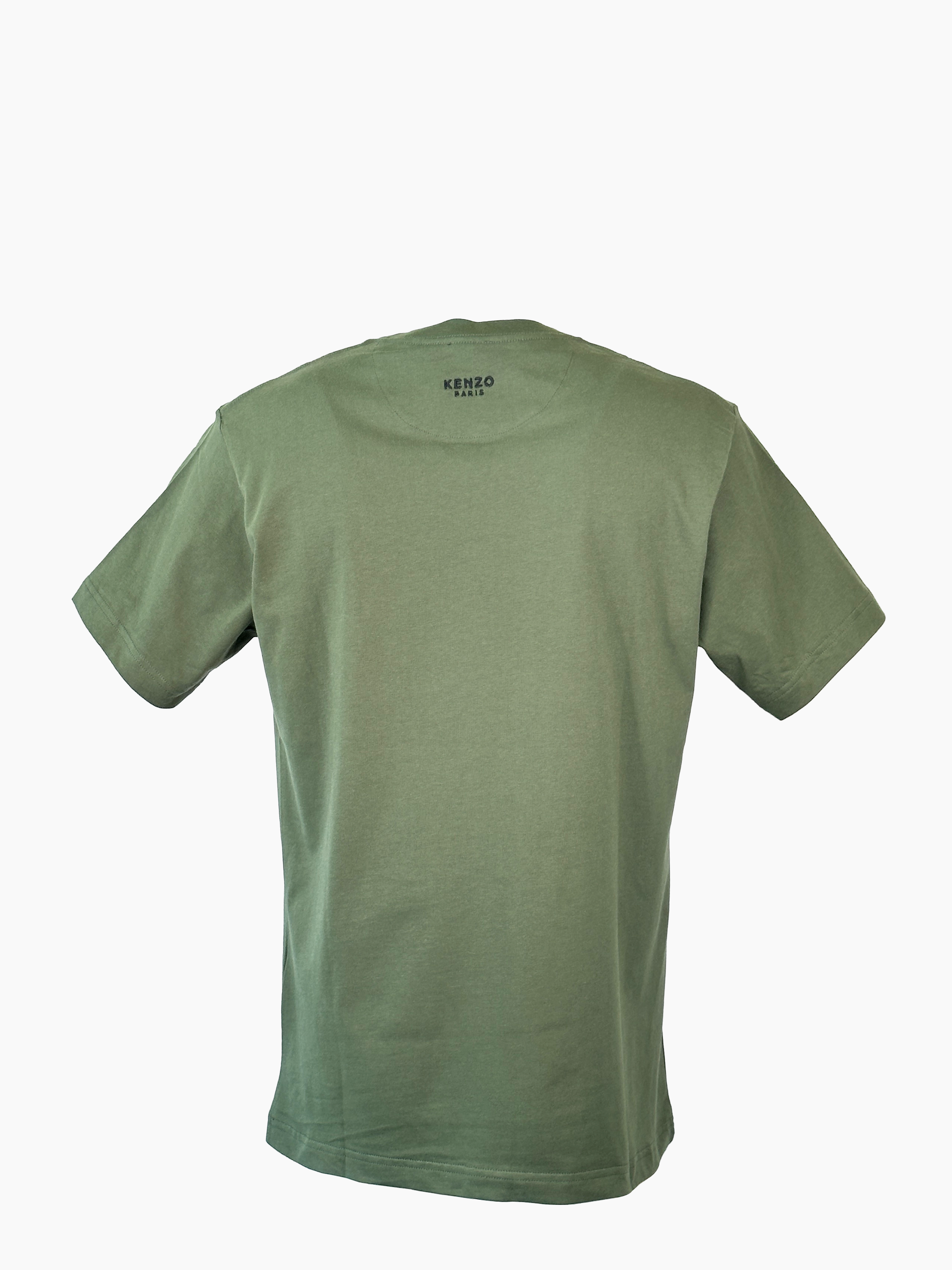Green short-sleeved cotton T-shirt featuring a clean, essential design with a contemporary feel. The classic crew neck and regular fit ensure comfort and freedom of movement for everyday wear. The small flower patch on the chest adds an iconic and recognizable detail, making this piece perfect for completing casual and streetwear looks with a touch of personality.