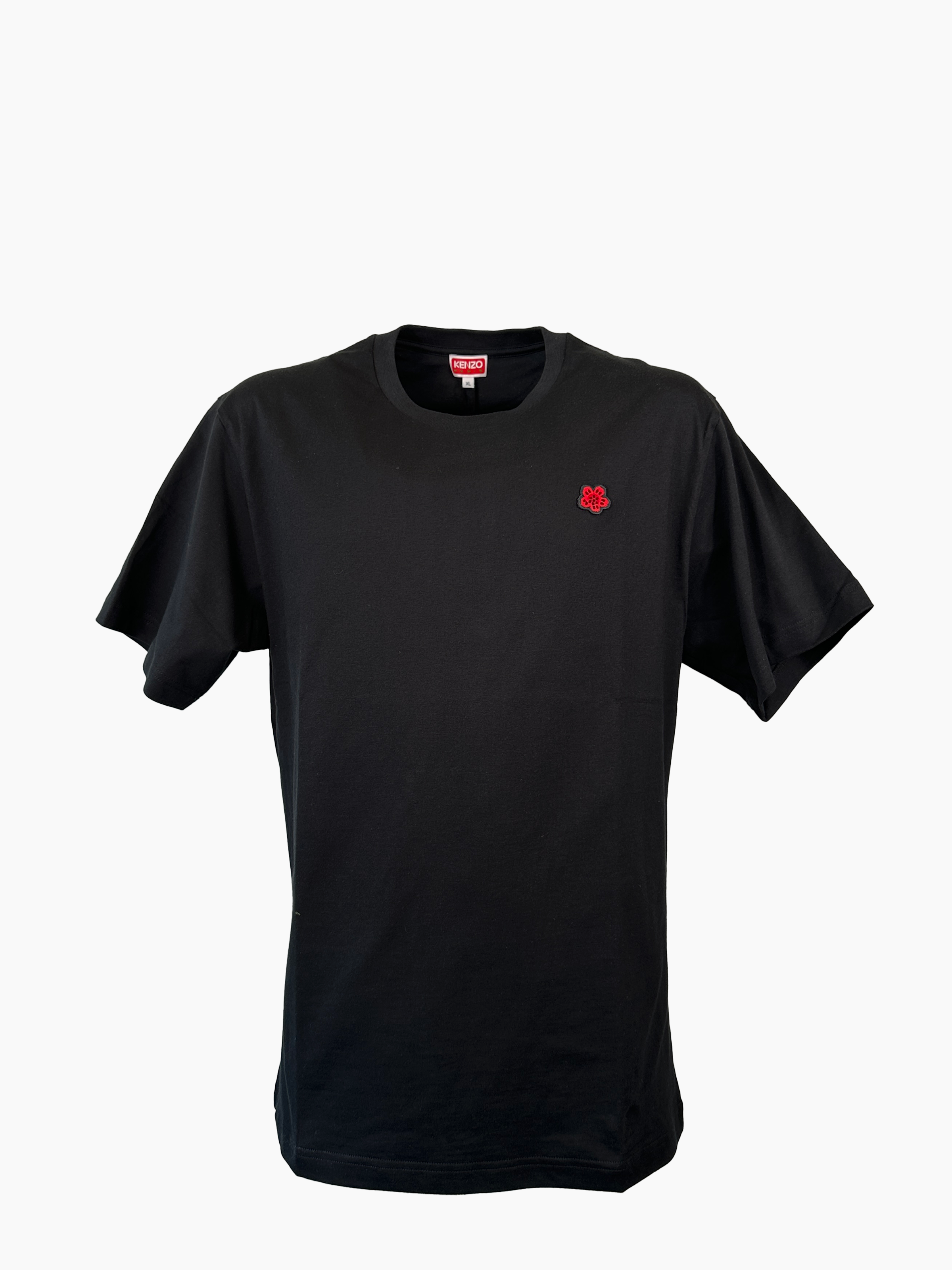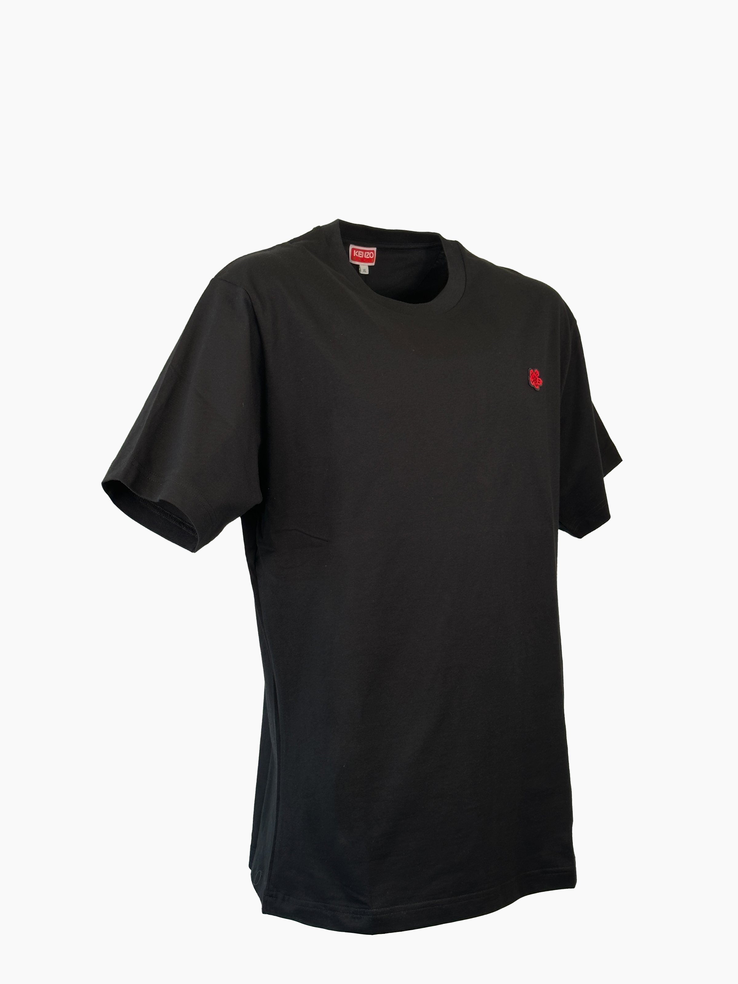 Black, short-sleeved cotton T-shirt featuring a clean, essential design that makes it a versatile piece for any casual occasion. The classic crew neck and regular fit ensure all-day comfort, while the red flower patch on the chest adds a distinctive and iconic detail that enhances the minimalist design. A basic piece reimagined with a contemporary twist, perfect for completing streetwear looks and everyday outfits.