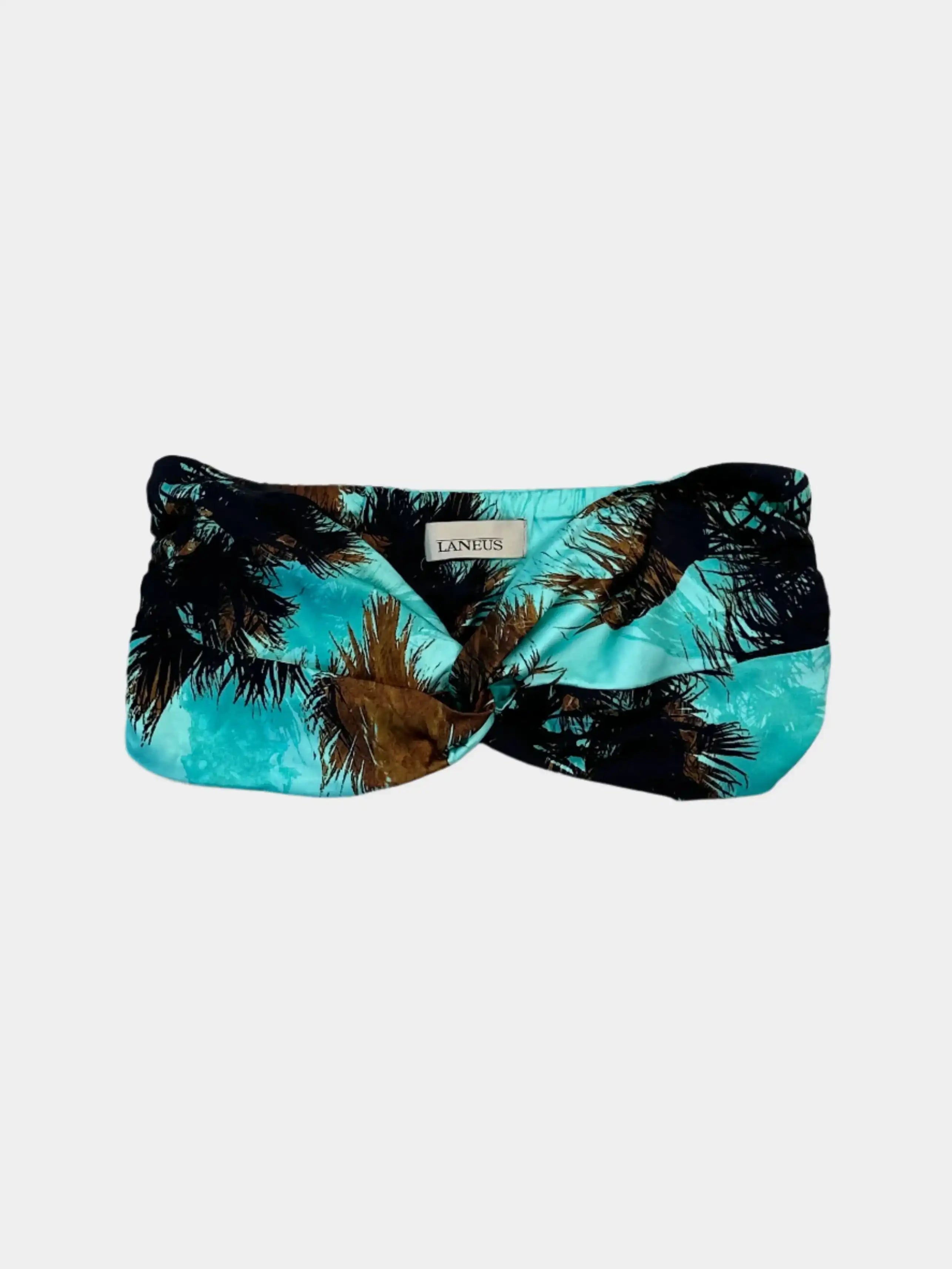 Laneus bandeau top with a vibrant tropical print. The strapless design is embellished with an elegant front plait, perfect for pairing with summer or beachwear. Crafted from stretch viscose for lightweight comfort and a snug fit.