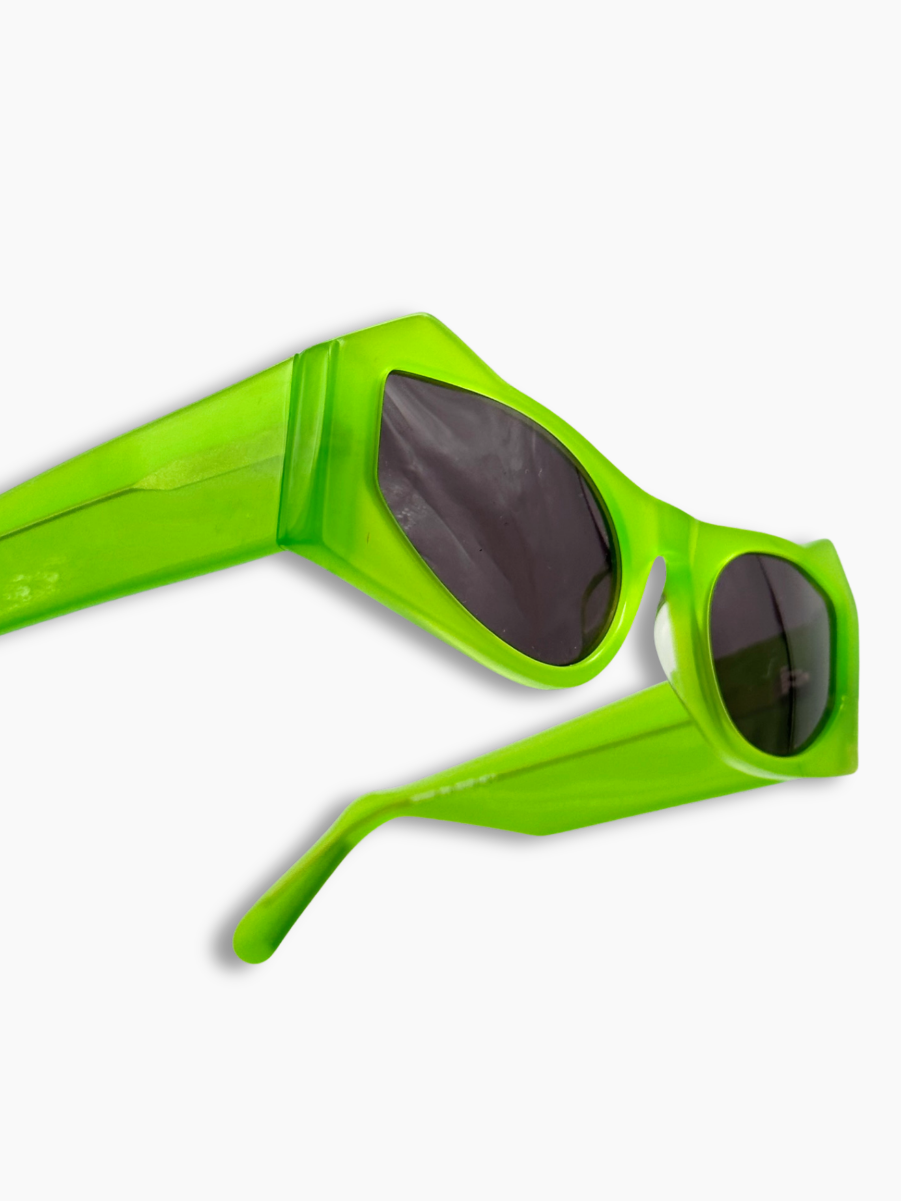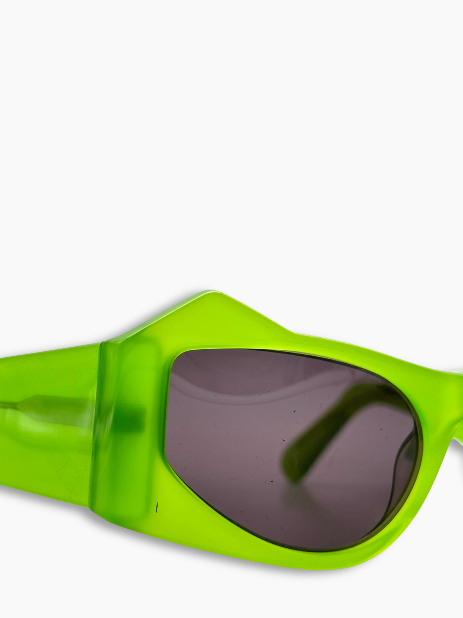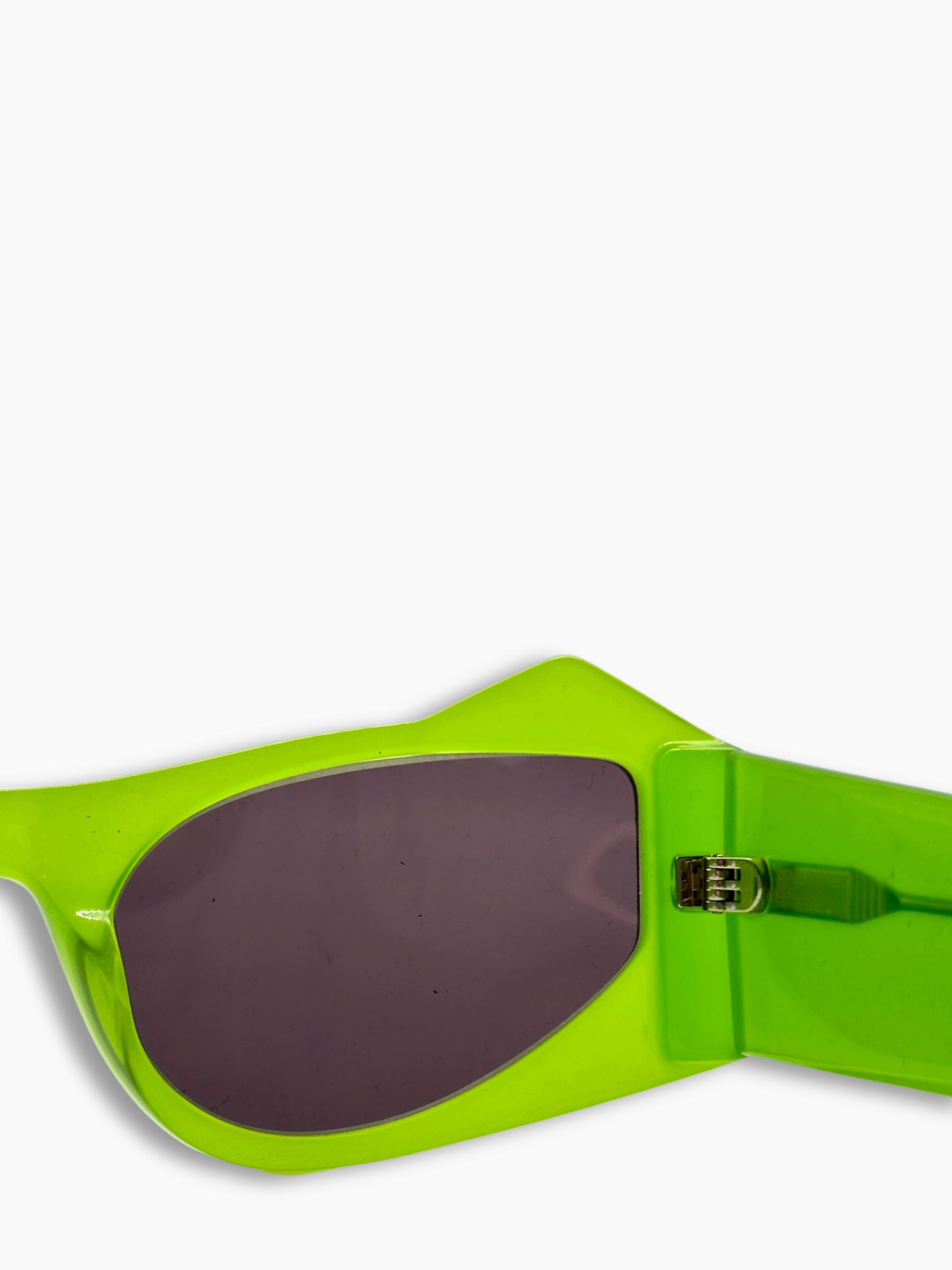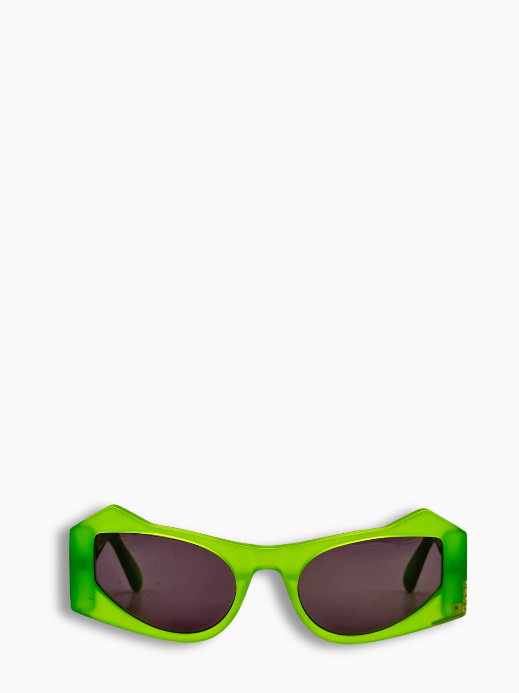 Occhiali da sole dal design moderno e super pop, caratterizzati da una montatura verde fluo opaca e lenti scure allungate. Un modello che cattura subito l’attenzione, perfetto per aggiungere un tocco audace e fashion ai look di tutti i giorni.