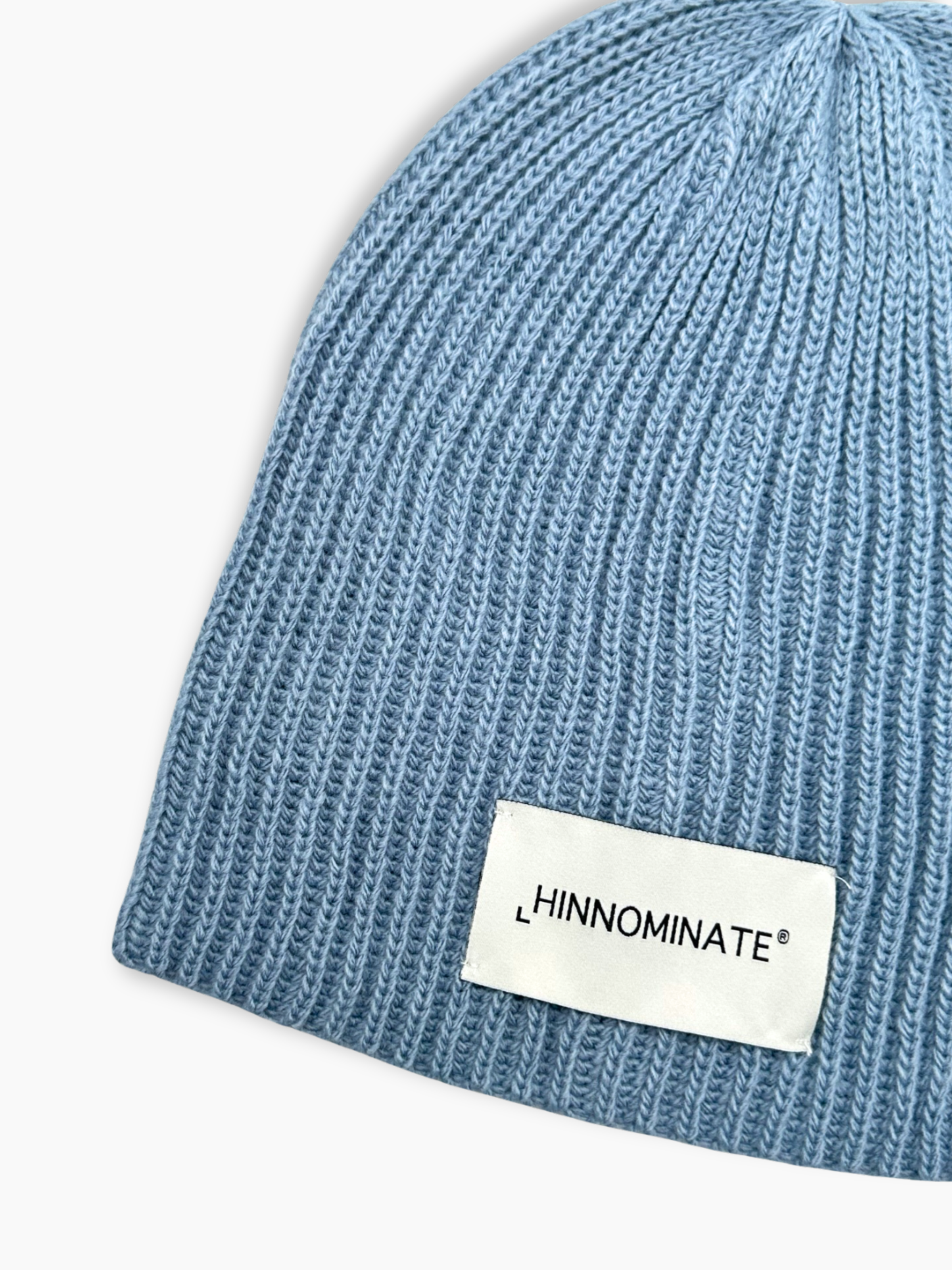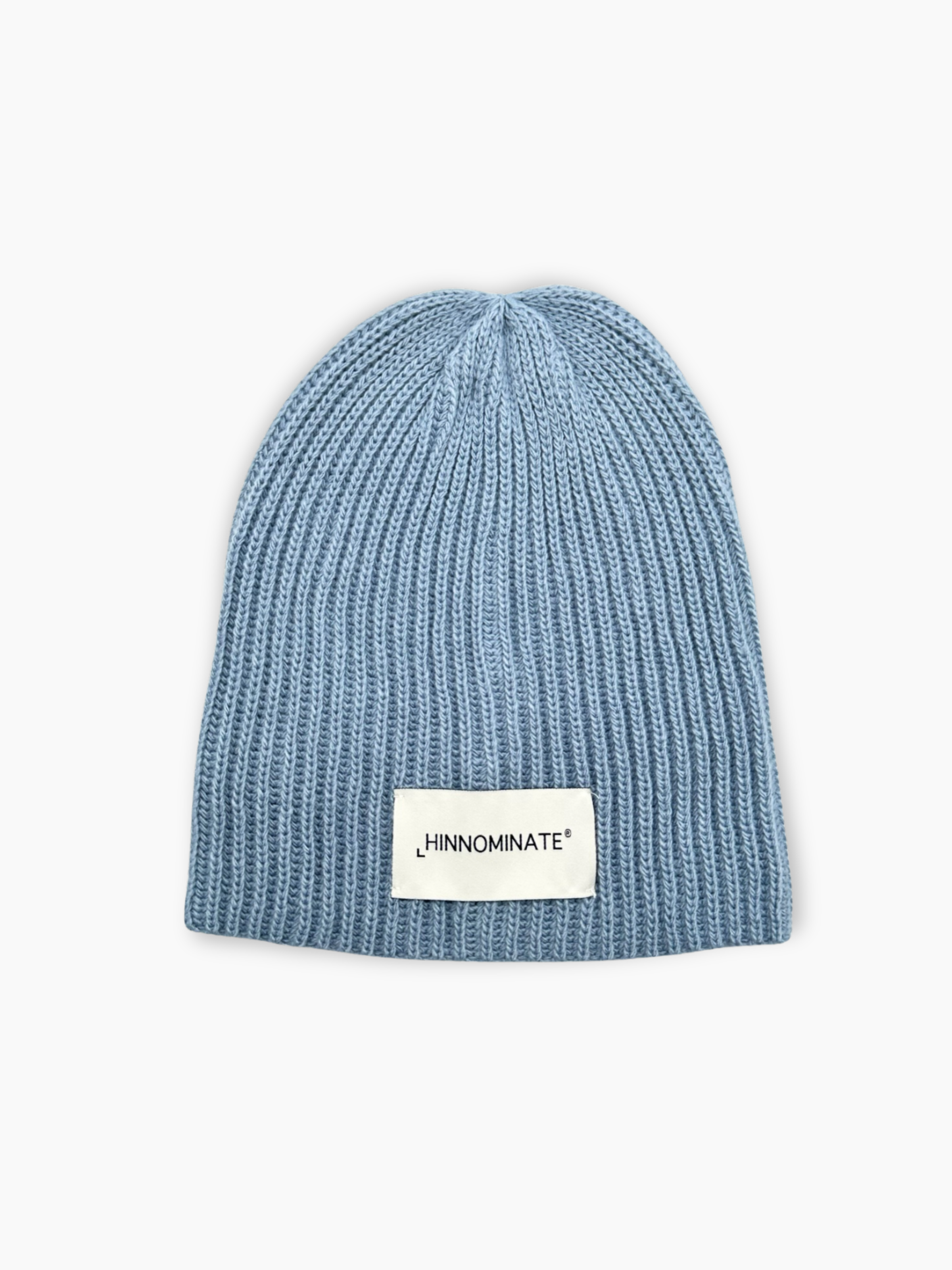 Crafted from soft, stretchy ribbed knit, this Hinnominate beanie comes in a refined shade of powder blue. The front logo detail defines its minimalist style, perfect for pairing with casual, contemporary looks.
