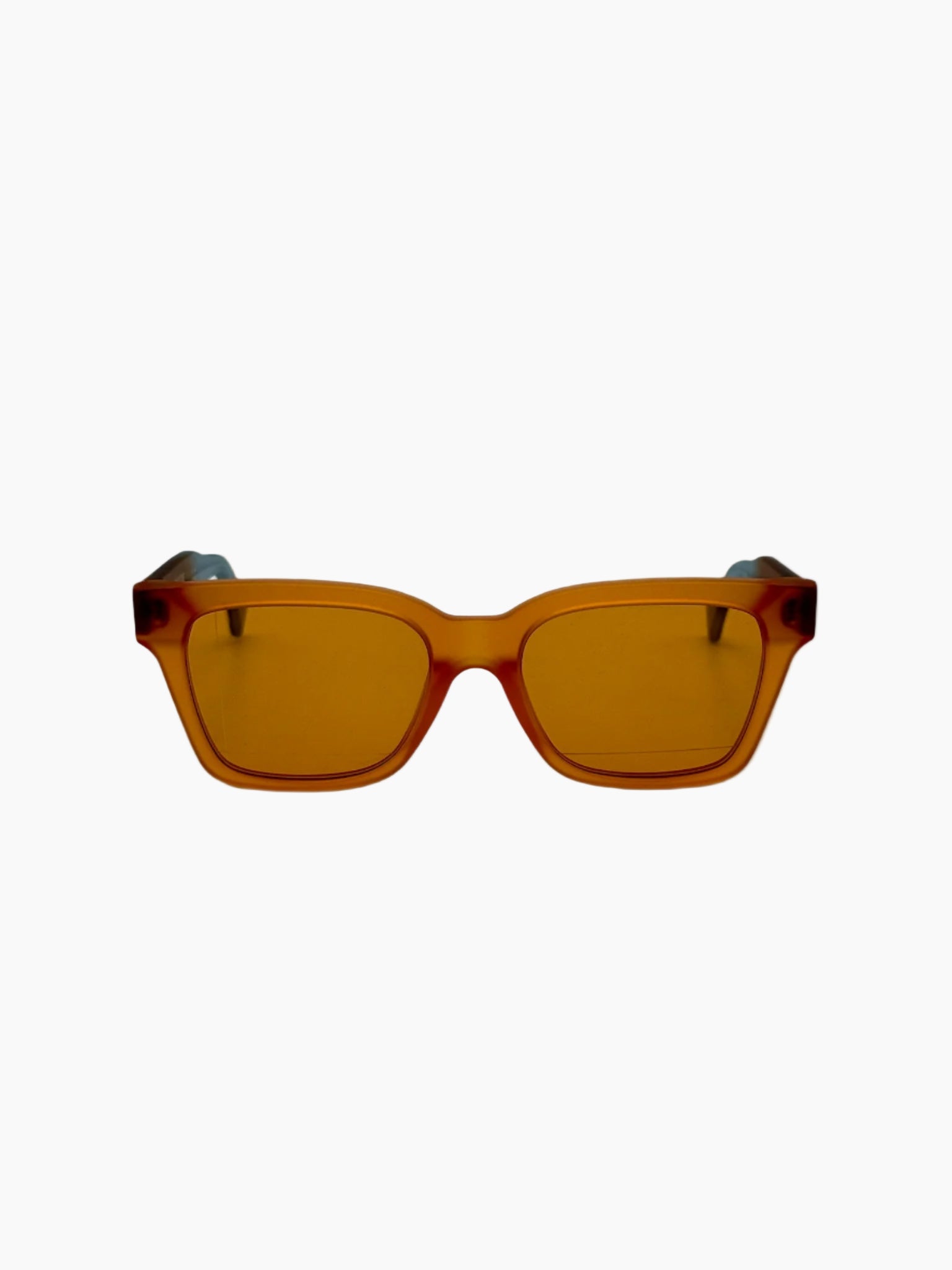 The orange Retrofuture sunglasses are a bold and contemporary style statement. The geometric design combines with an unexpected color palette: the intense orange of the frame pairs with thin transparent temples with a grid pattern for a striking visual effect. The tone-on-tone lenses ensure protection and a futuristic look. Perfect for those who want to stand out with an original and sophisticated accessory.