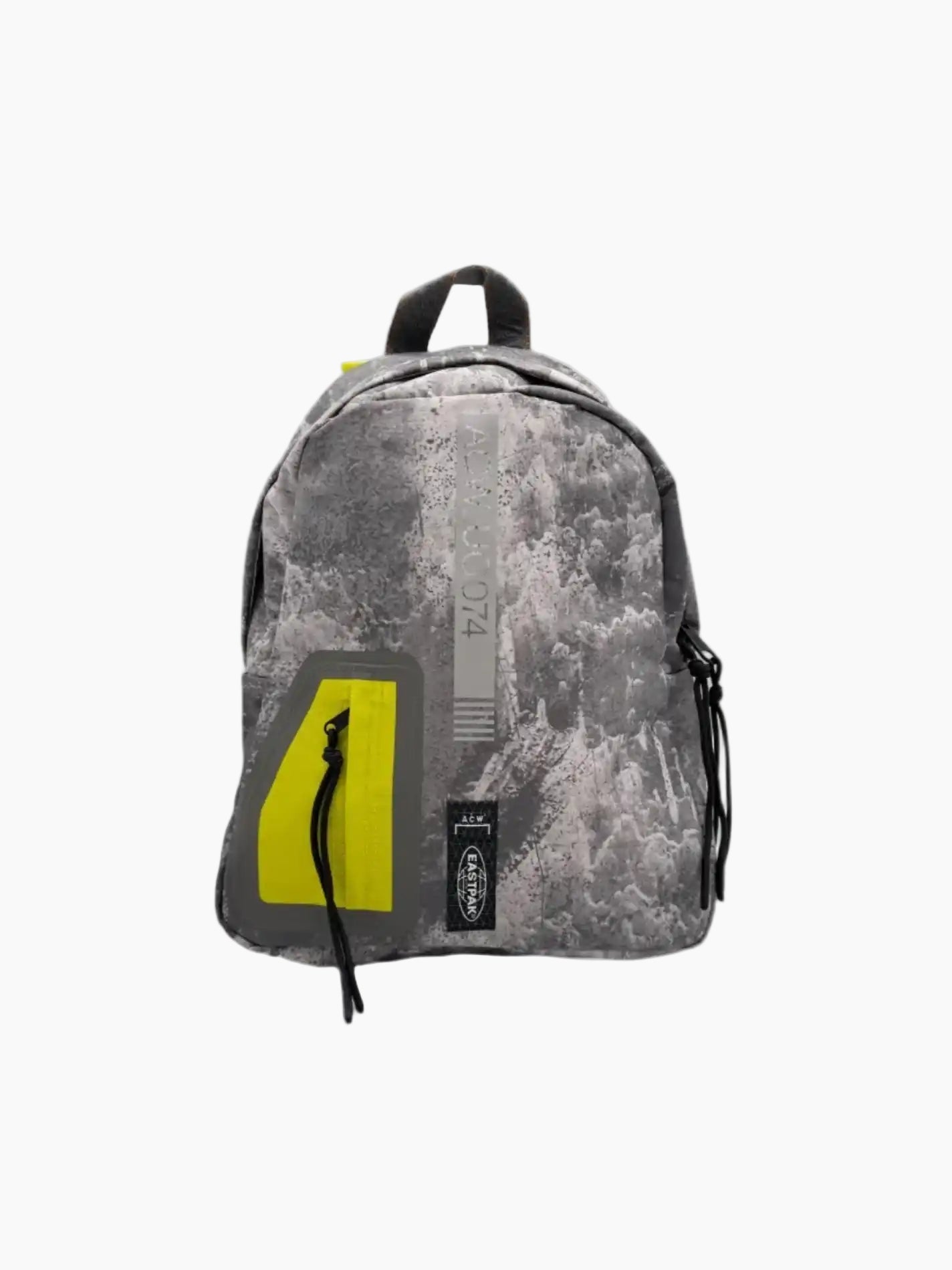 A collaboration between A-COLD-WALL* and Eastpak, this backpack combines technical aesthetics and urban functionality. Featuring an abstract stone-effect print in grey tones, it has bright yellow neon details on the front pocket and padded shoulder straps. The compact yet roomy design makes it ideal for the city or leisure, with a sturdy zip closure and top handle.