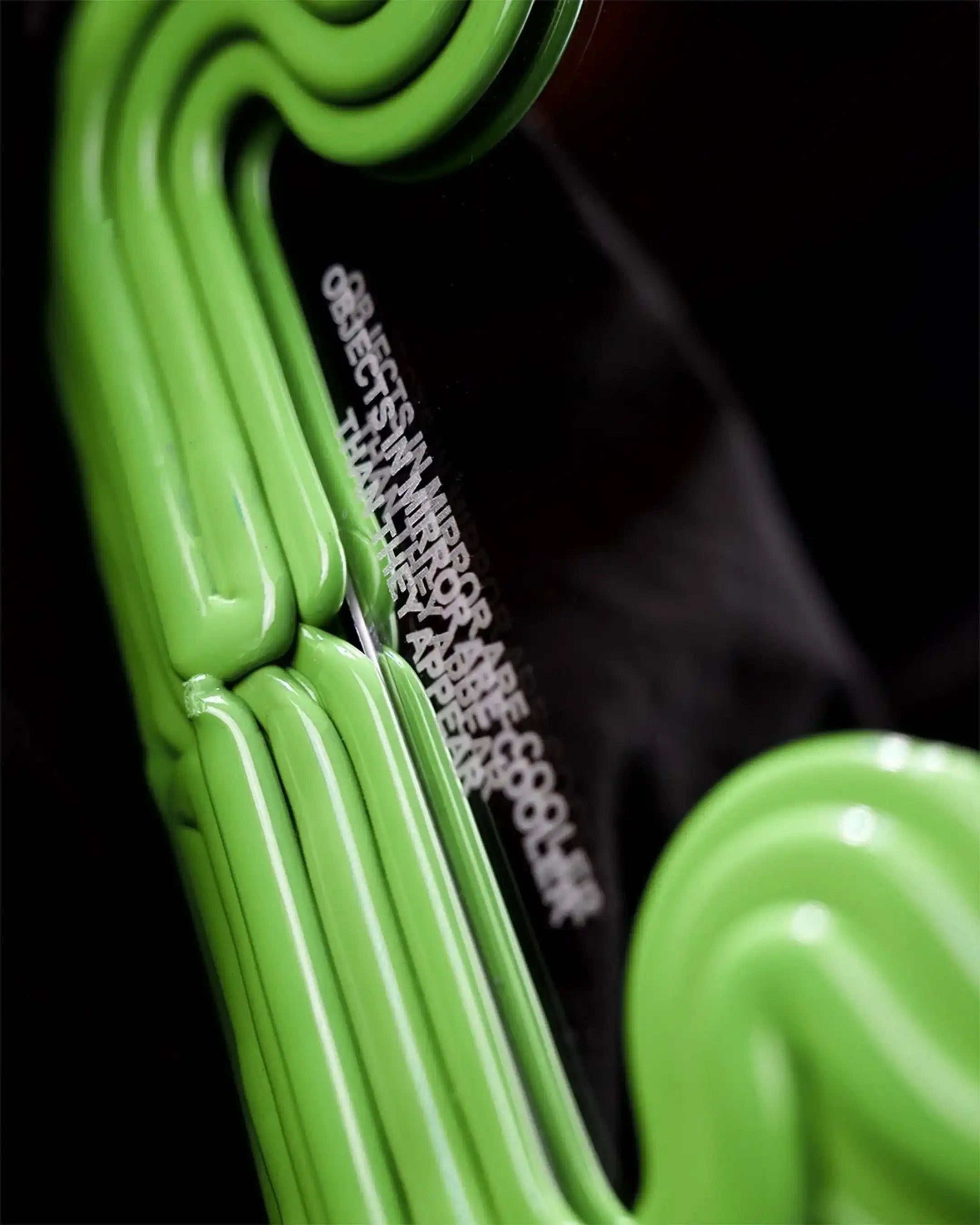 - Engraved writing on the front "The objects in the mirror are cooler than they appear."