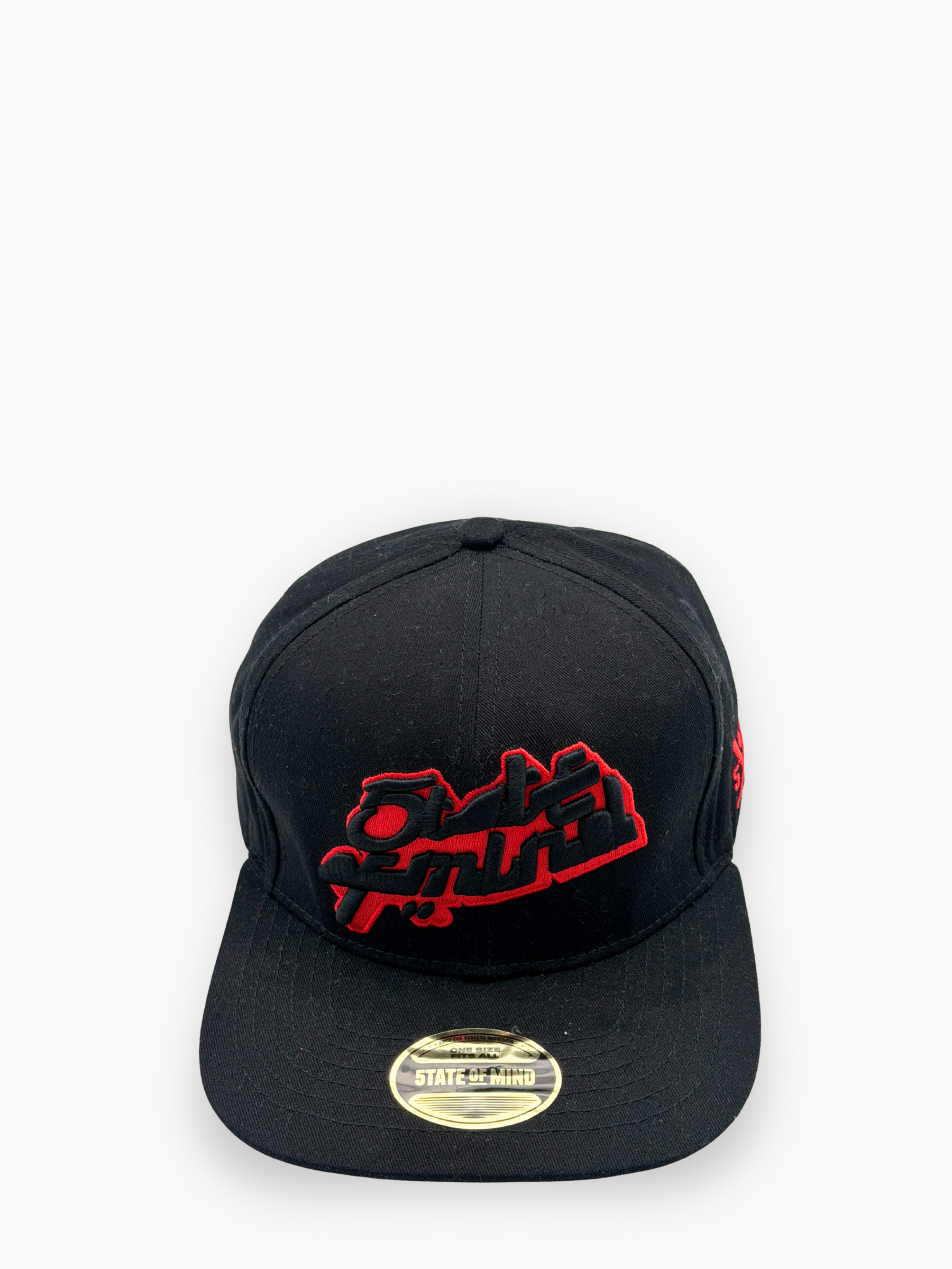 Black flat-brimmed cap featuring red 3D embroidery on the front. The bold, streetwear design adds personality to any casual outfit, while the rigid construction holds its shape.