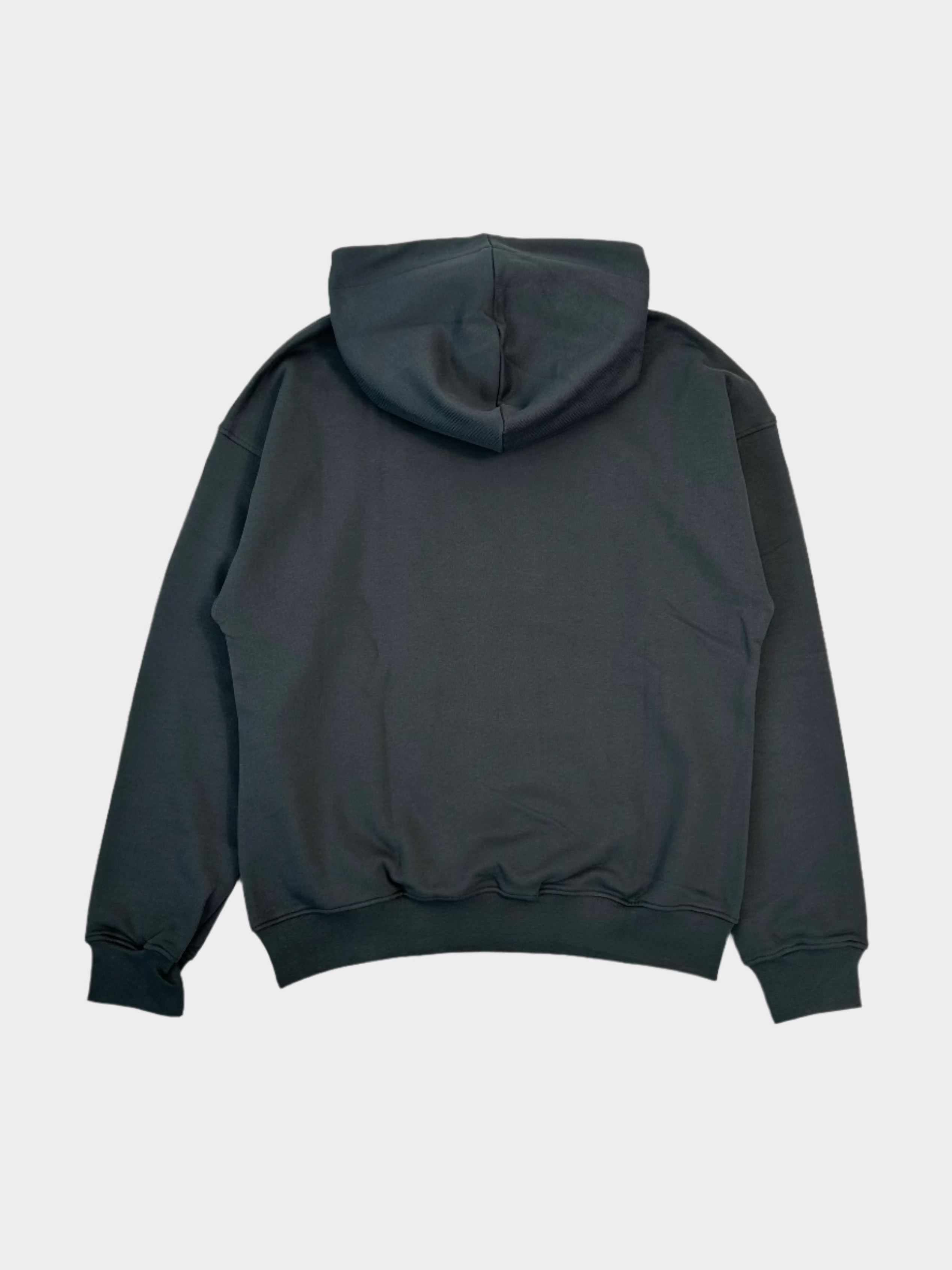 Men's Hinnominate sweatshirt in dark grey, made from 100% soft and comfortable cotton. Equipped with a hood, it features a rubberised tone-on-tone print on the chest for a distinctive but discreet touch. The kangaroo pocket, cuffs and elasticated waist complete a clean design with a relaxed fit, perfect for a casual and contemporary style.