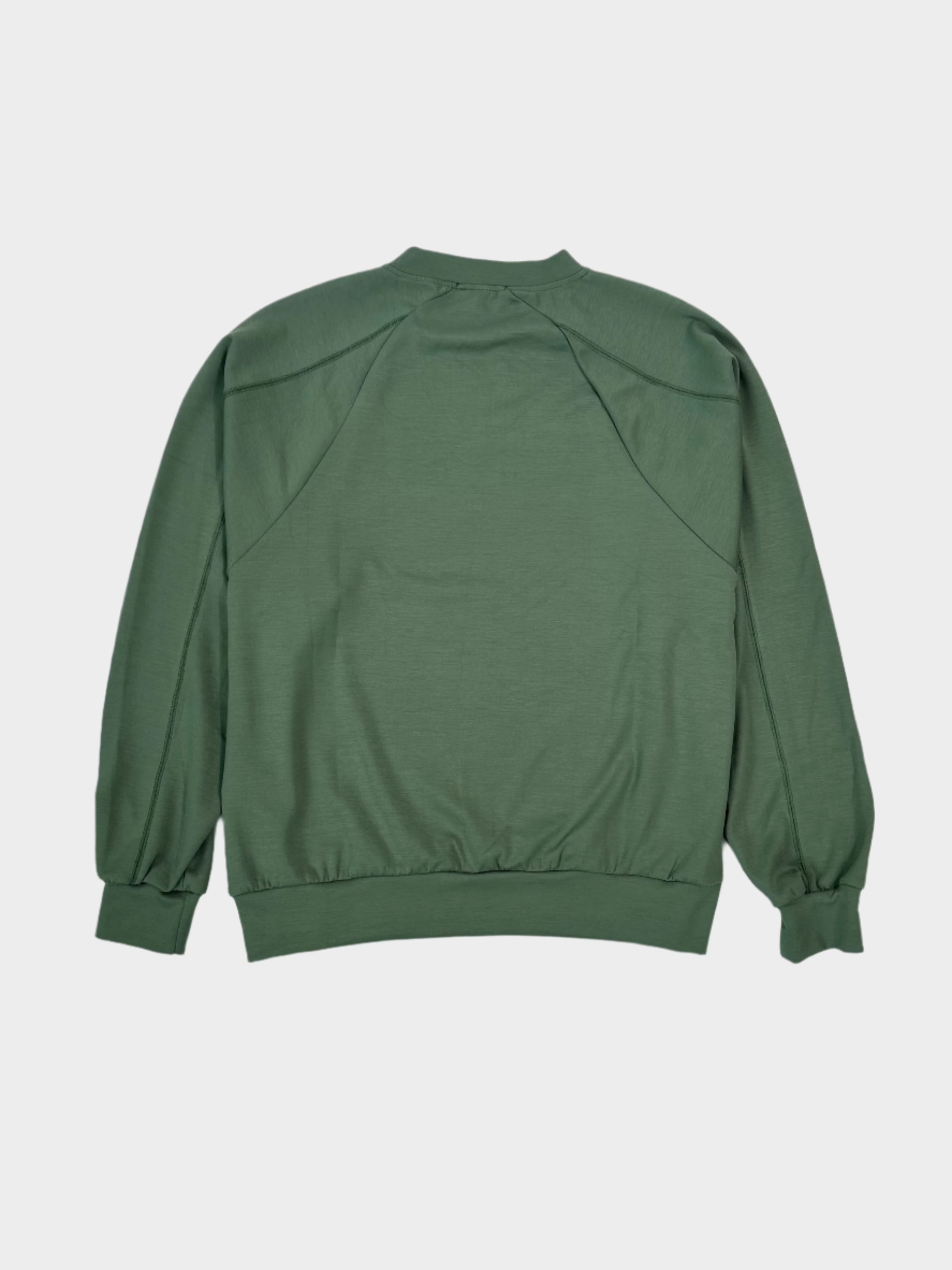 Crafted from an extremely soft and fluid modal fabric, this Hinnominate crewneck sweatshirt in sage is a basic piece revisited with distinctive details. The raglan sleeves and tone-on-tone print on the chest enhance its contemporary aesthetic. The comfortable fit makes it ideal for relaxed outfits with a refined taste.