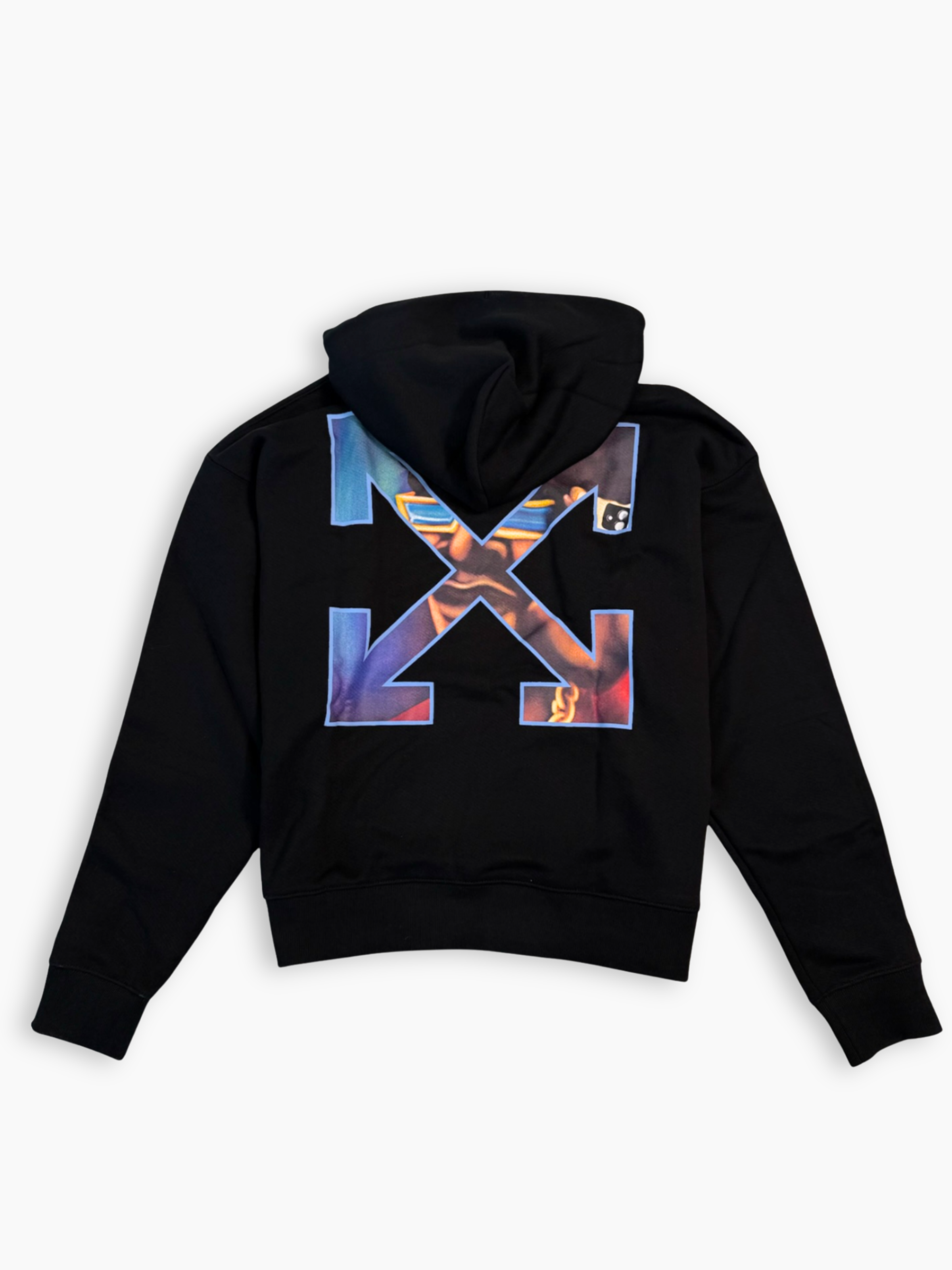 Felpa Off-White in cotone premium con cappuccio e stampa multicolore sul retro. Il design skate oversize e il logo frontale ricamato rendono questo capo un’icona dello streetwear contemporaneo. La grafica Barber Arrow aggiunge un tocco artistico e riconoscibile al look, perfetto per chi ama lo stile urbano con personalità.