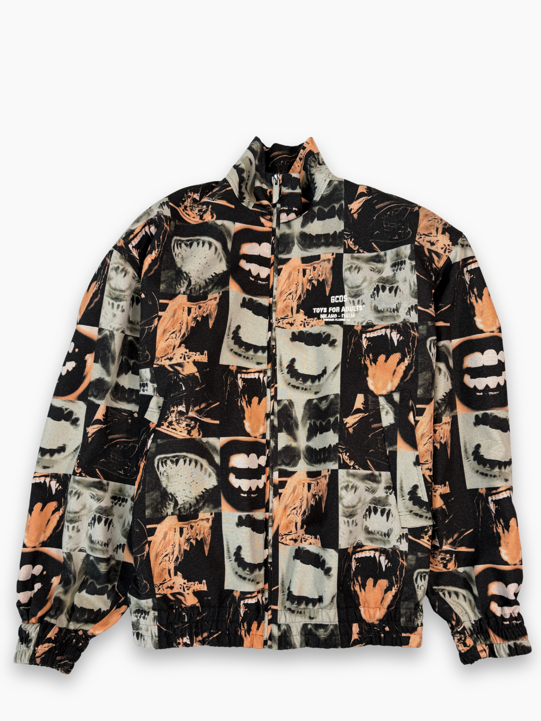 Giacca oversize con stampa all-over ispirata a bocche, denti e motivi pop-art, tipica dell’estetica audace GCDS. Il fit ampio e il tessuto leggero la rendono ideale per creare look streetwear dal carattere deciso. Dettagli come la zip frontale, il collo alto e le tasche laterali completano un capo perfetto per distinguersi.