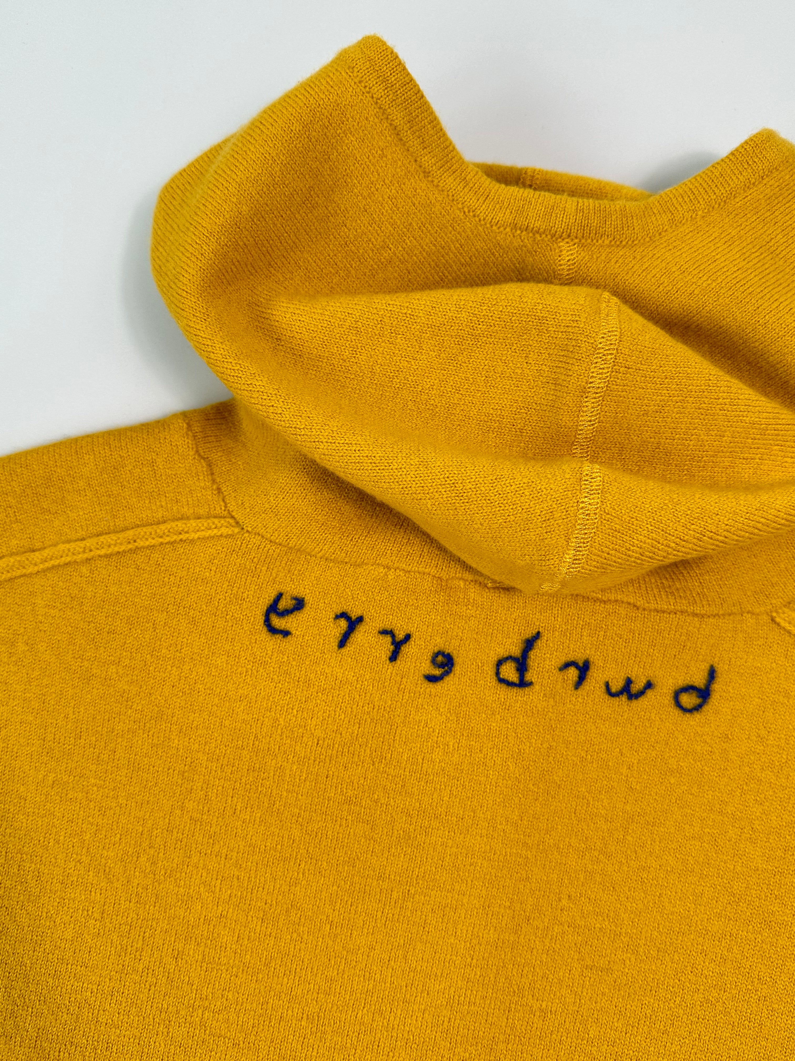 This Burberry hooded sweater stands out for its vibrant yellow color and essential design enriched by a contrasting embroidery on the back. Made of lightweight knit, it features a half front zip, ribbed cuffs and hem. A refined casual piece, ideal for dynamic and modern looks.