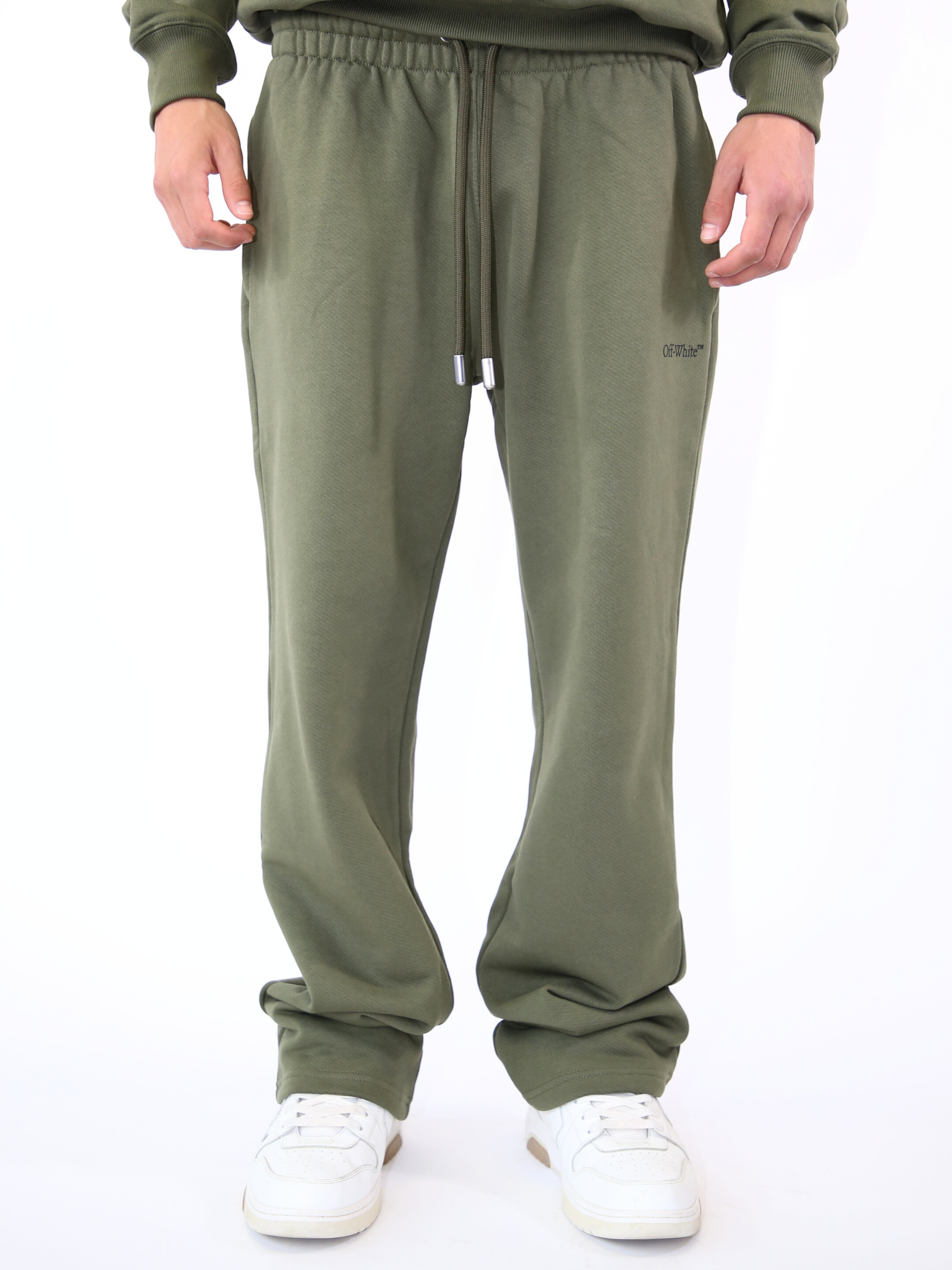 Moss green cotton trousers by Off-White™, featuring a subtle front logo and black arrows printed on the back. With a relaxed and contemporary style, they're an essential for anyone seeking a casual street look with attention to detail and comfortable everyday wear.