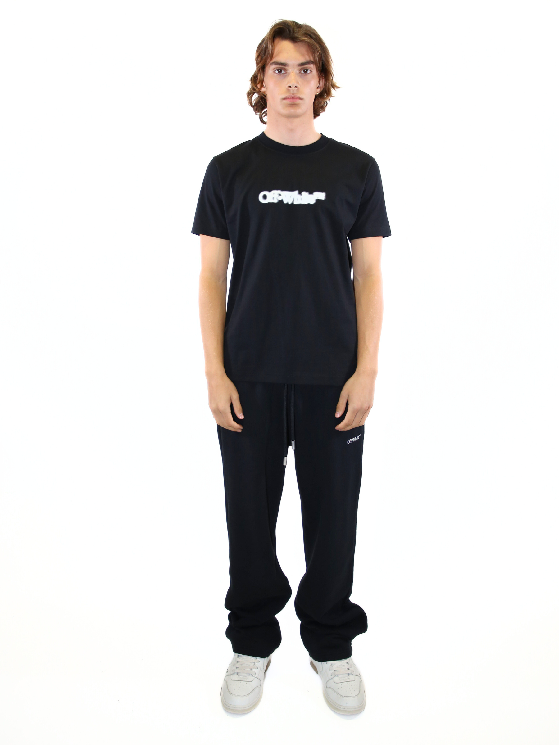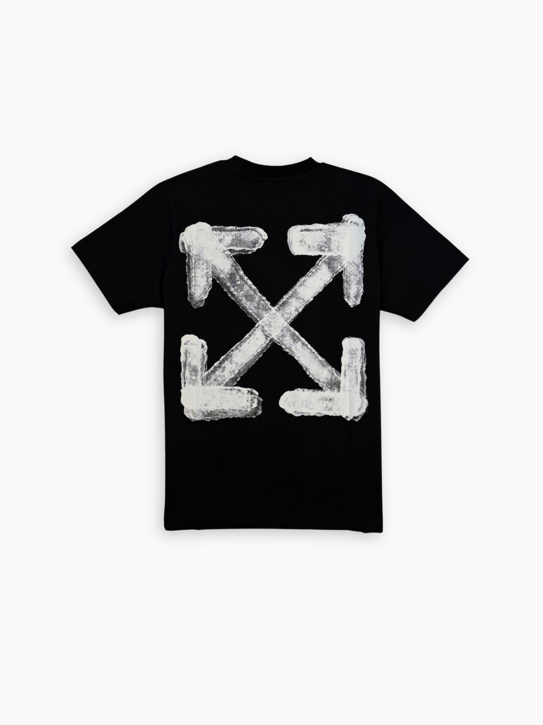 Black cotton jersey T-shirt with Off-White logo print on the front and iconic white "Spray Arrow" graphic on the back. An iconic piece with a contemporary design, perfect for completing street and urban looks. The slim fit and soft cotton fabric ensure comfort and style for any occasion.