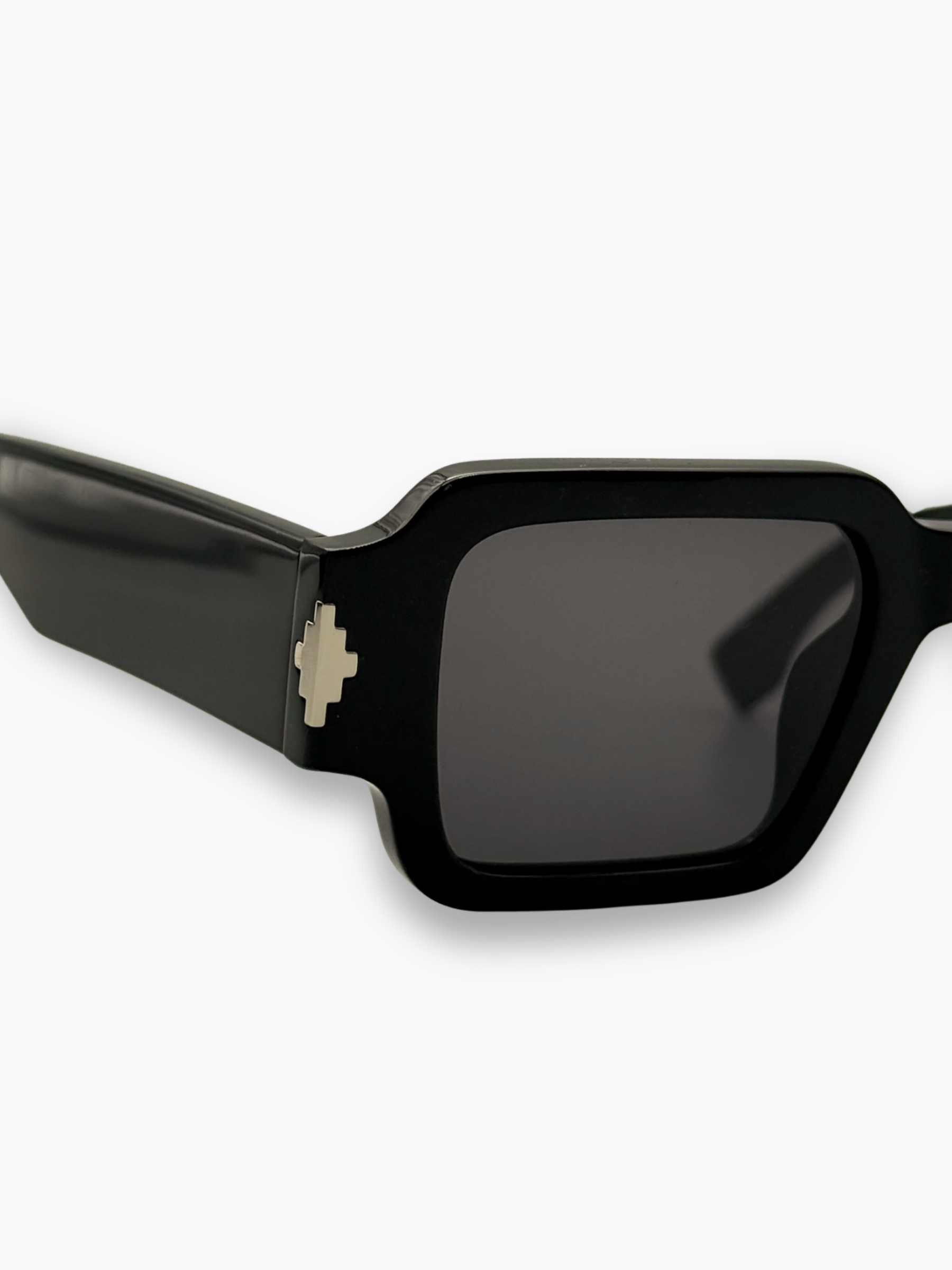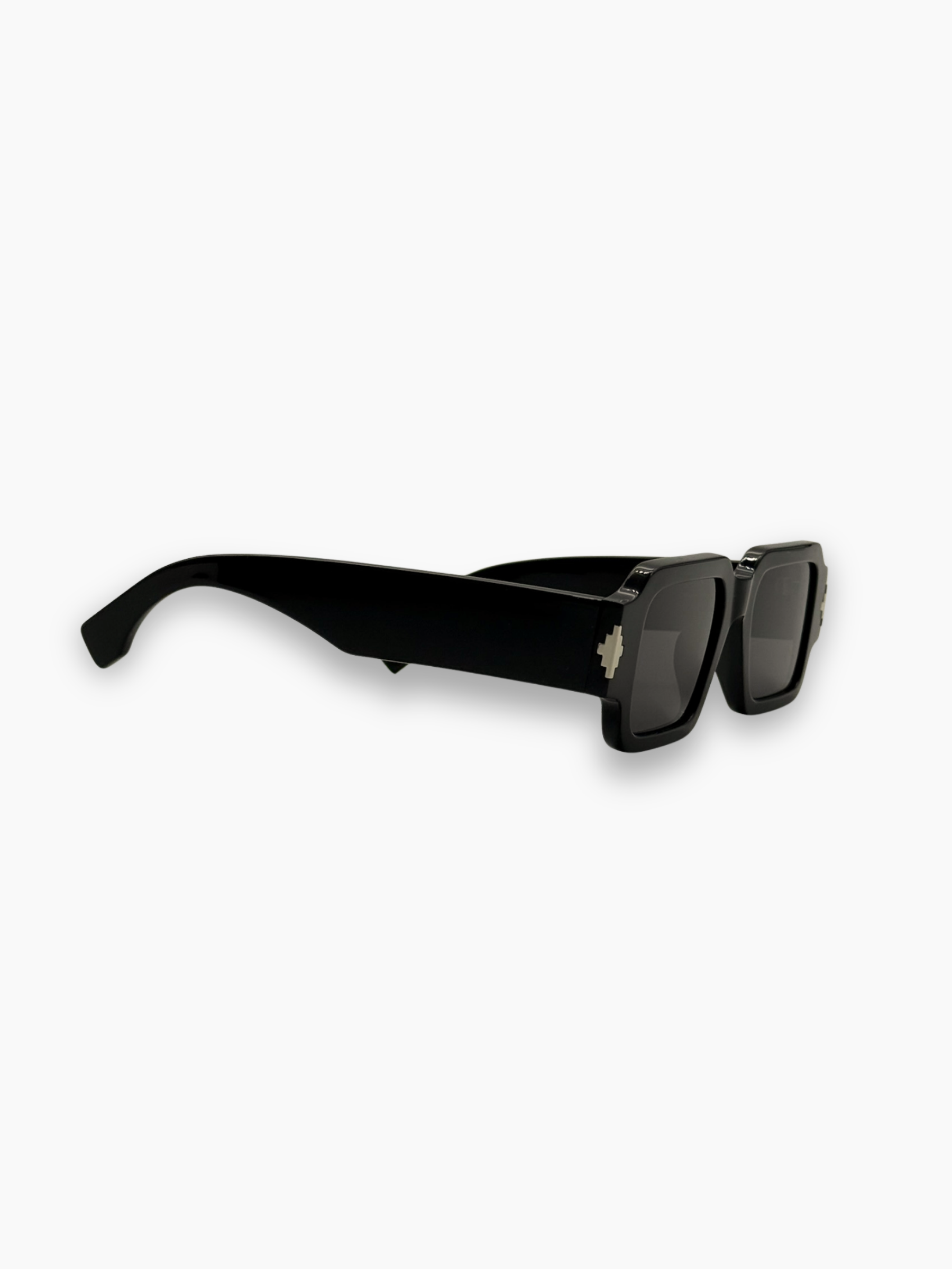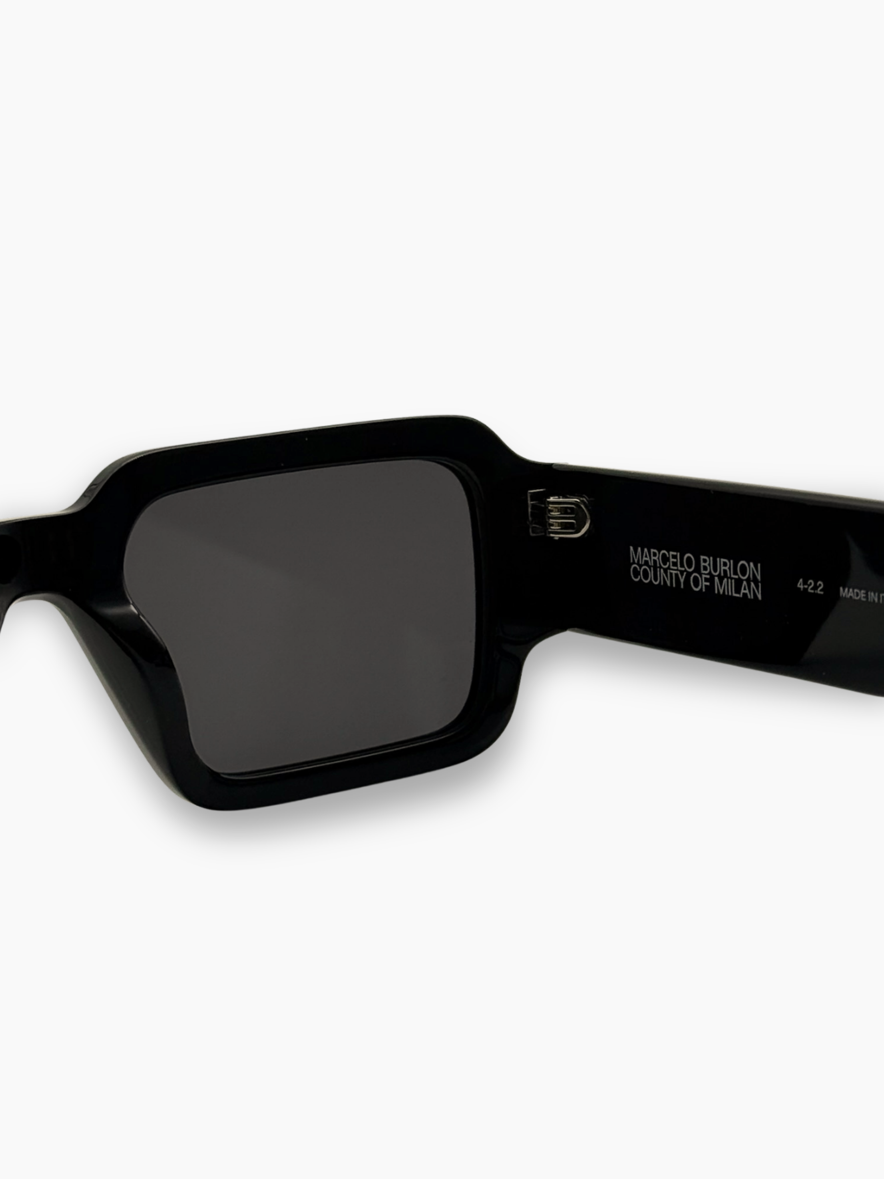 Occhiali da sole dal design deciso con montatura spessa in acetato nero e lenti grigio scuro. Il modello Maiten di Marcelo Burlon County of Milan fonde linee geometriche e dettagli minimal per uno stile contemporaneo e versatile.