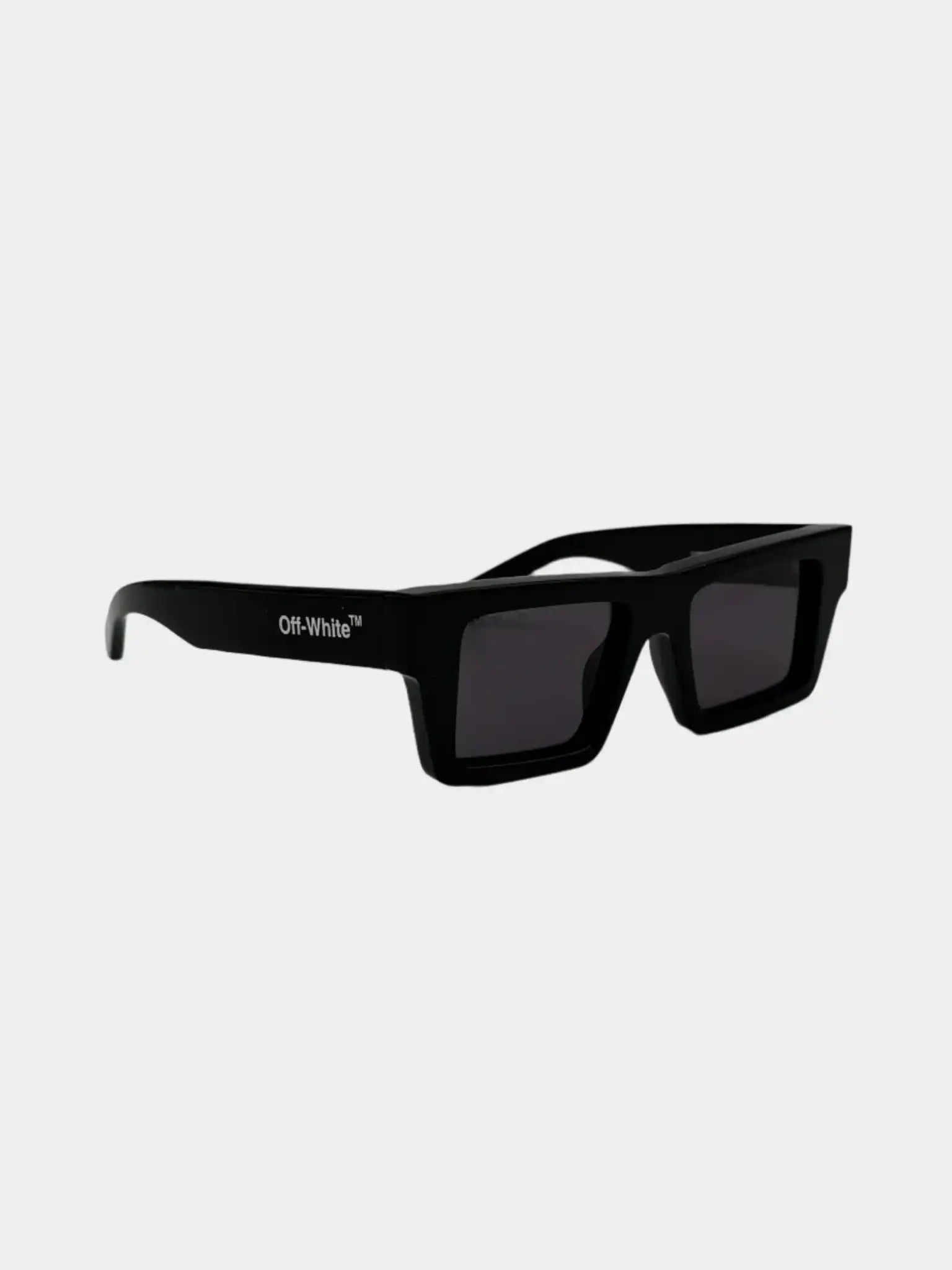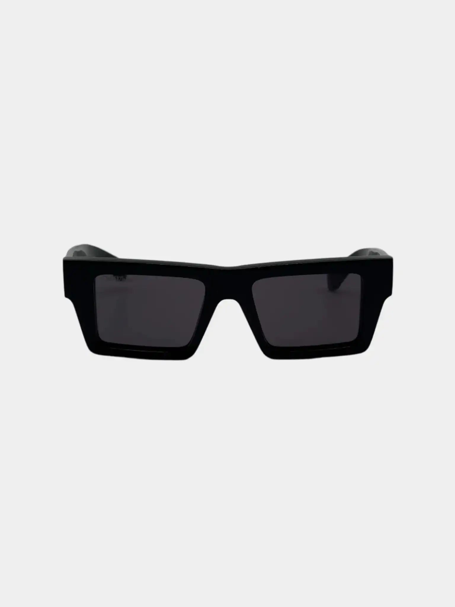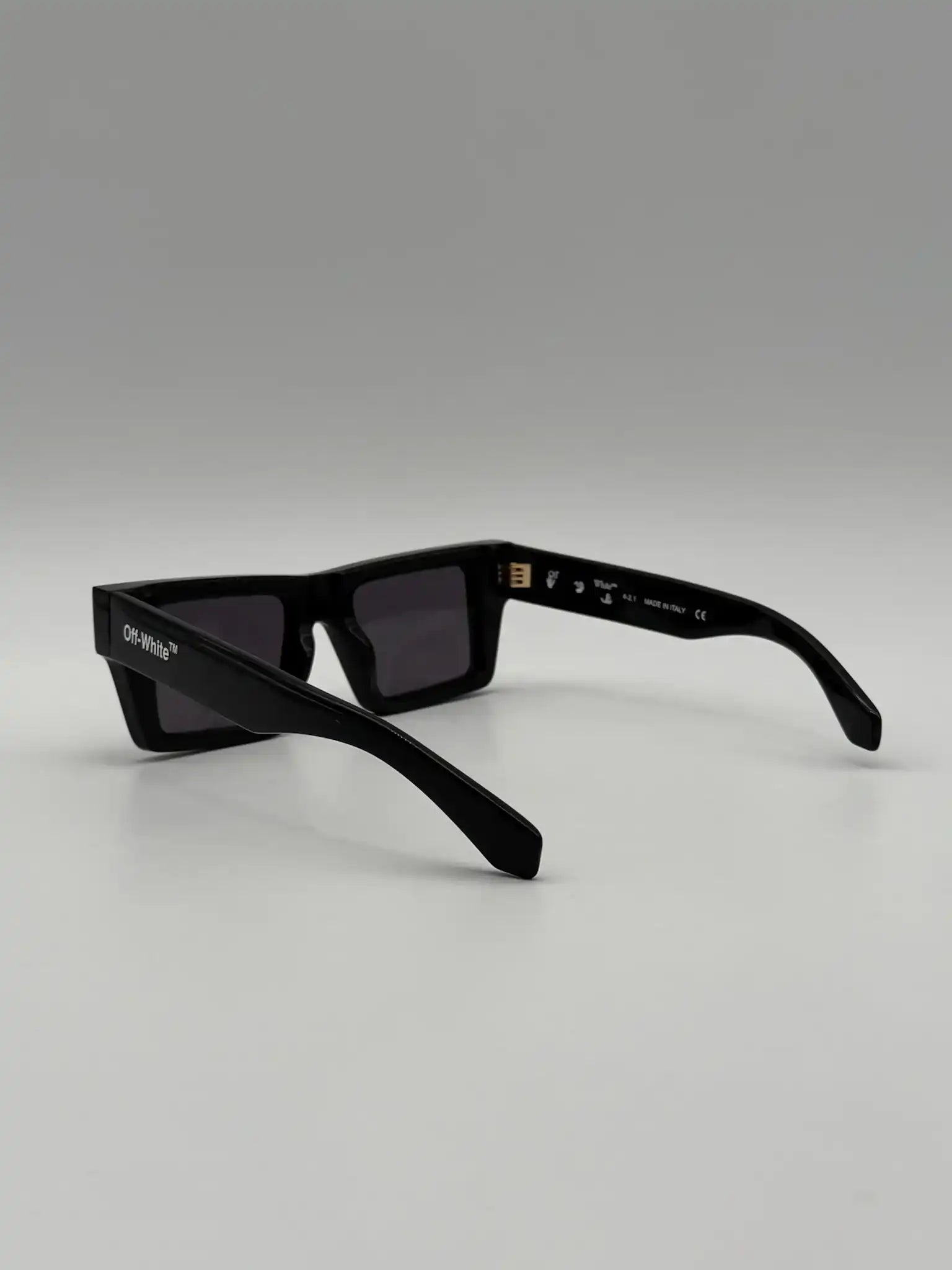 Off-White Nassau unisex sunglasses with a bold and contemporary design. Crafted from shiny black acetate, they feature a rectangular and angular silhouette, with the Off-White logo engraved on the temple. The dark grey lenses ensure UV protection and complete a distinctive and urban look.