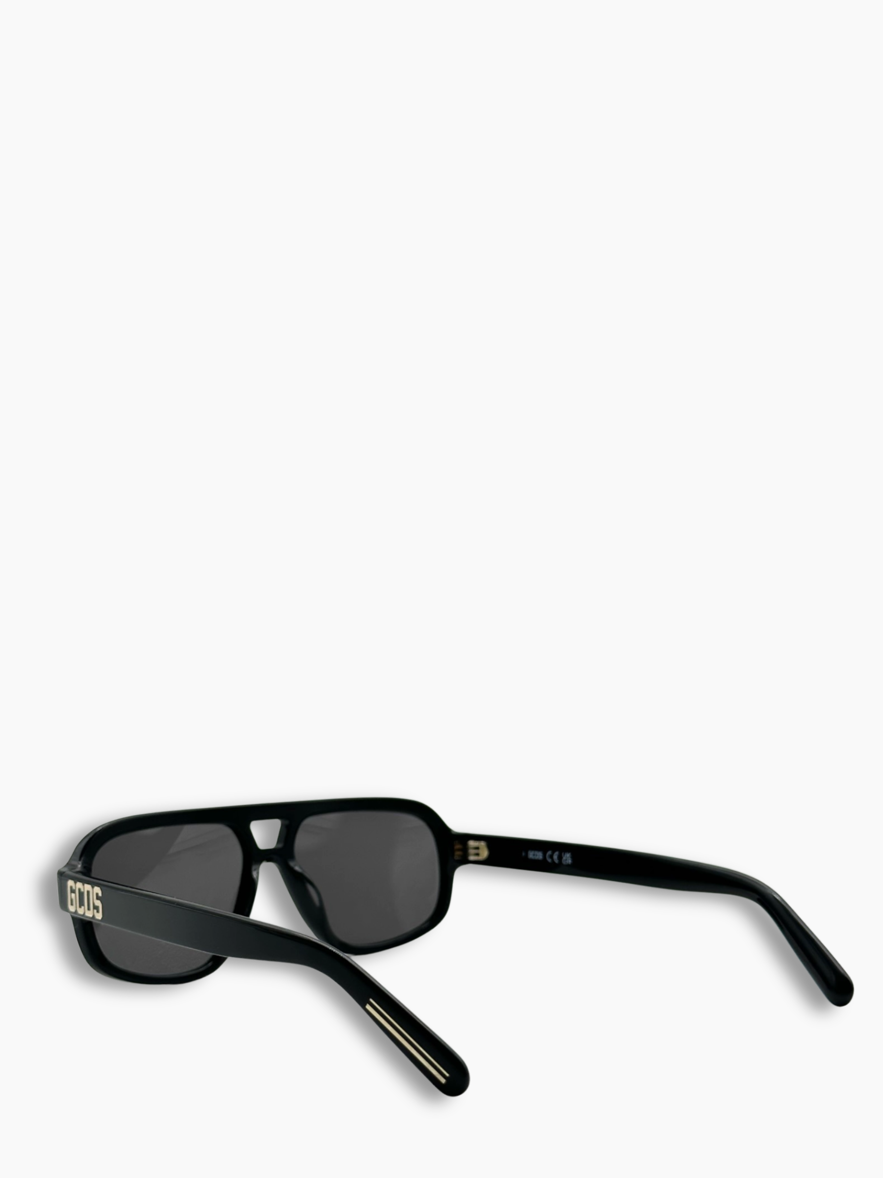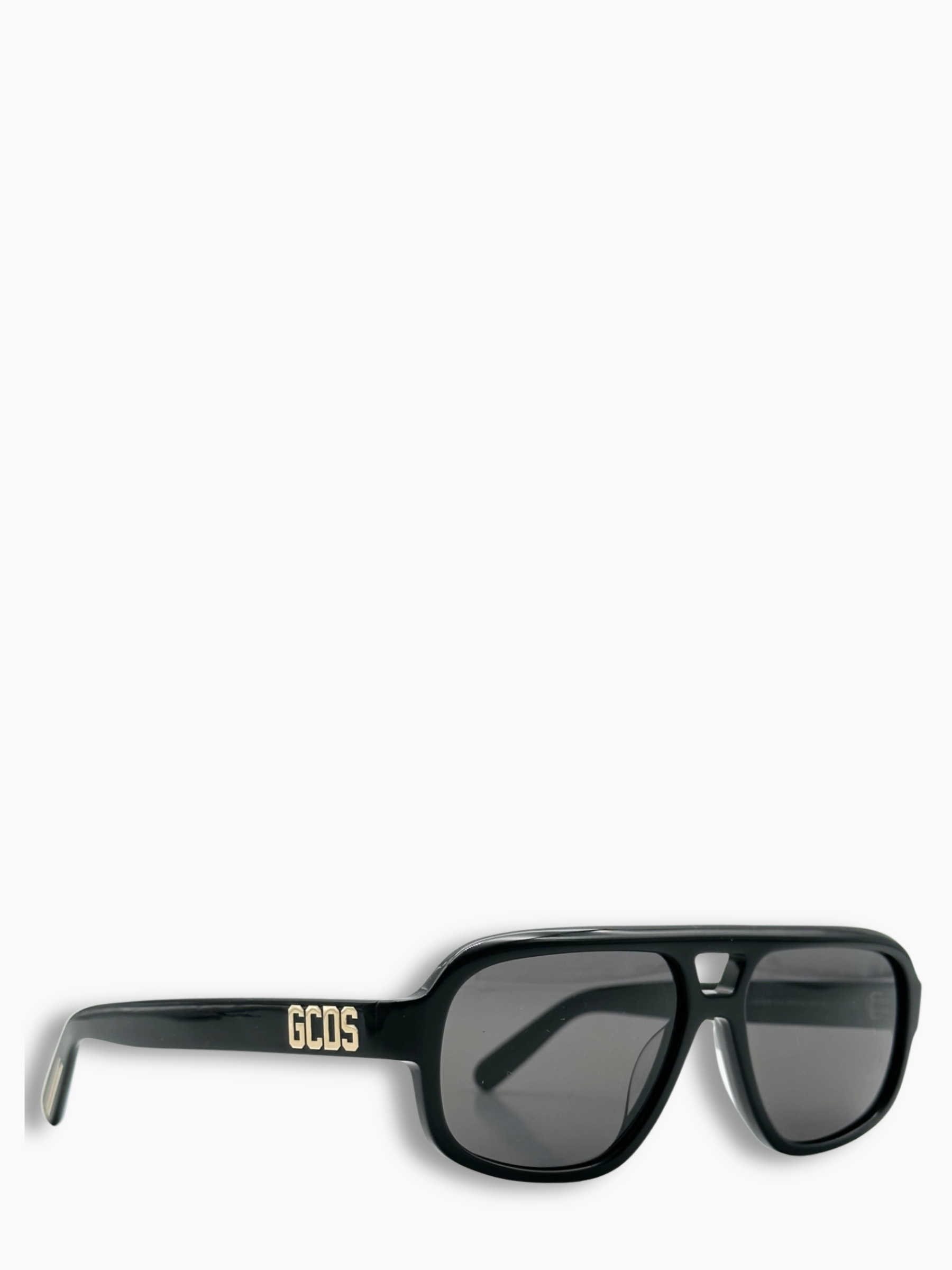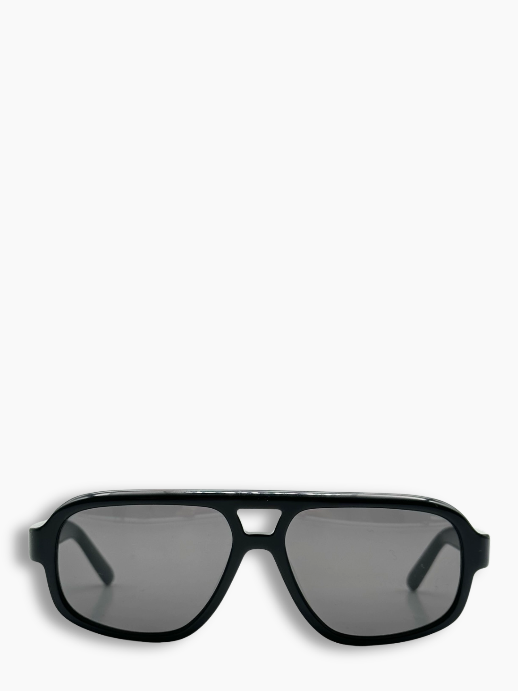 Occhiali neri dallo stile aviator, con lenti grigie e montatura spessa dal mood sportivo e contemporaneo. Un modello versatile, ideale per completare look casual e street.