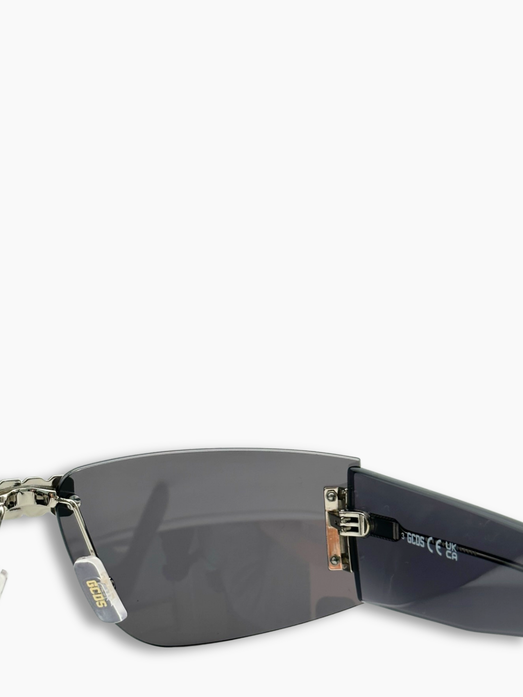 Occhiali da sole dallo stile deciso e futuristico, caratterizzati da un’unica lente scura rimless e dal ponte impreziosito dal logo GCDS in cristalli. Un modello iconico, brillante e d’impatto, perfetto per chi vuole un look strong e ultra-fashion.
