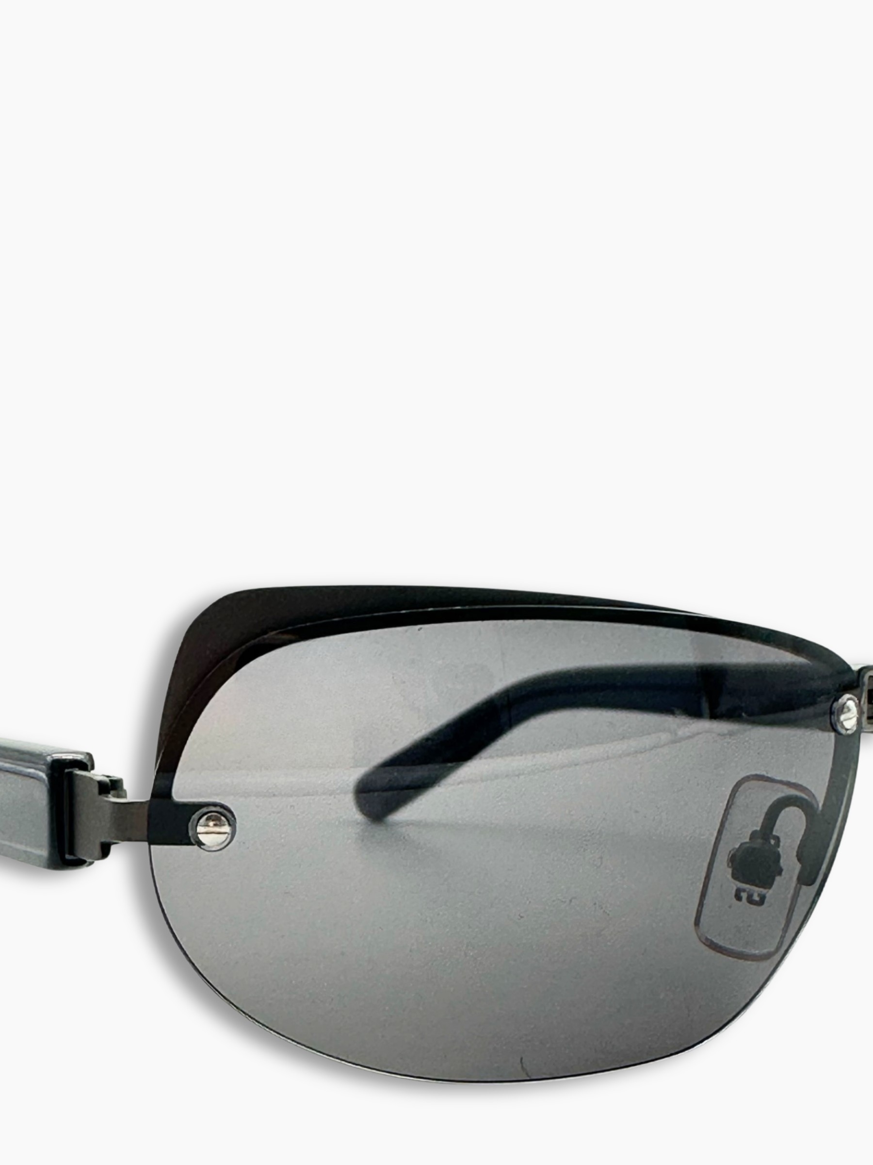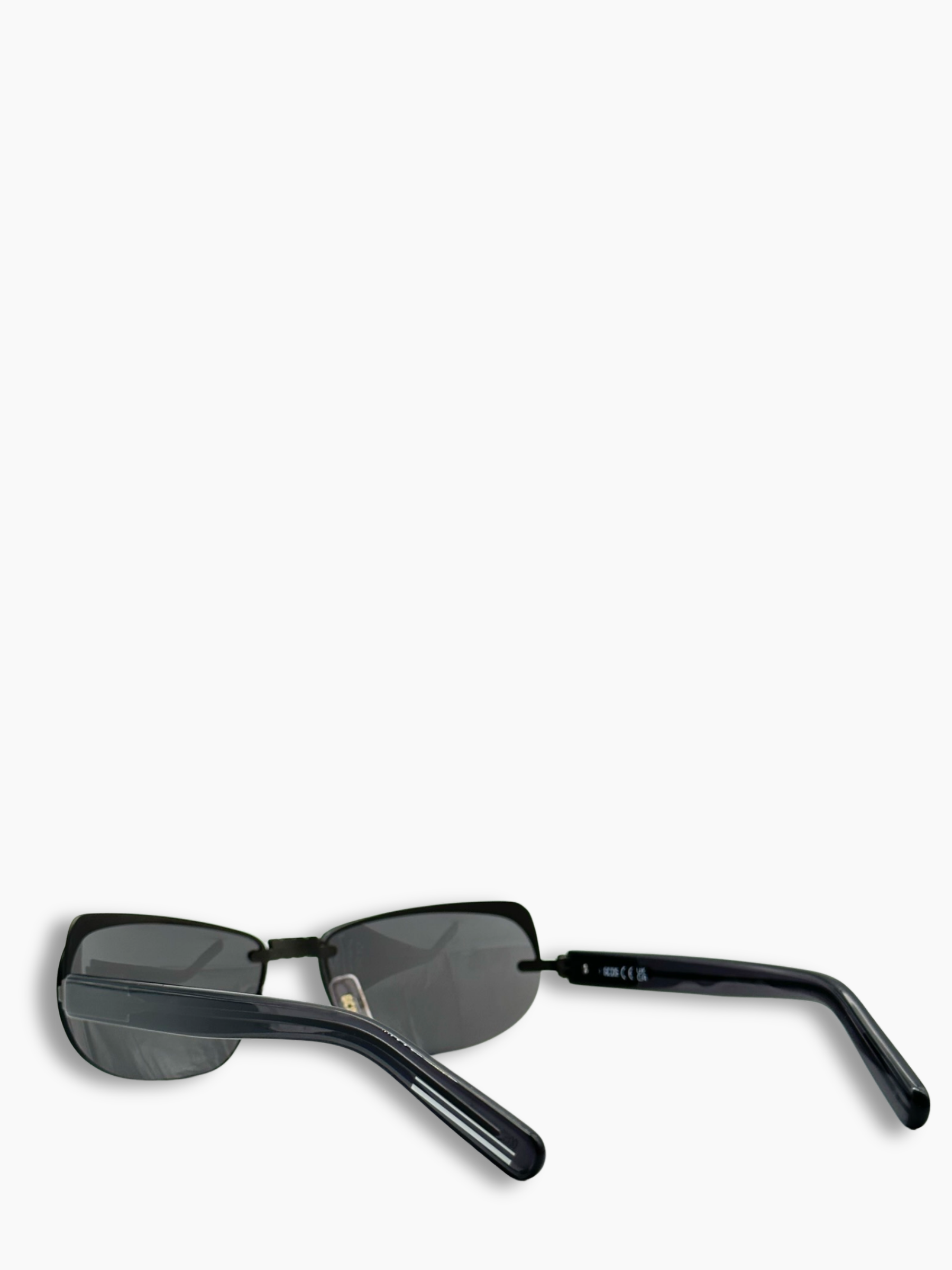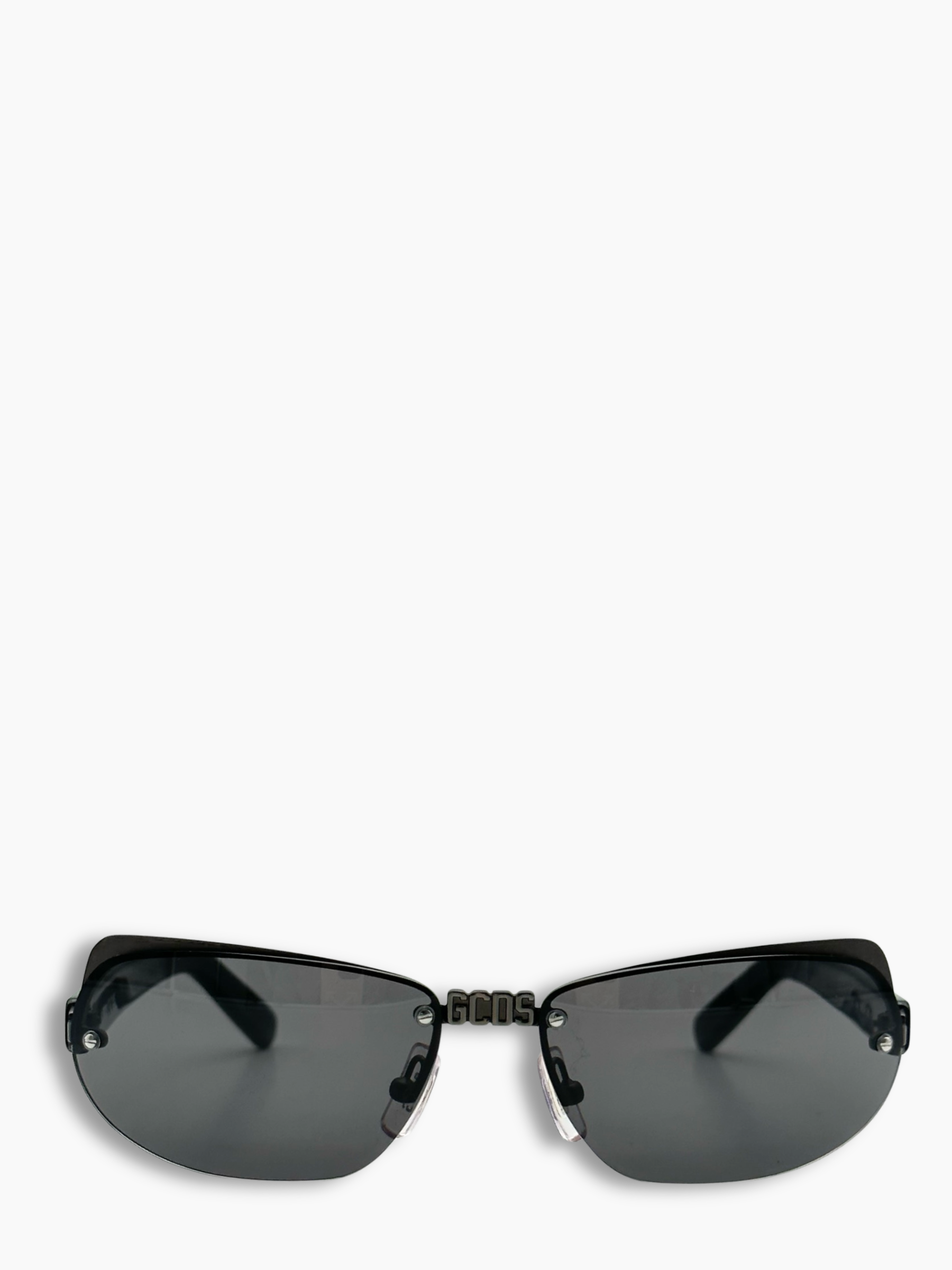 Occhiali da sole a mascherina con lenti scure e ponte centrale decorato dal logo GCDS in metallo. Una silhouette avvolgente e futuristica, perfetta per chi cerca un accessorio audace e scenografico.