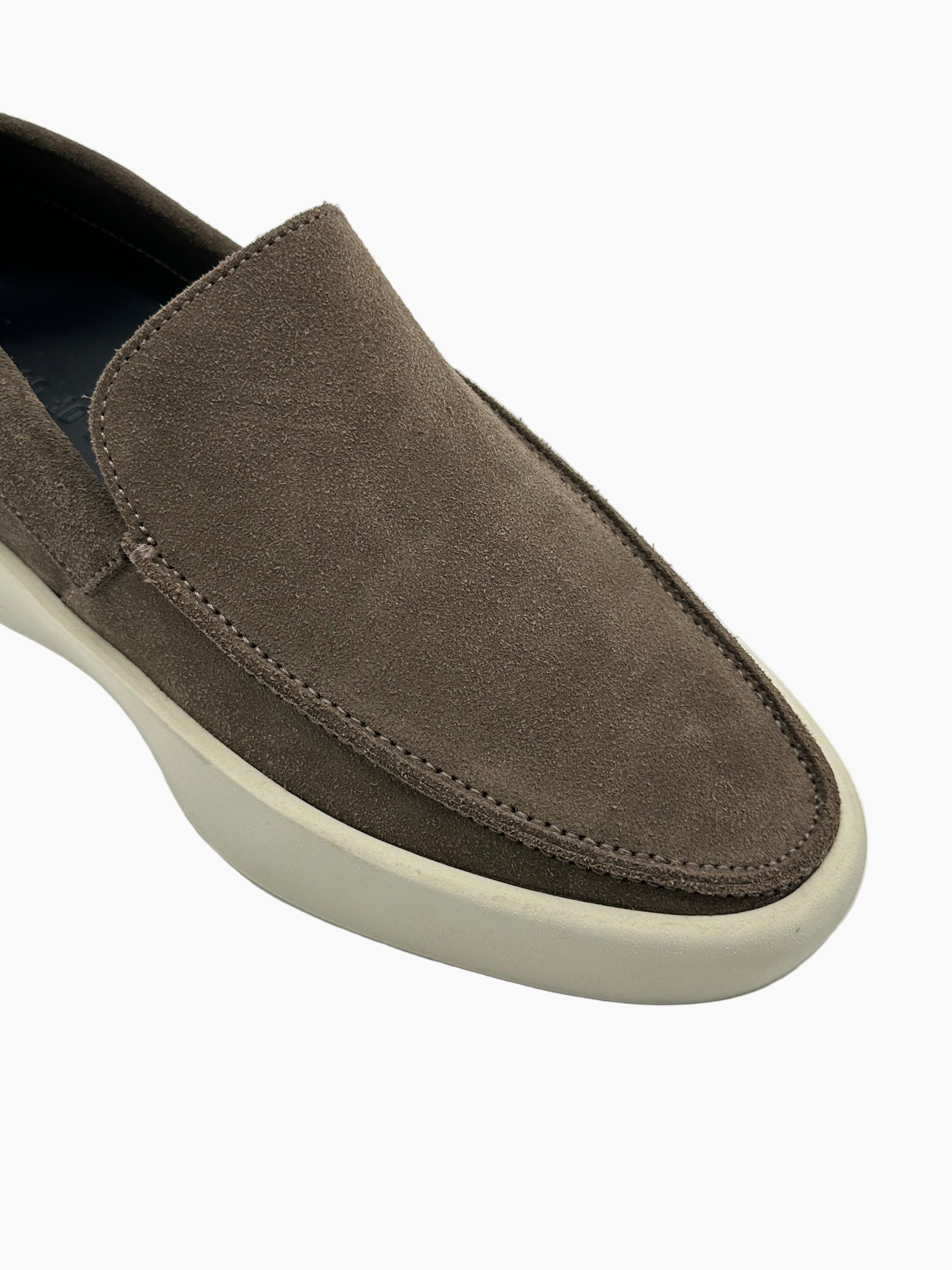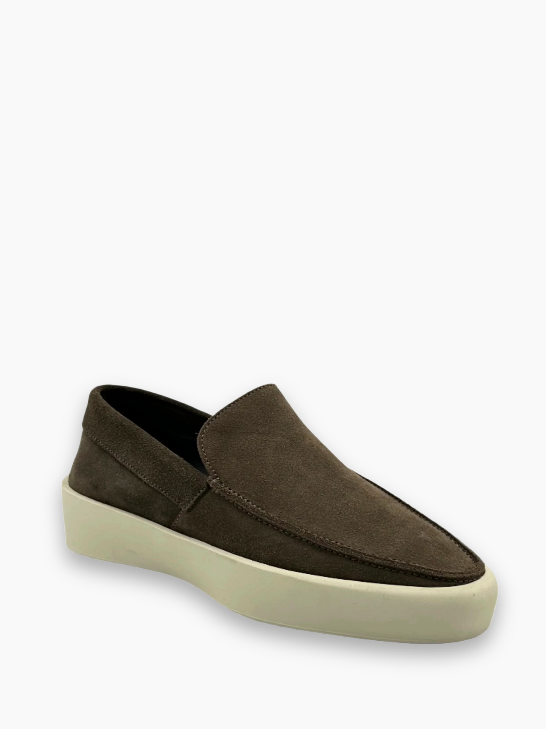 The Fear of God Loafer is a moccasin with an understated and sophisticated style, perfect for elegant yet relaxed looks. Crafted from taupe suede, it features a clean silhouette, slip-on construction, and a leather sole with rubber inserts. A must-have with a minimalist design and Italian craftsmanship.
