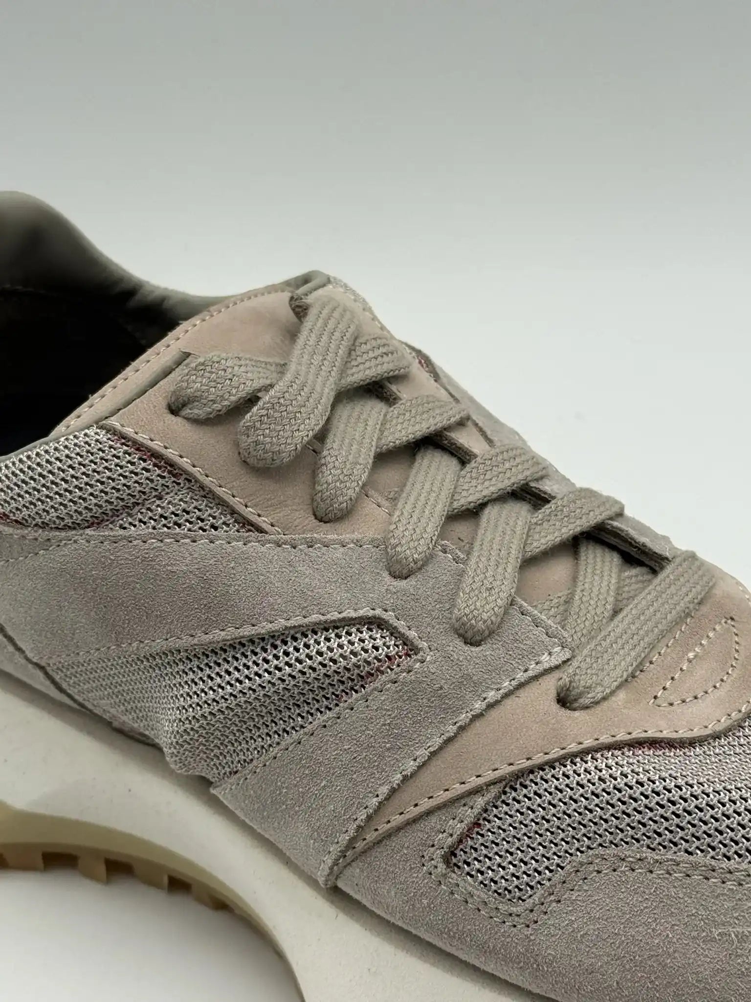 The Fear of God sneakers in dove gray combine a sporty aesthetic with sartorial attention to materials. The upper combines premium suede with tonal technical mesh inserts for a sophisticated yet dynamic look. The chunky honey-colored lug outsole adds boldness and comfort, perfect for urban daily wear or sophisticated streetwear looks. A contemporary and versatile design that elevates even your most basic outfits.