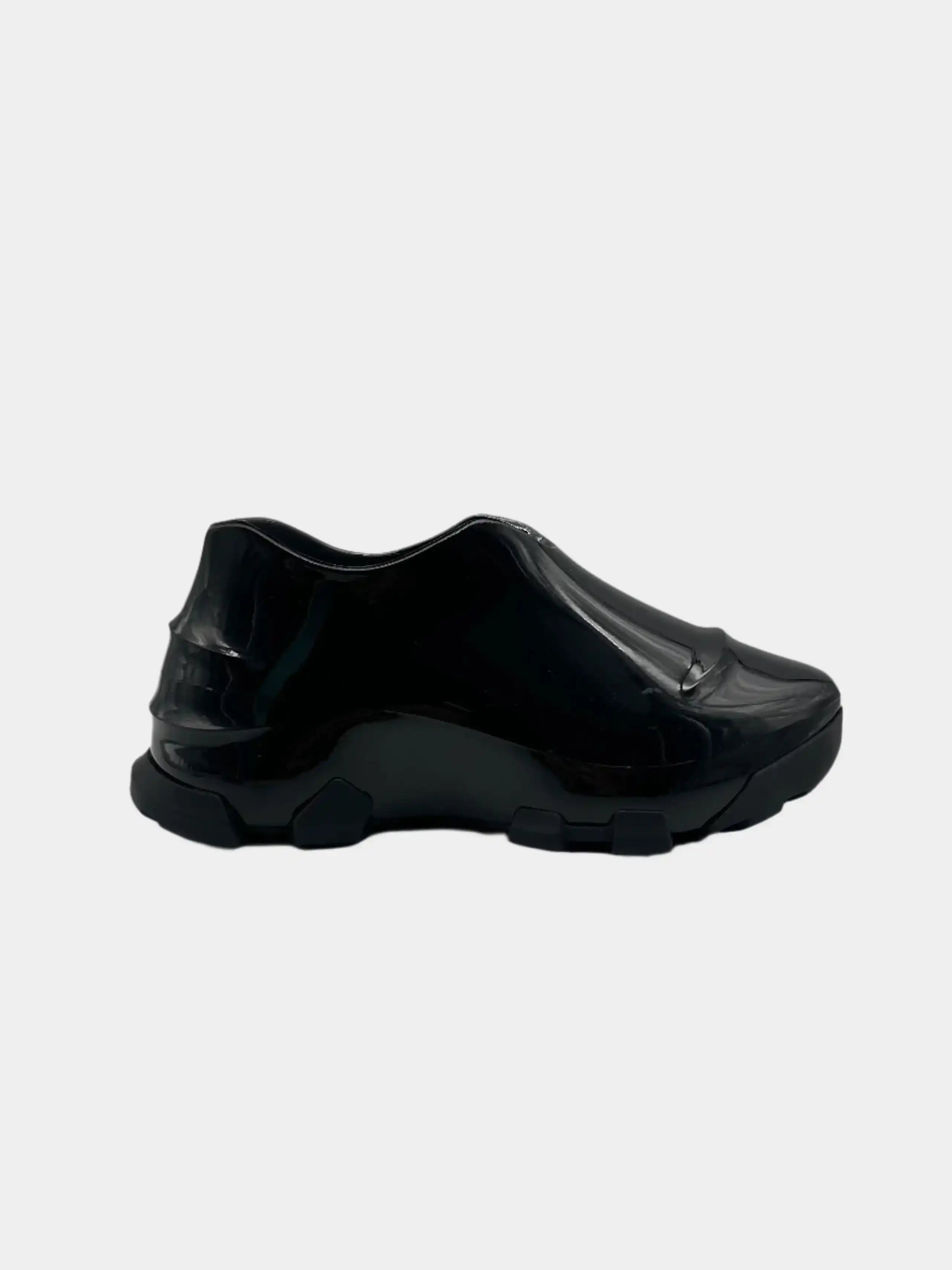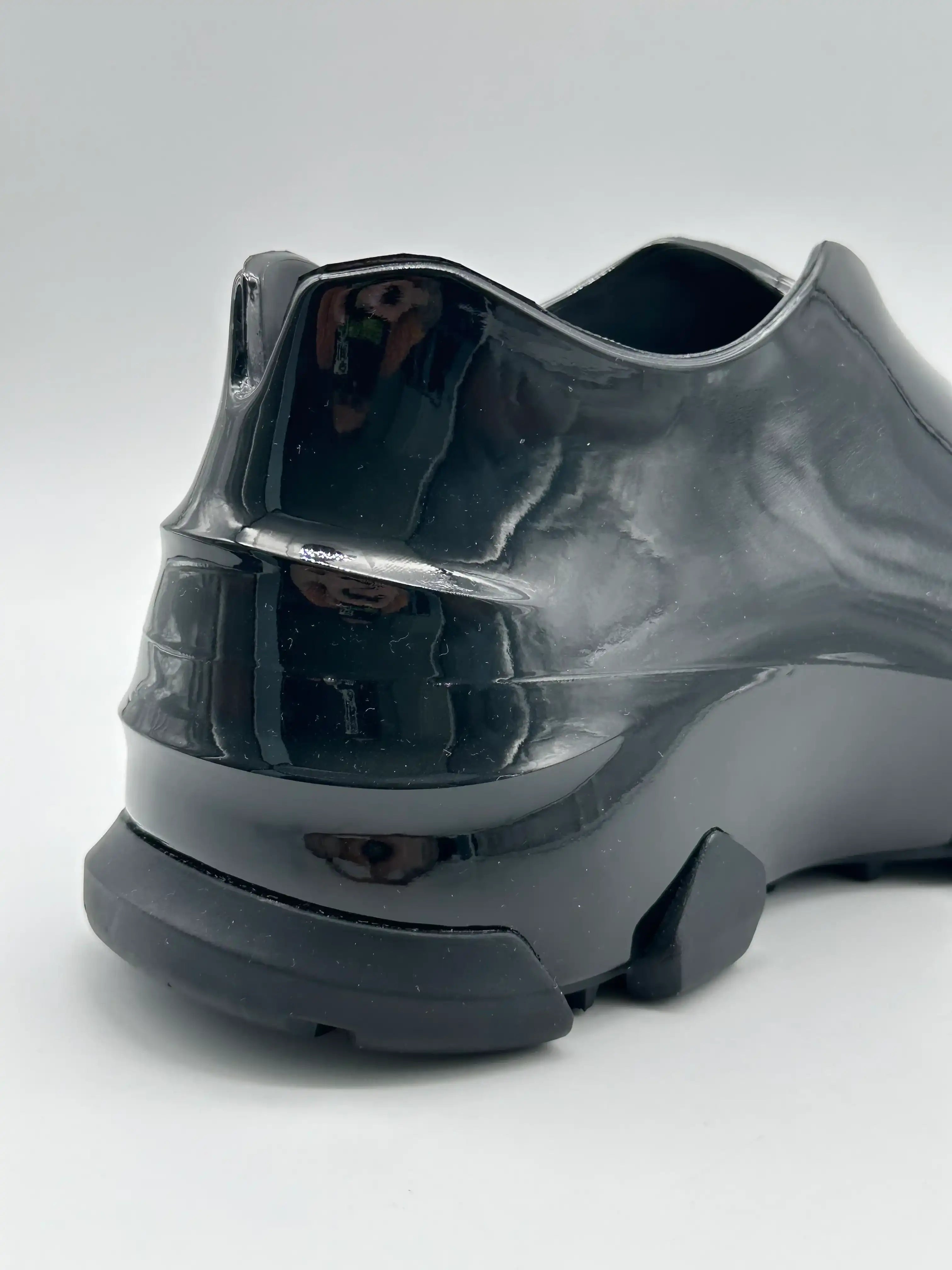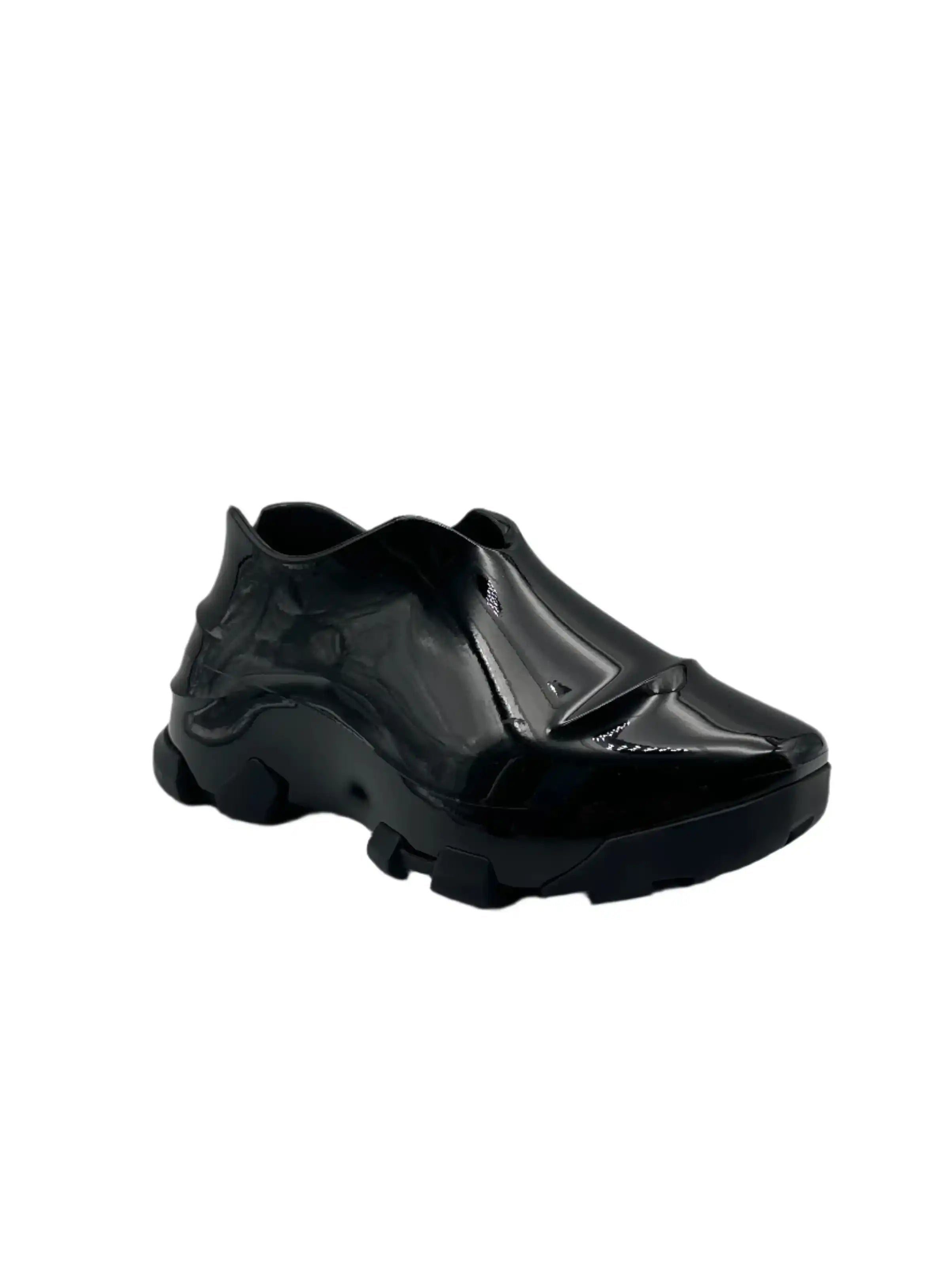 The Monumental Mallow sneakers by Givenchy stand out for their sculptural and futuristic silhouette. Made entirely of black rubber with a shiny finish, they feature a seamless construction, a lug sole and a slip-on design that blends comfort and avant-garde style. The interior is customized with an embossed logo and embossed details that express the distinctive character of the brand. An iconic and innovative model, designed for those who want a contemporary and bold look.