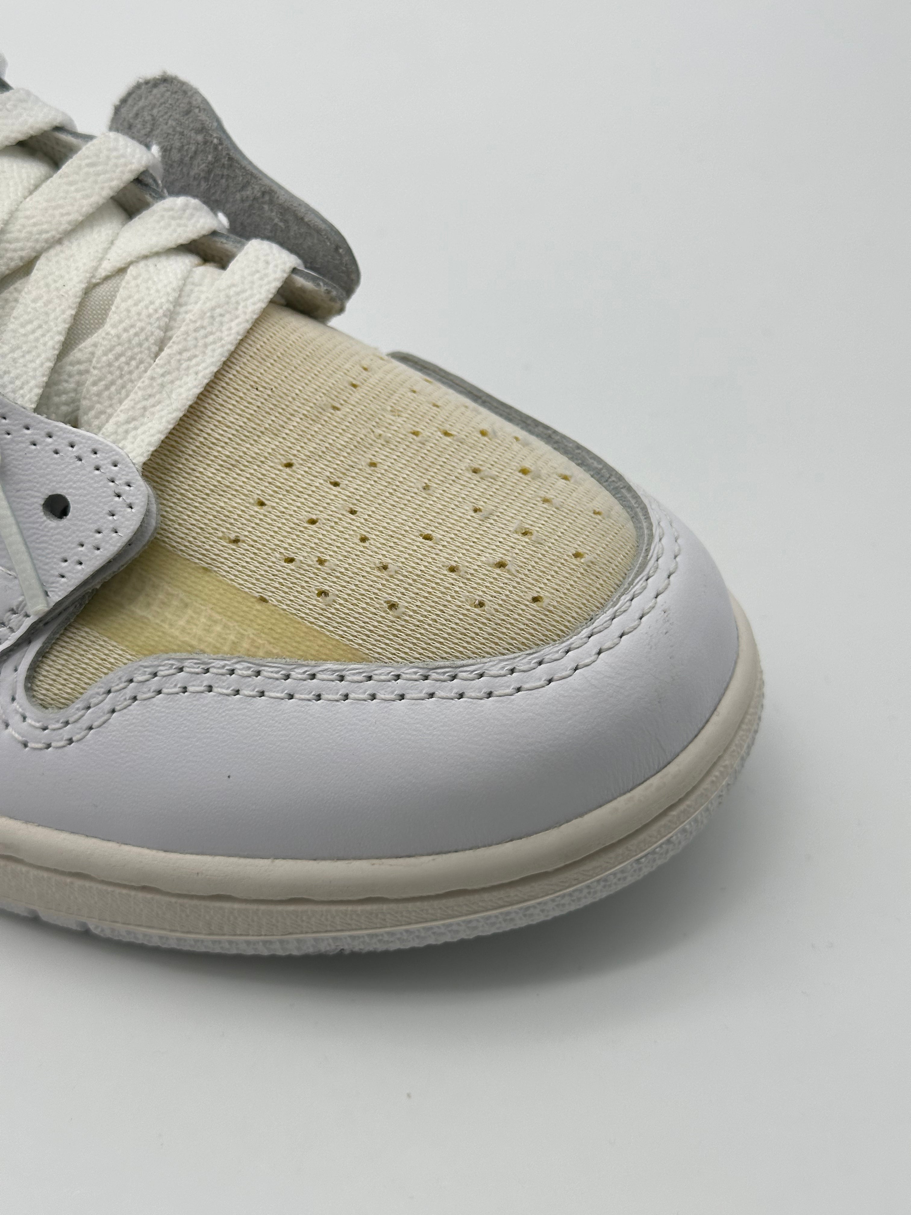 The Off-White x Nike Air Jordan 1 “White” is a minimalist and ultra-modern reinterpretation of Virgil Abloh's iconic silhouette. Crafted with translucent materials, exposed stitching, and the signature deconstructed aesthetic, these sneakers feature a monochromatic look interrupted only by classic Off-White details like the orange patch, stitched Swoosh, and signature lettering.