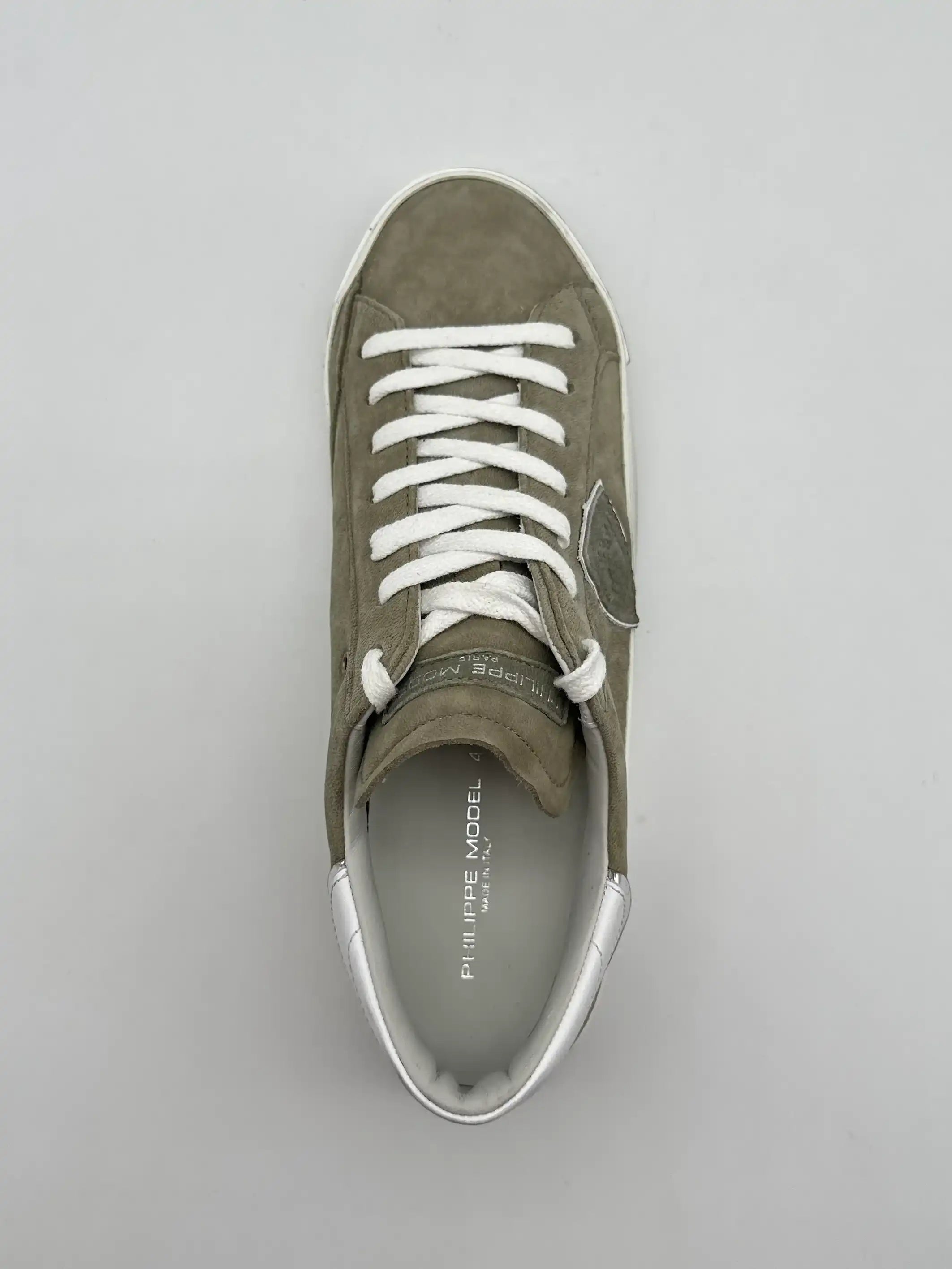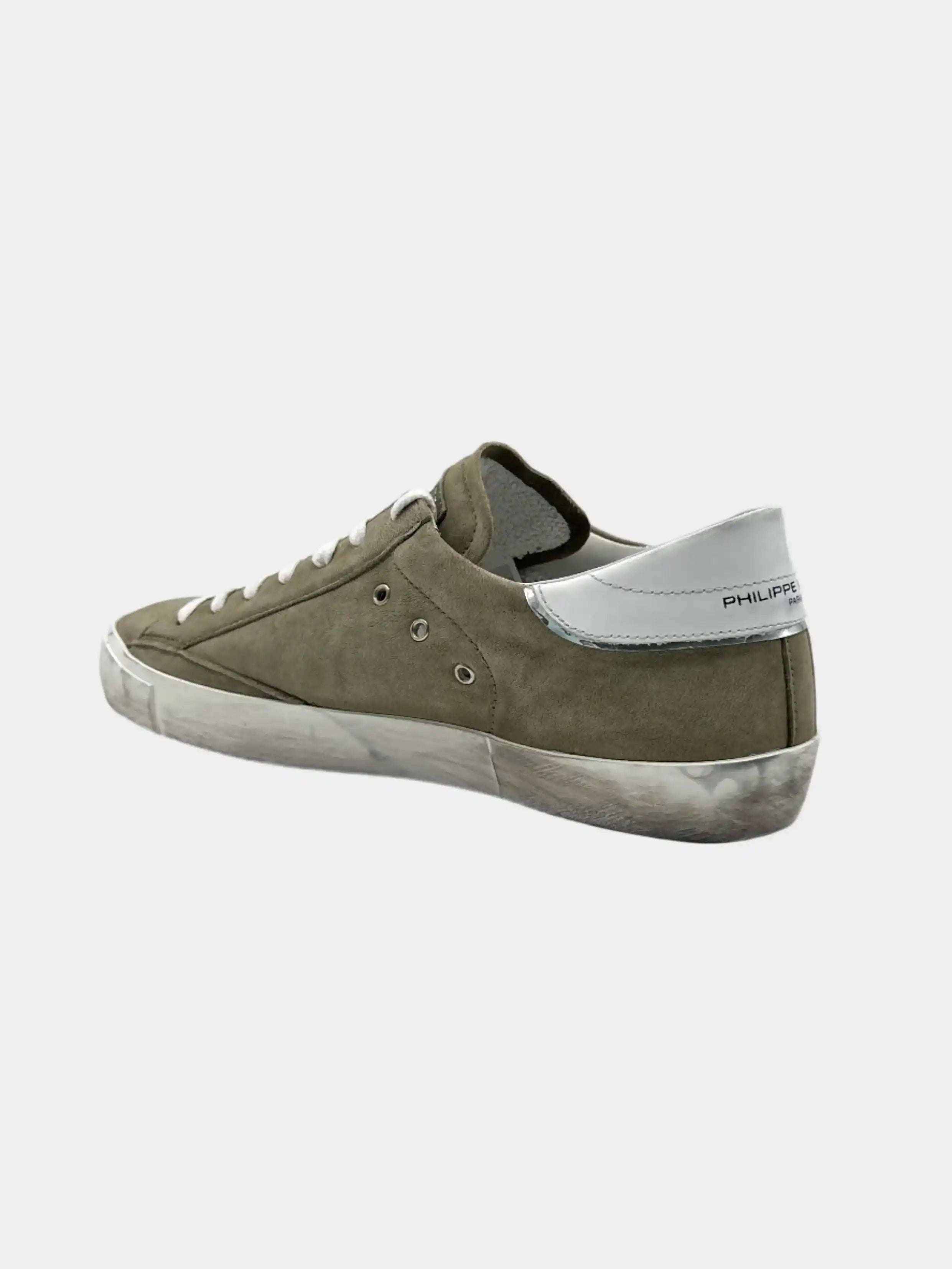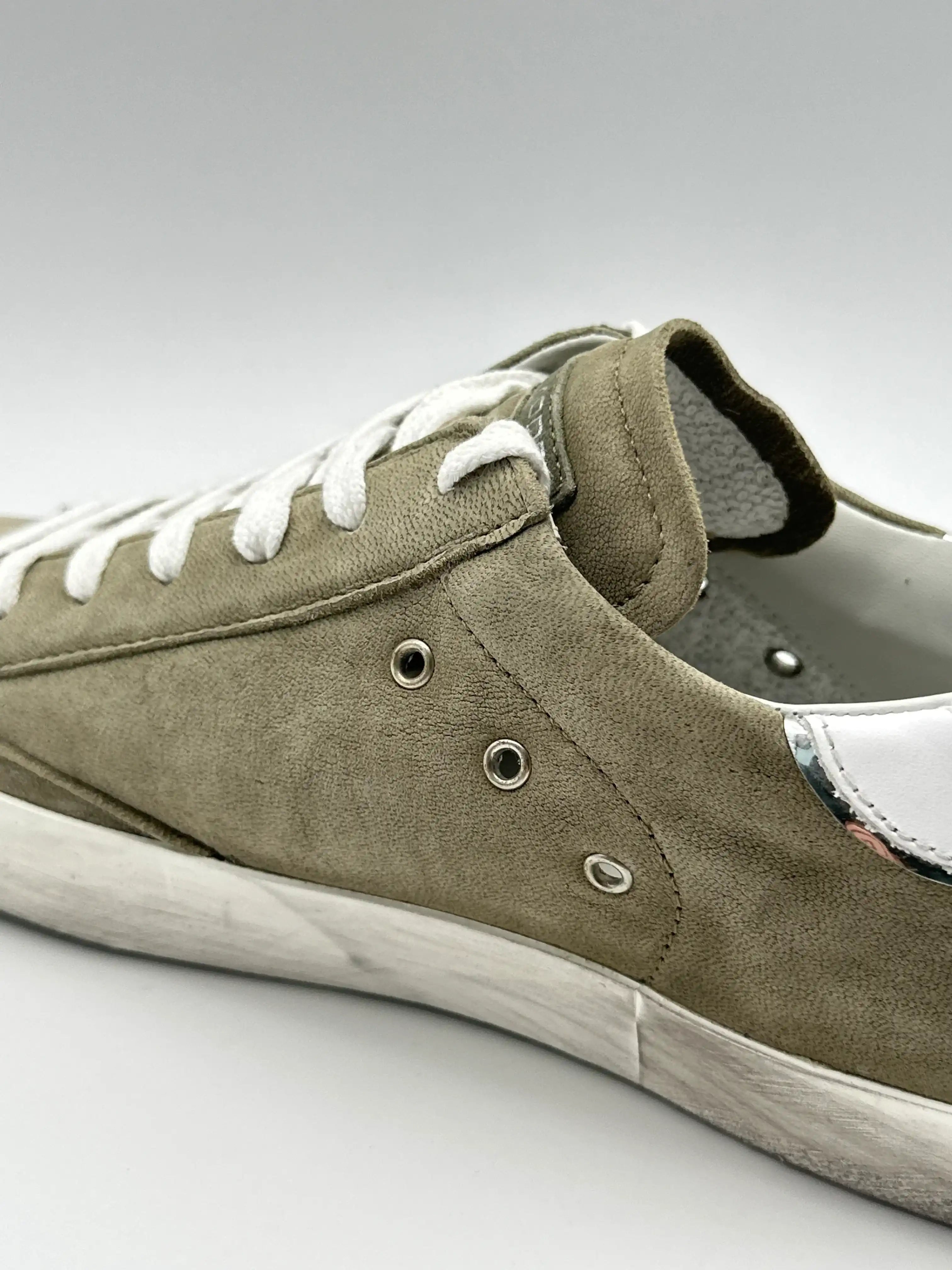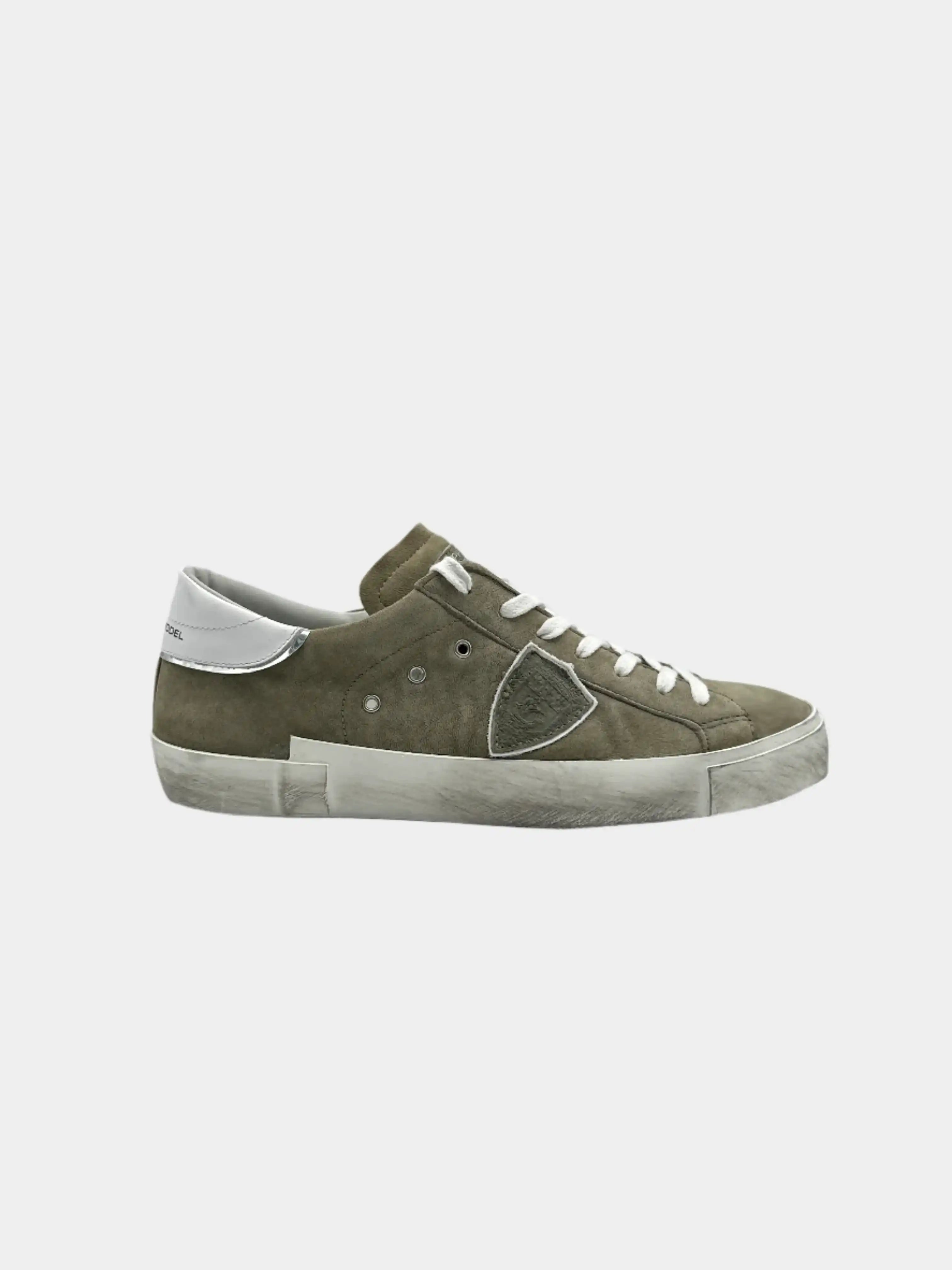 The men's Prsx Low sneaker stands out for its urban, worn-in style, featuring a washed-effect green nubuck upper. The iconic design is complemented by a hand-dirtied sole and the classic contrasting side patch. Ideal for those who love a casual style with distinctive artisanal details.