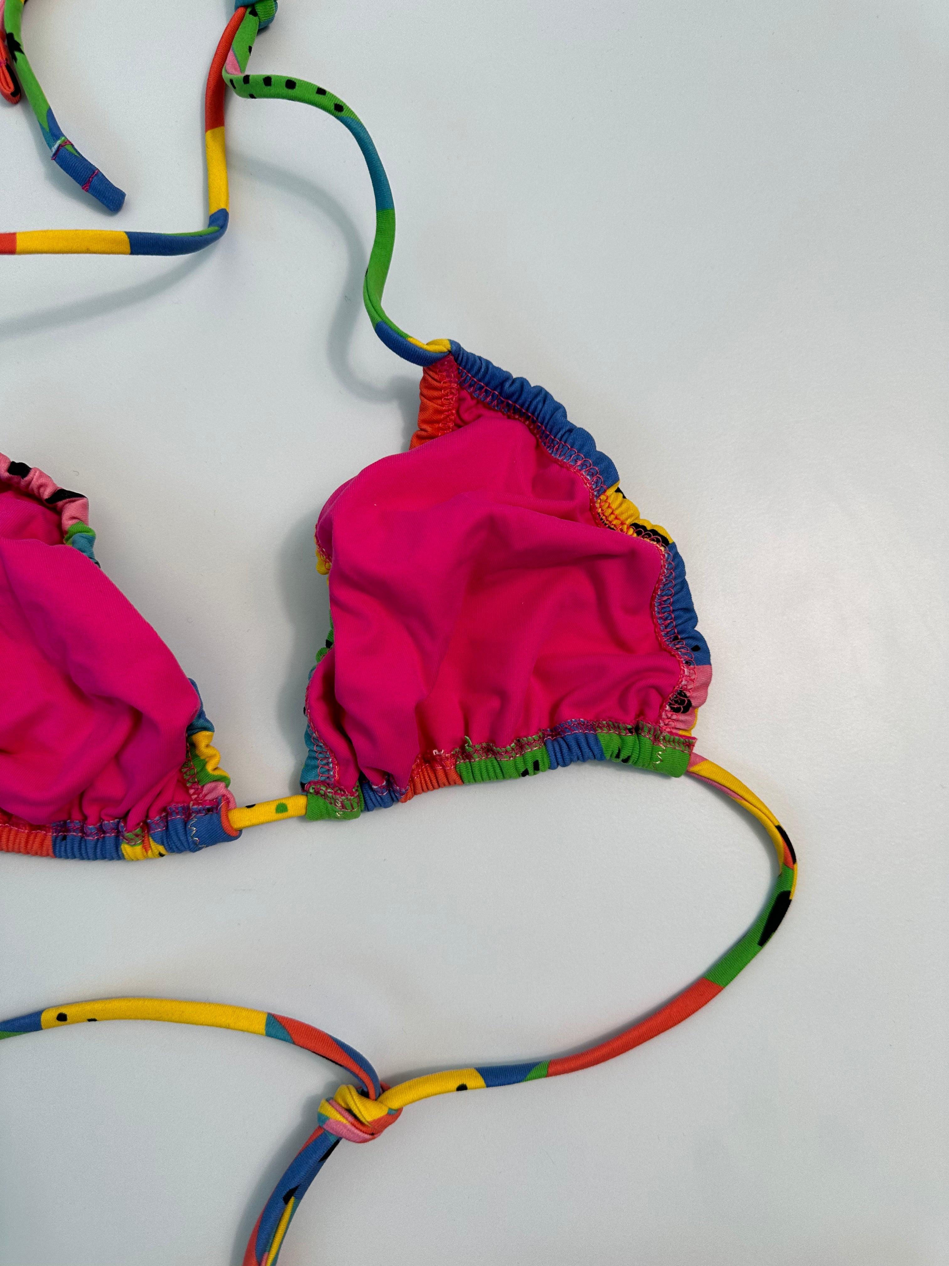 Il bikini Concetta di Reina Olga è un mix di grinta e femminilità. Questo due pezzi presenta un top a fascia con spalline sottili e uno slip a vita media, entrambi realizzati in un tessuto elasticizzato stampato che segue perfettamente le linee del corpo. Un modello dallo stile fresco e contemporaneo, ideale per esprimere la propria personalità anche in spiaggia.