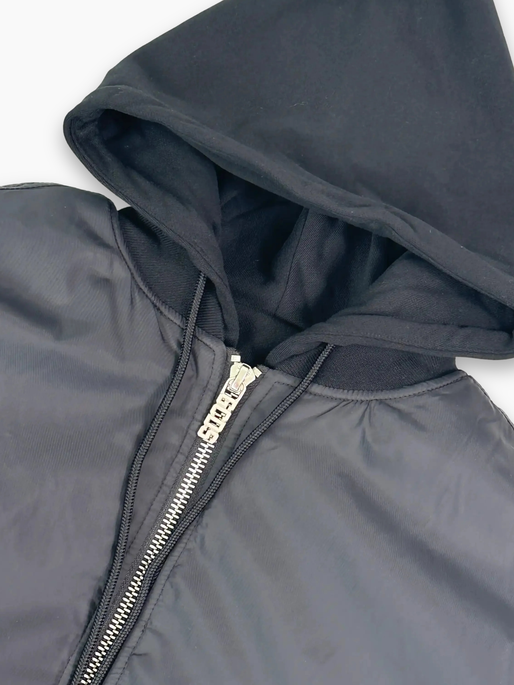 Il Hooded Bomber di GCDS combina il classico bomber con un cappuccio integrato per un look urban e contemporaneo. Realizzato in nylon nero con dettagli ricercati, è perfetto per un outfit streetwear versatile.