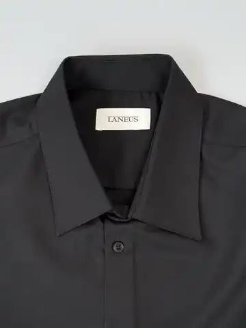 Un'eleganza senza tempo contraddistingue questa camicia firmata Laneus, realizzata in pura lana vergine nel classico nero profondo. Il design essenziale, con colletto a punta e bottoni tono su tono, la rende un capo versatile e raffinato, perfetto per completare outfit sartoriali o look più rilassati.