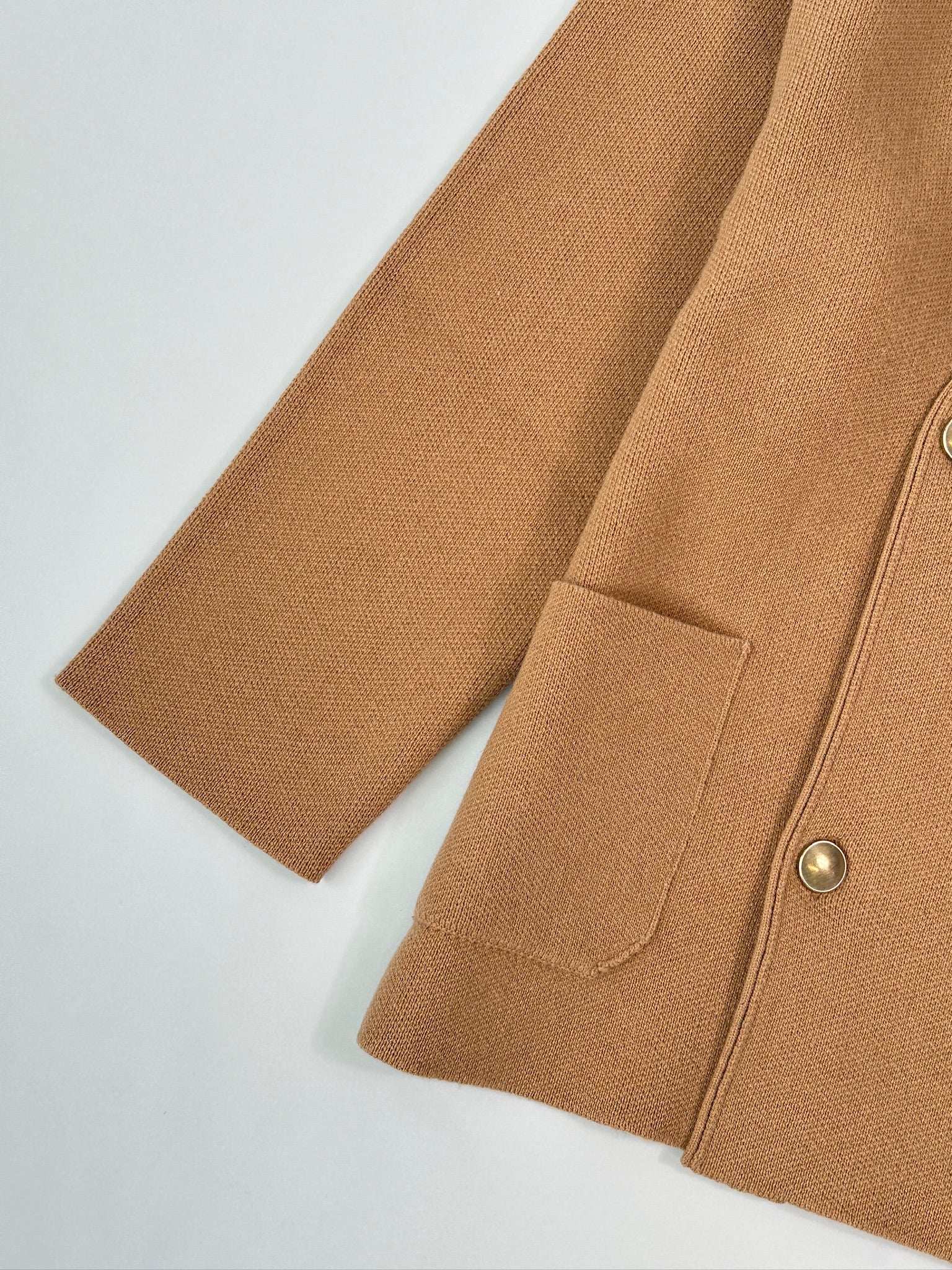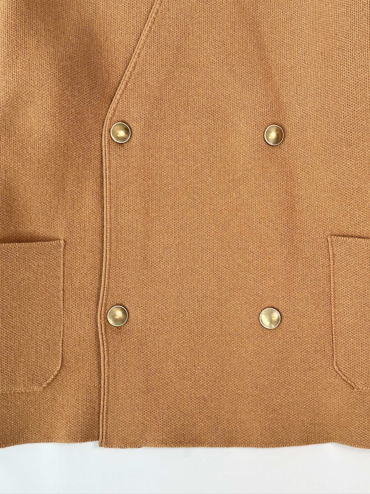 Eleganza senza tempo e qualità premium si incontrano in questo cardigan doppiopetto color cammello firmato Laneus. Realizzato in una raffinata miscela di lana vergine e cashmere, presenta una struttura a maglia rasata compatta, colletto alto e una silhouette lineare. I bottoni dorati e le tasche applicate completano un capo pensato per uno stile essenziale ma sofisticato.