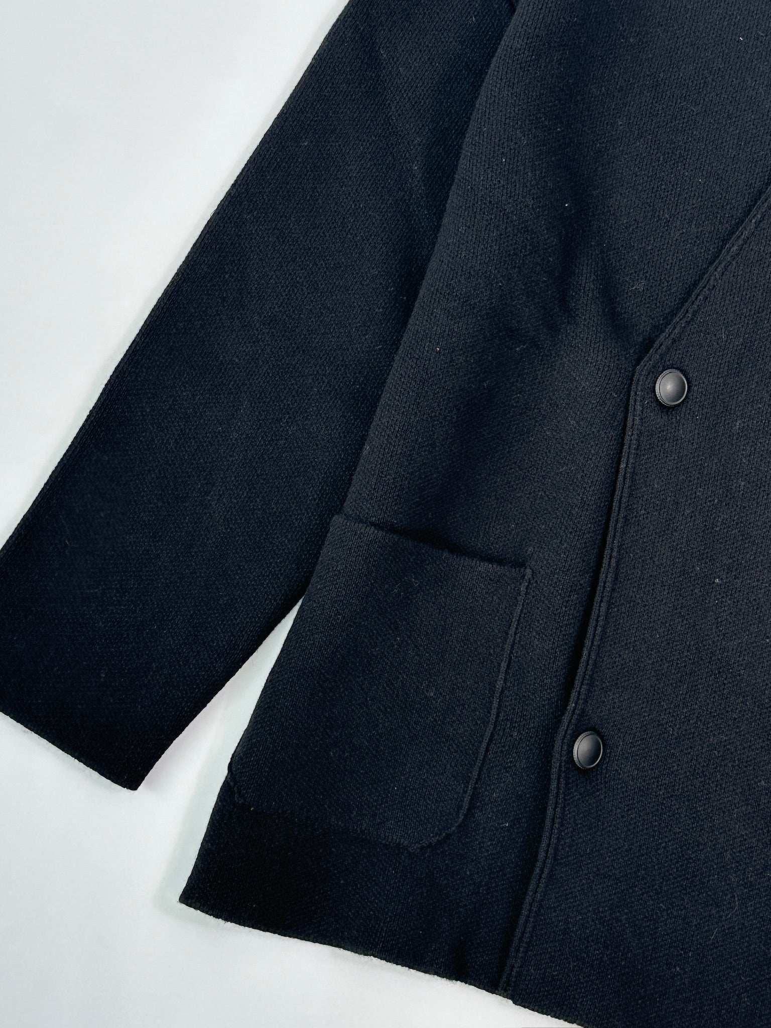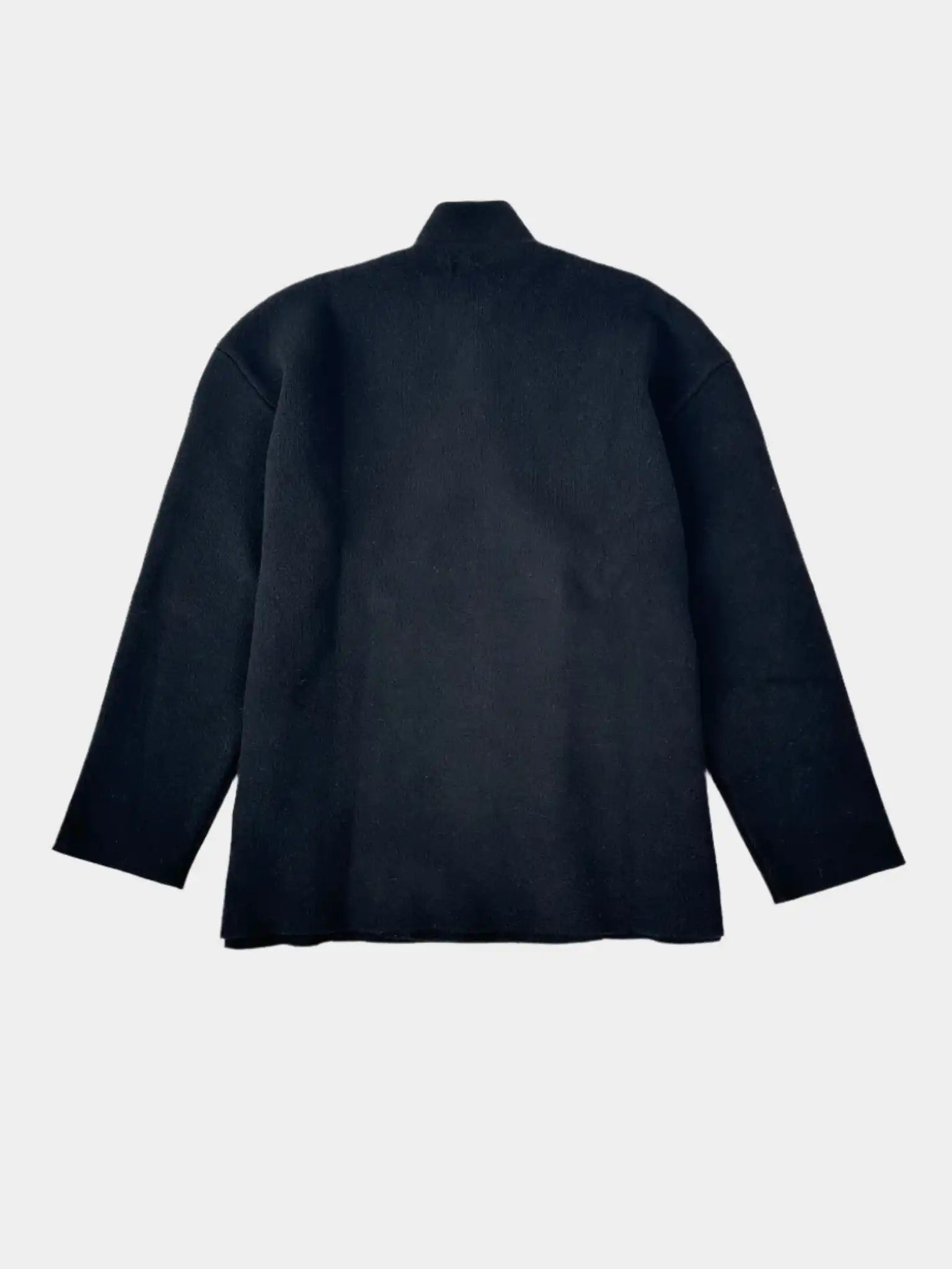 Il cardigan doppiopetto Laneus in nero si distingue per il suo taglio sartoriale pulito ed essenziale. Realizzato in una pregiata miscela di lana vergine e cashmere, unisce comfort termico e raffinatezza. La struttura morbida è valorizzata da un colletto alto e chiusura incrociata con bottoni tono su tono, ideale per chi cerca uno stile contemporaneo e ricercato.
