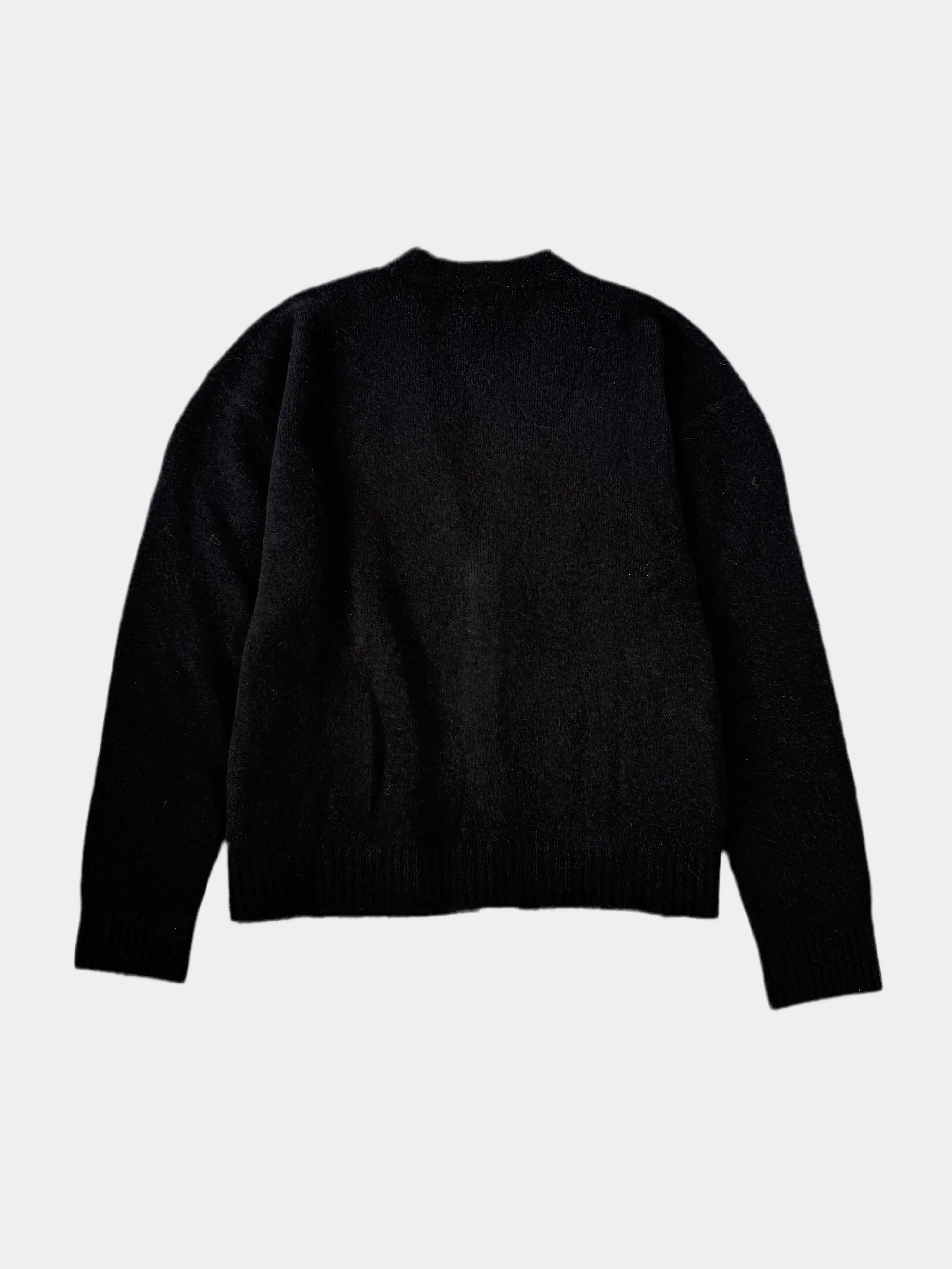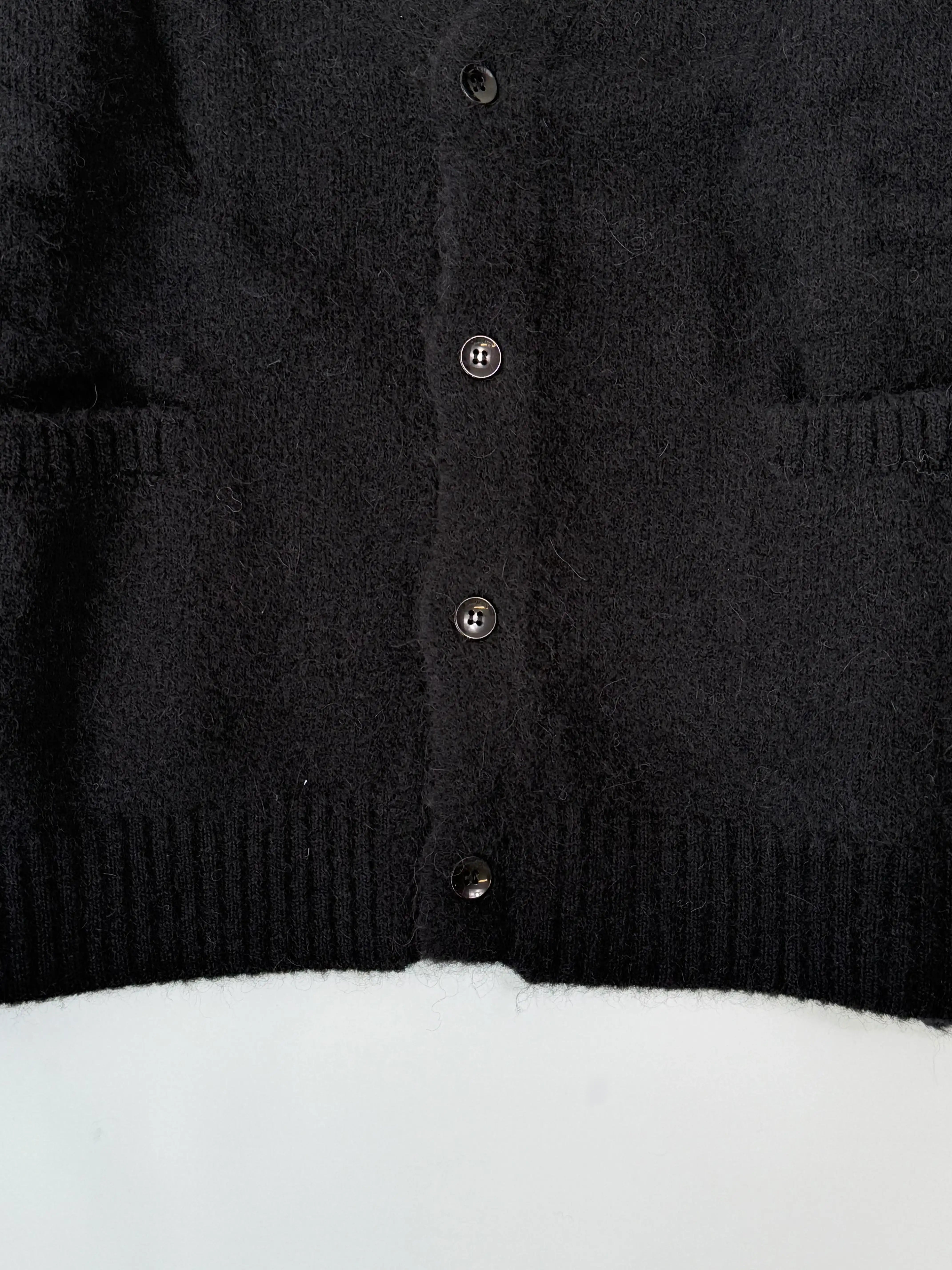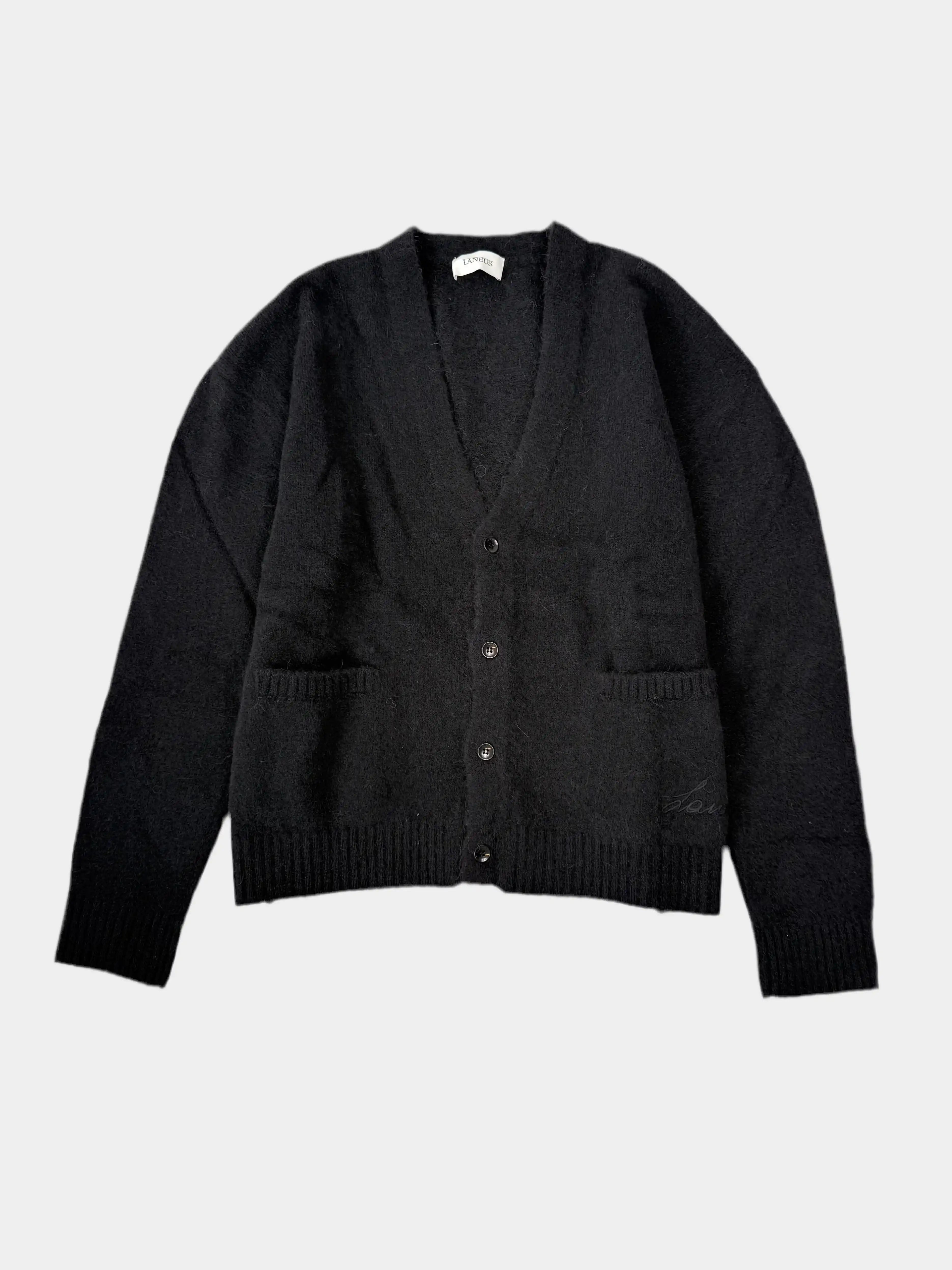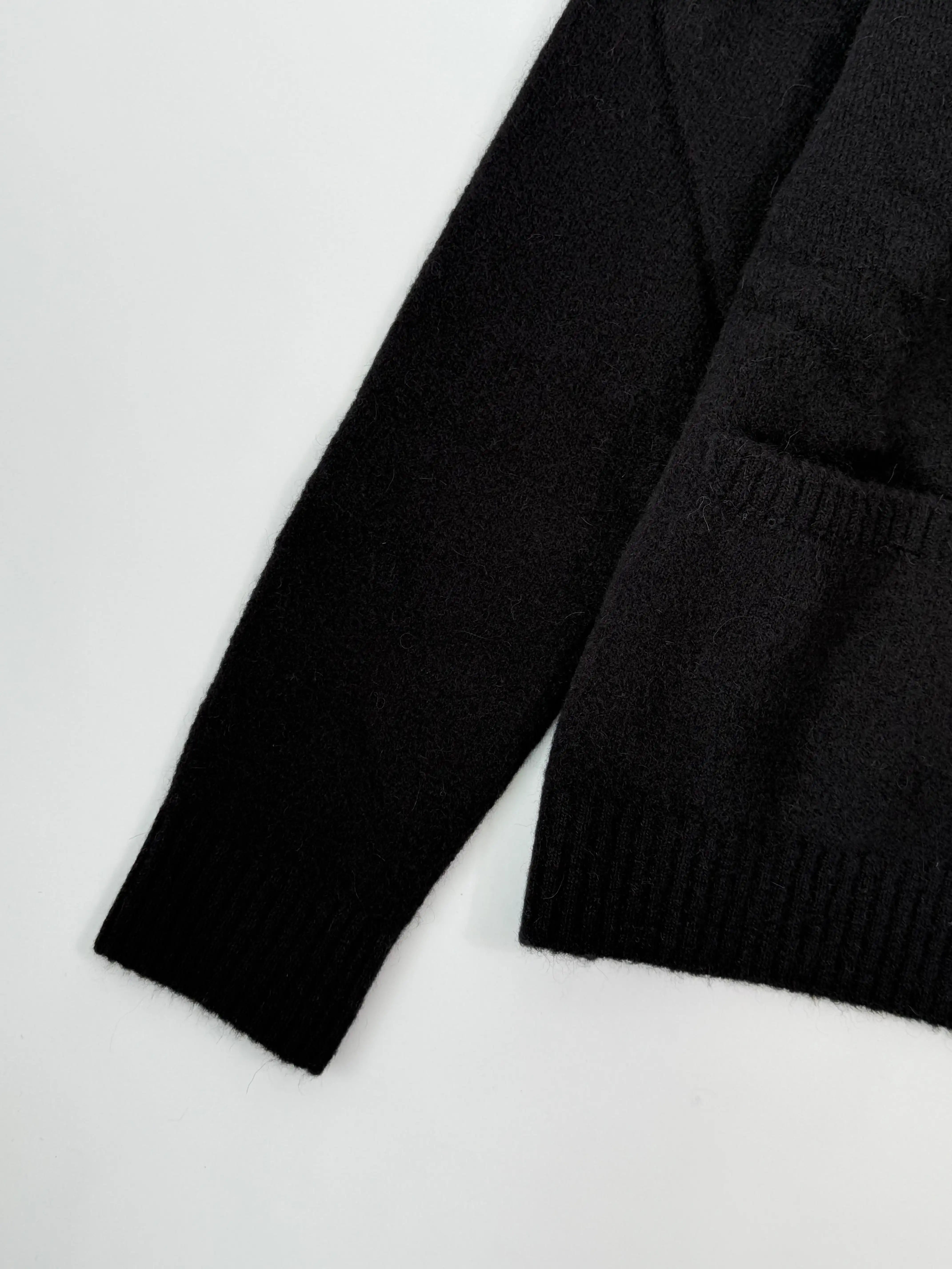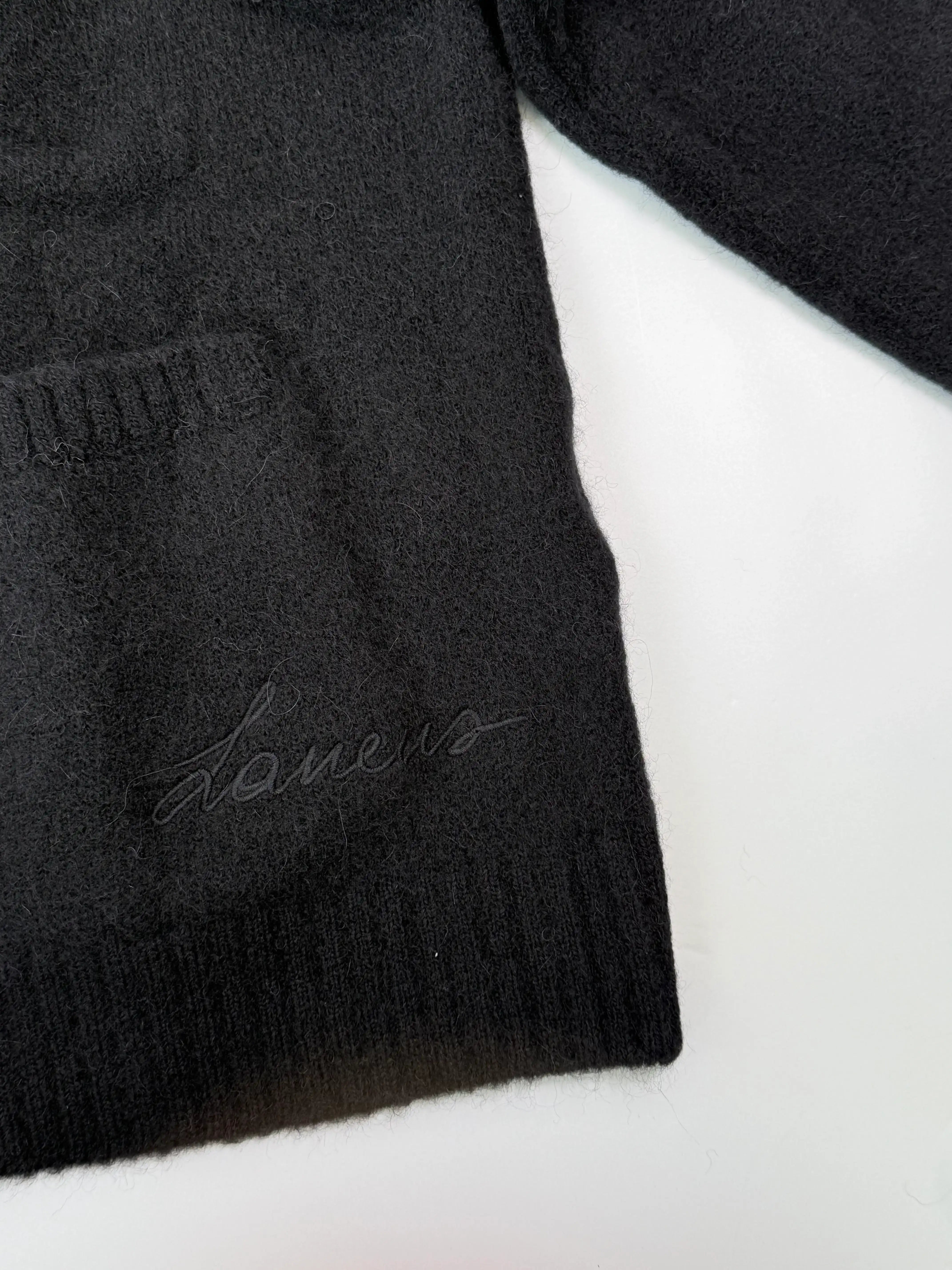 Un cardigan dallo stile rilassato ma sofisticato, firmato Laneus. Realizzato in una calda lana spazzolata color nero, presenta una silhouette morbida con chiusura a bottoni frontale, scollo a V e tasche applicate. Il ricamo tono su tono del logo Laneus aggiunge un dettaglio discreto e raffinato, perfetto per look casual o per stratificazioni eleganti.