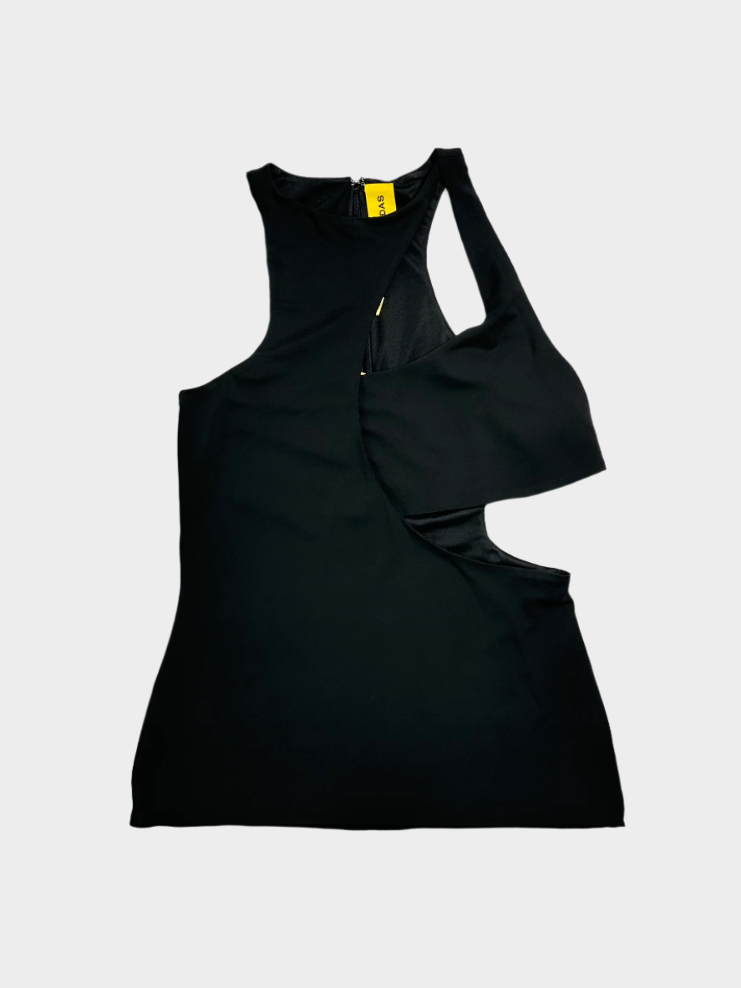 Linee fluide e un taglio simmetrico definiscono il top Dundas in versione nera. Realizzato in tessuto morbido ed elasticizzato, questo modello si distingue per l’apertura laterale sinistra che aggiunge un dettaglio grafico e audace. La vestibilità slim lo rende perfetto da abbinare a pantaloni a vita alta o gonne aderenti, per look sofisticati e contemporanei.
